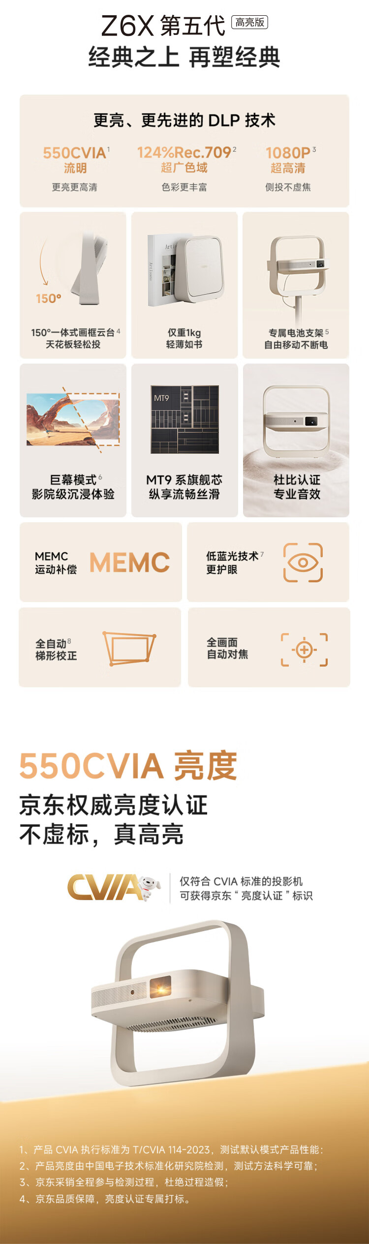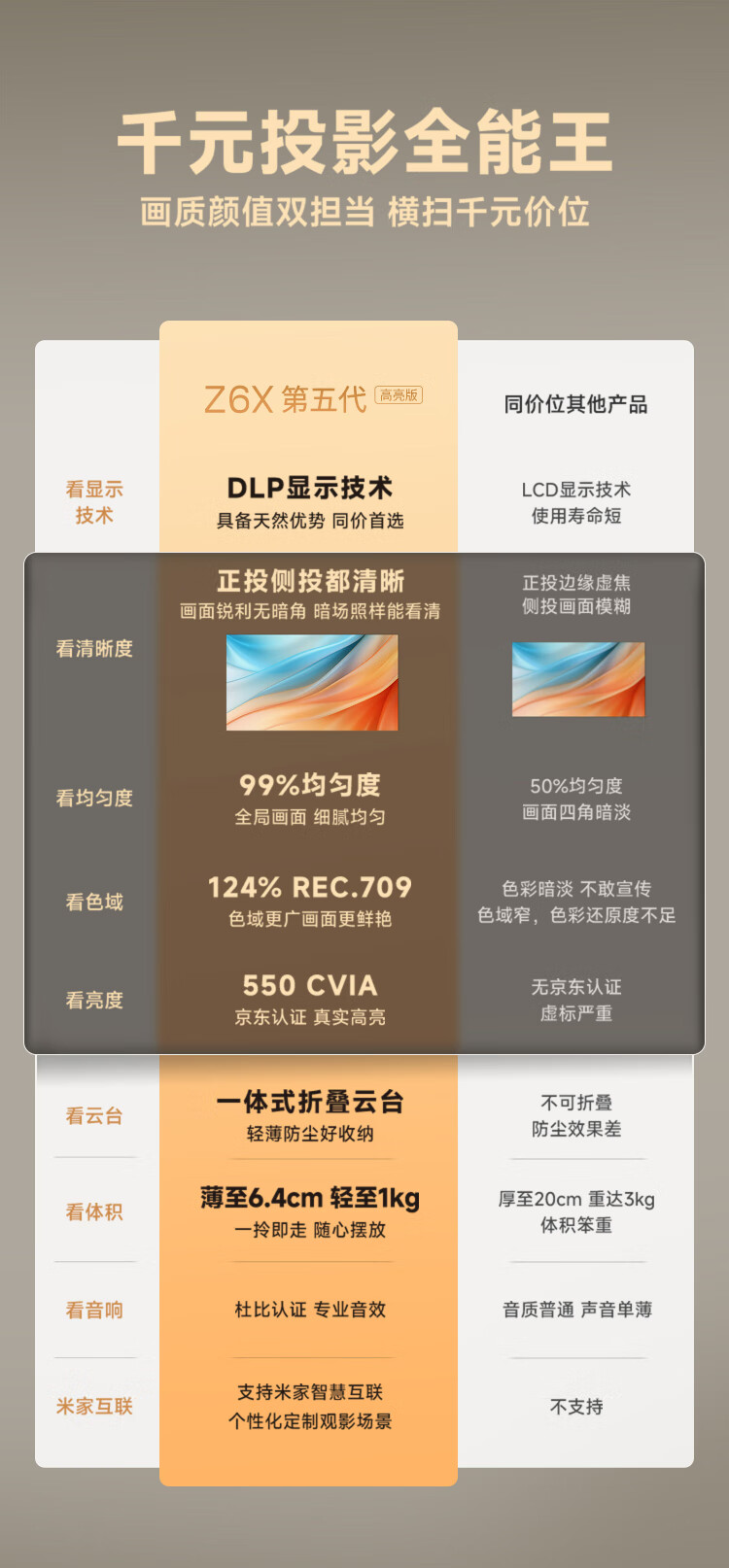 XGIMI Z6X fifth generation high-brightness version projector for home use thin and light projector HD home theater丨all-in-one pan/tilt 2-year warranty national subsidy