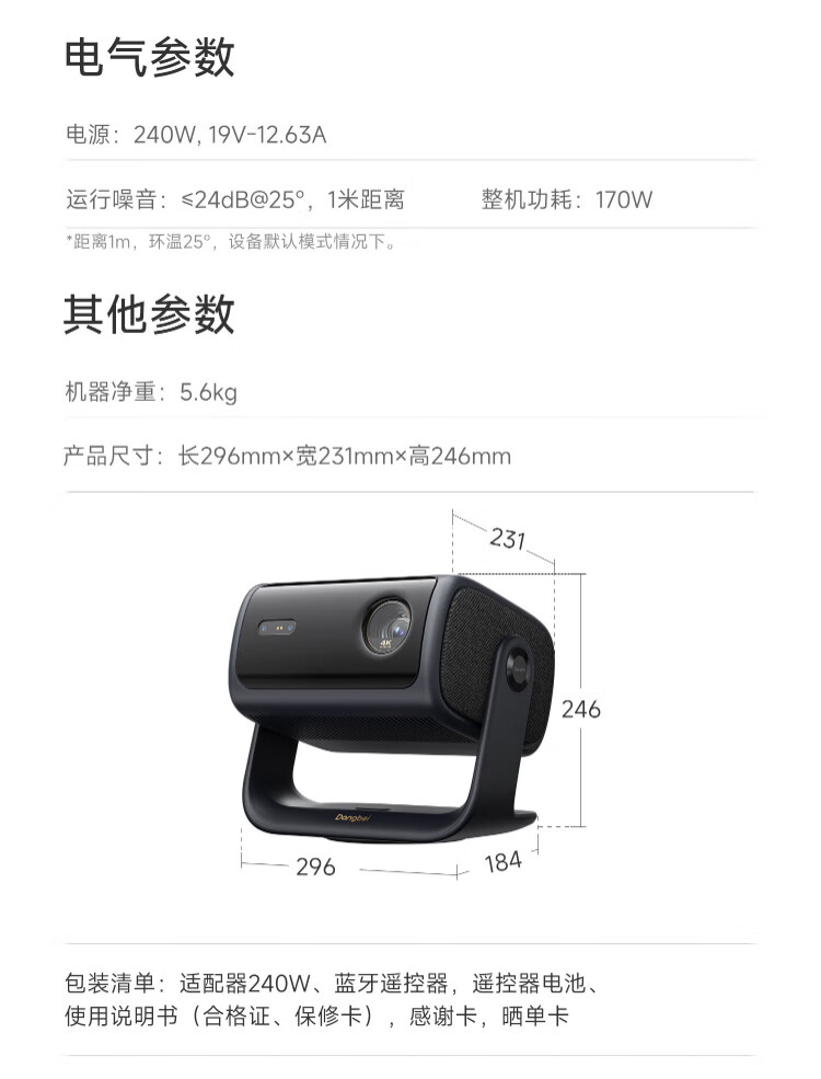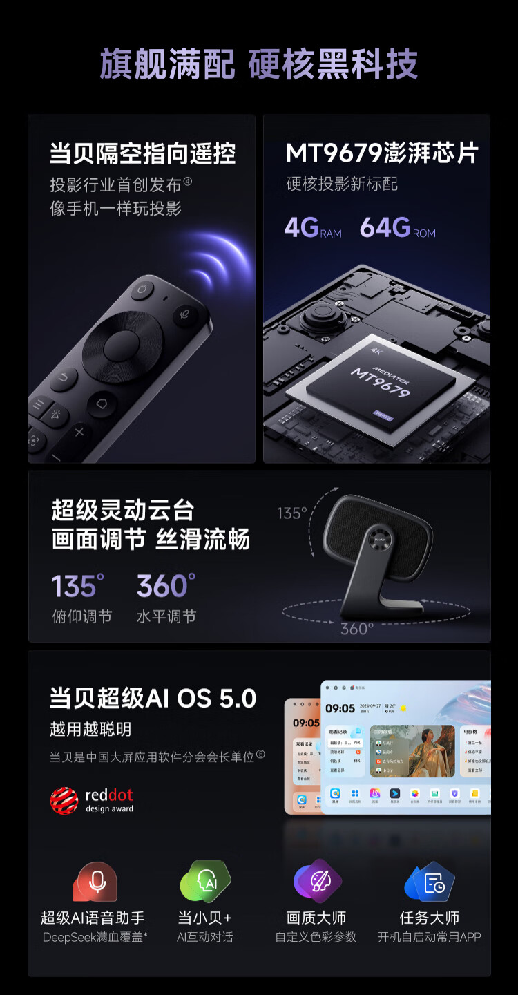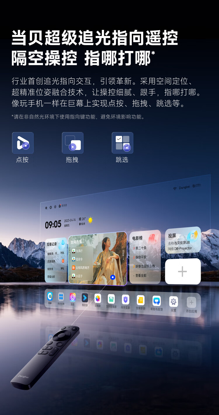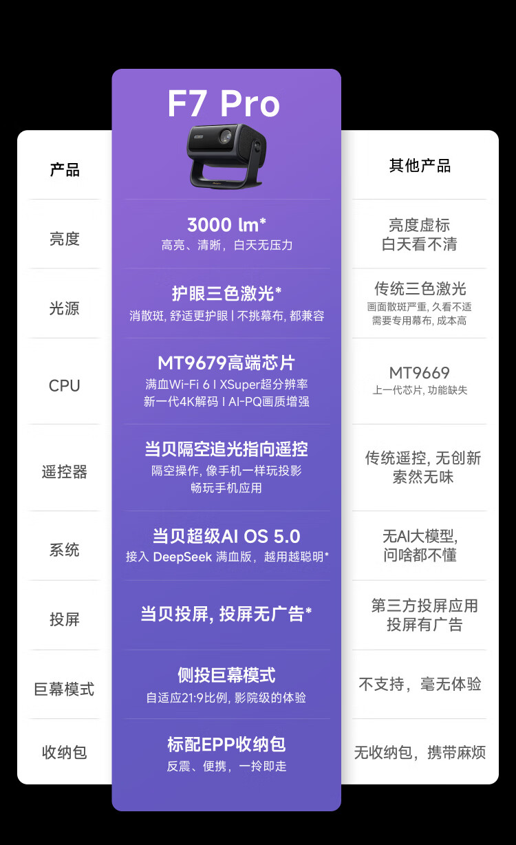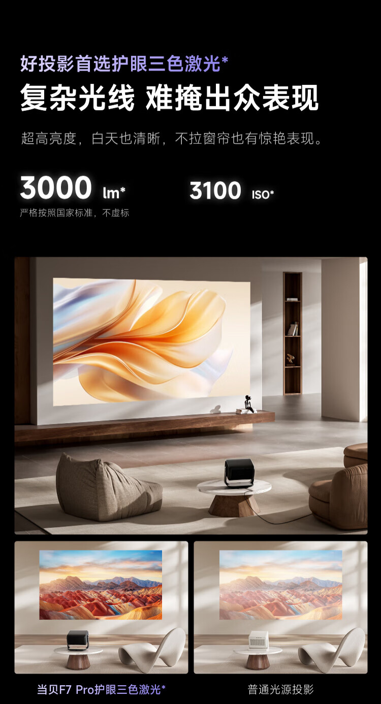 Dangbei F7 Pro 4K PTZ Projector Home High Definition Eye Protection Three Color Laser Bedroom Home Smart TV Theater National Subsidy 20% (3000lm 4+64G)