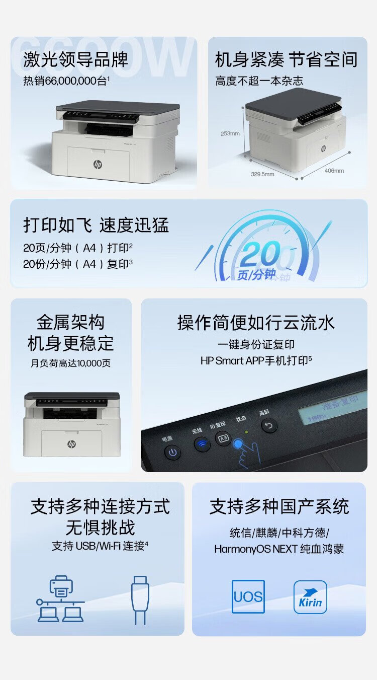 HP 116w laser wireless printer multi-function home office printer wireless printing copier scan all-in-one black and white (1136w new version)