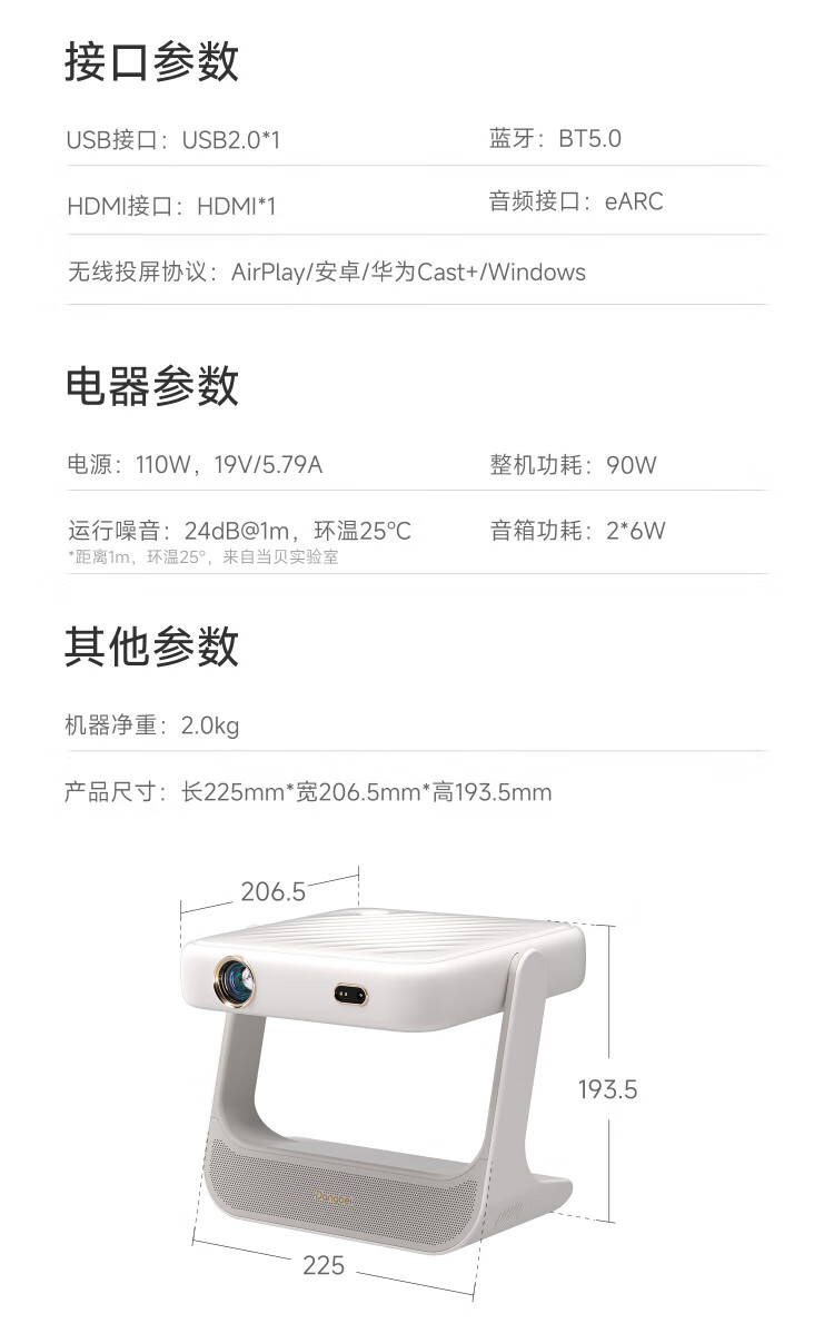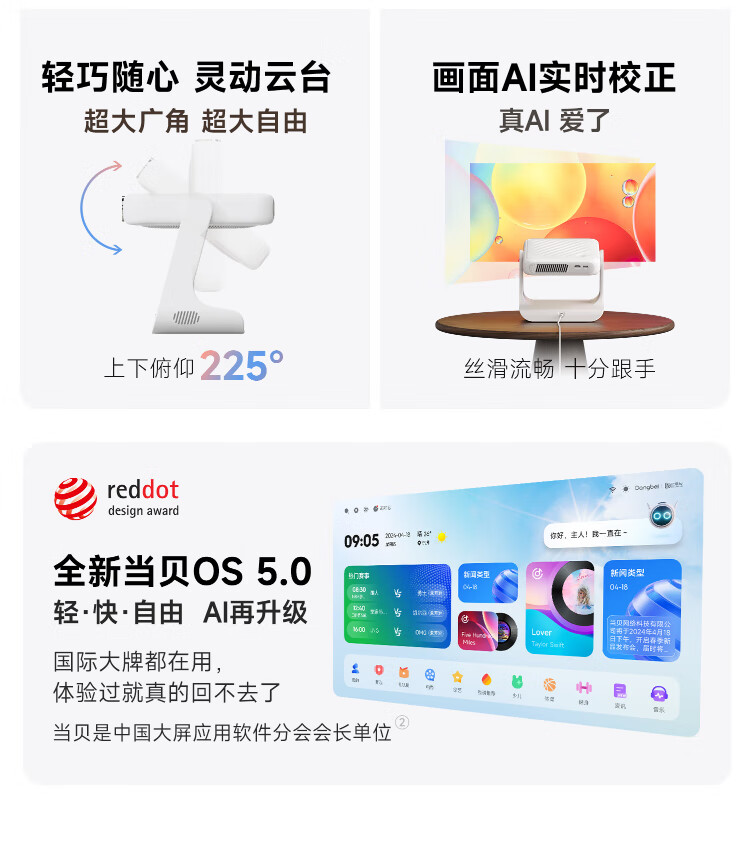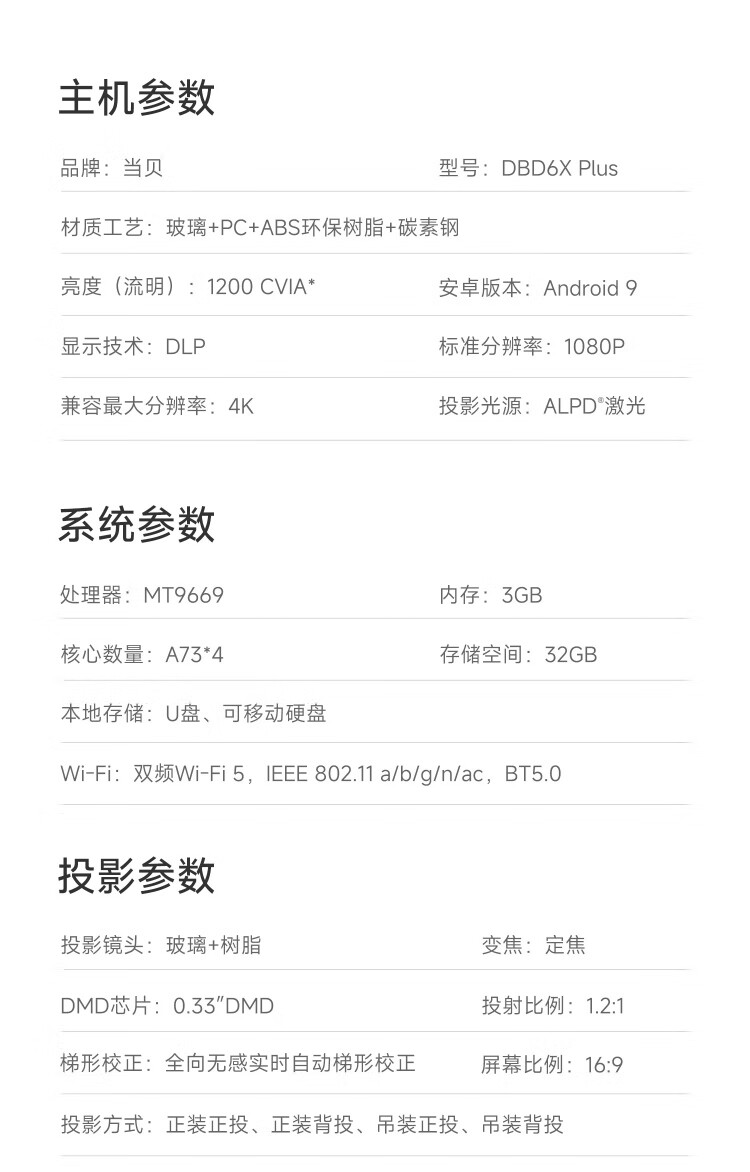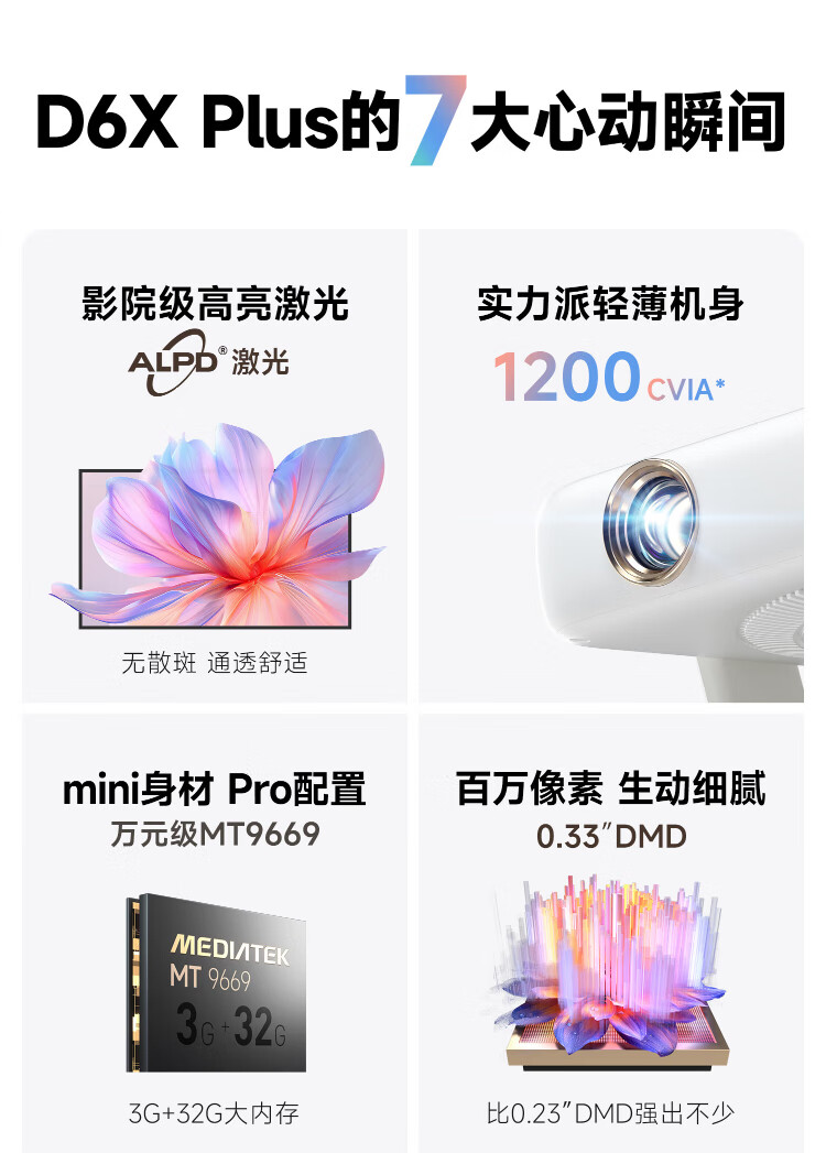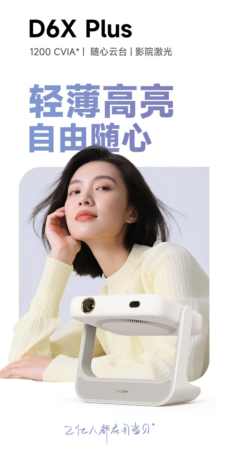 Dangbei D6XPlus laser projector for home use, thin and portable pan-tilt projector, high-definition home theater with 20% national subsidy (high brightness 1200CVIA first-level energy efficiency)