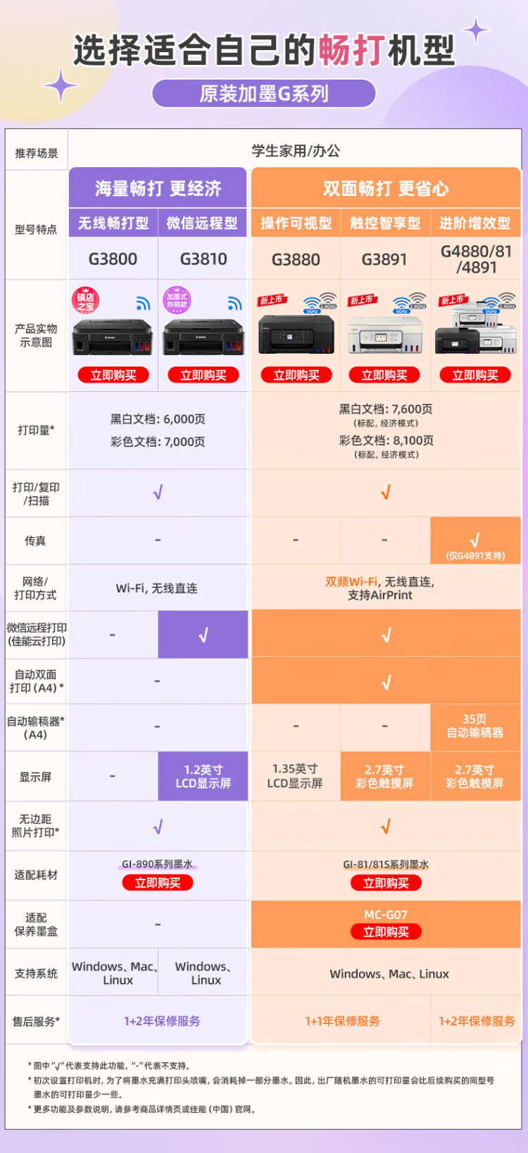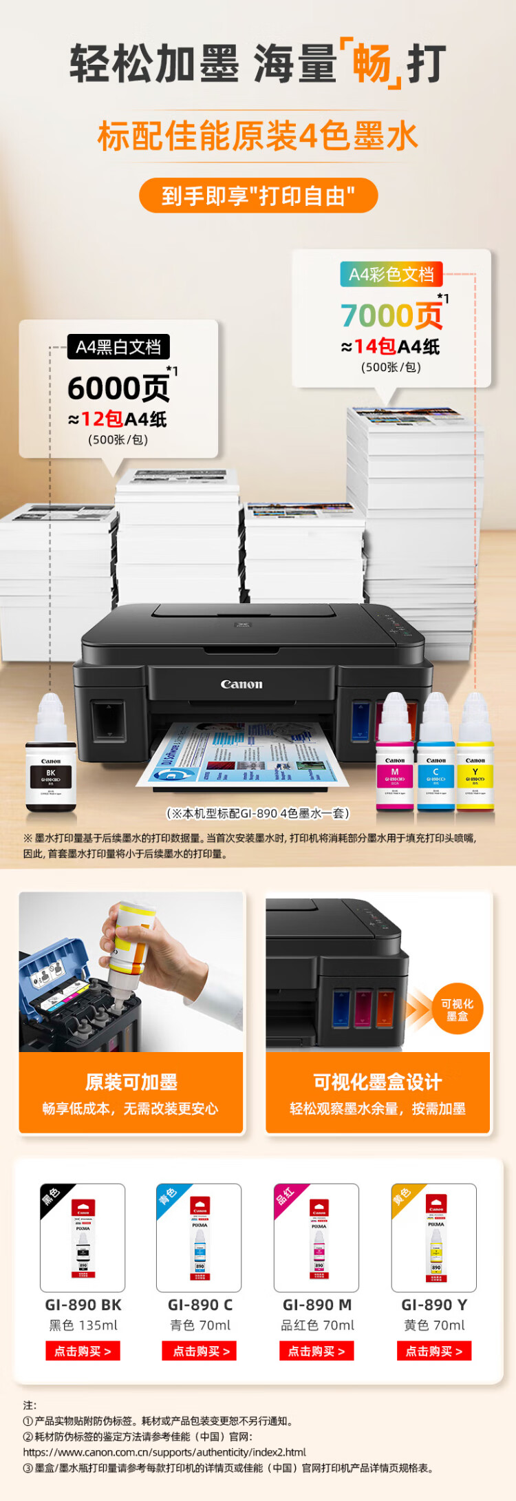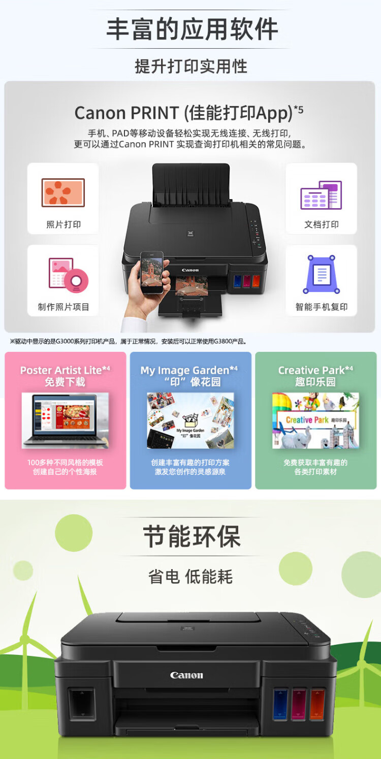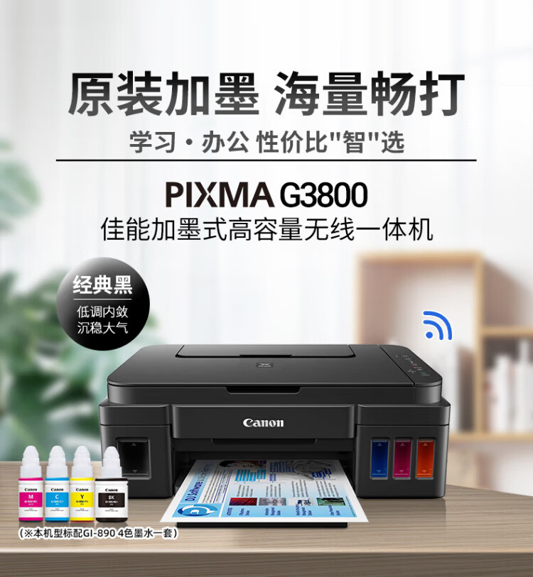 Canon G3800 refillable color inkjet student printer wireless home homework/photo printing large print volume printing copy scanning multi-function all-in-one machine