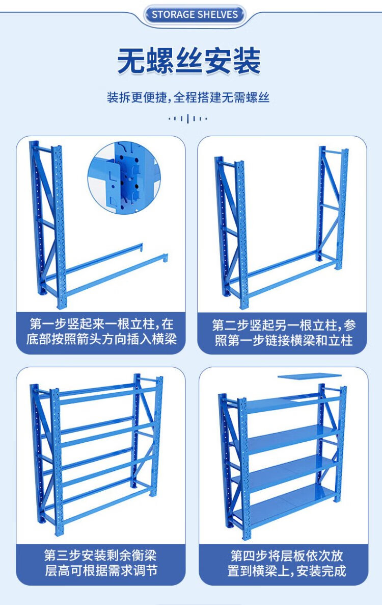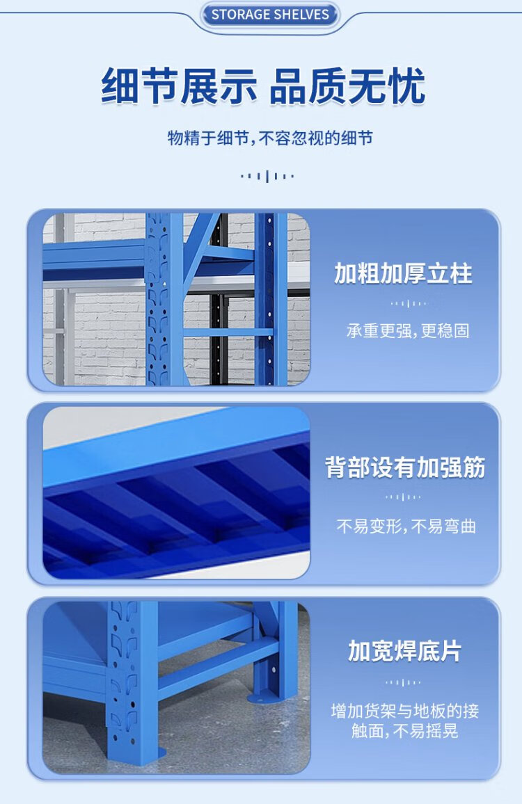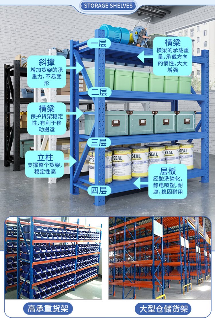 Haiaijia storage shelves multi-layer supermarket storage racks warehouse heavy-duty iron shelves 200*60*200cm load-bearing 280kg/layer