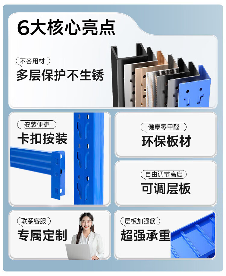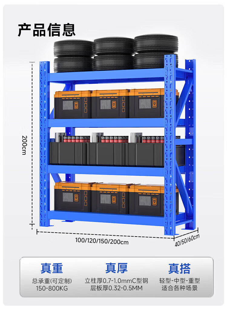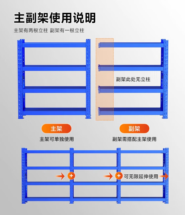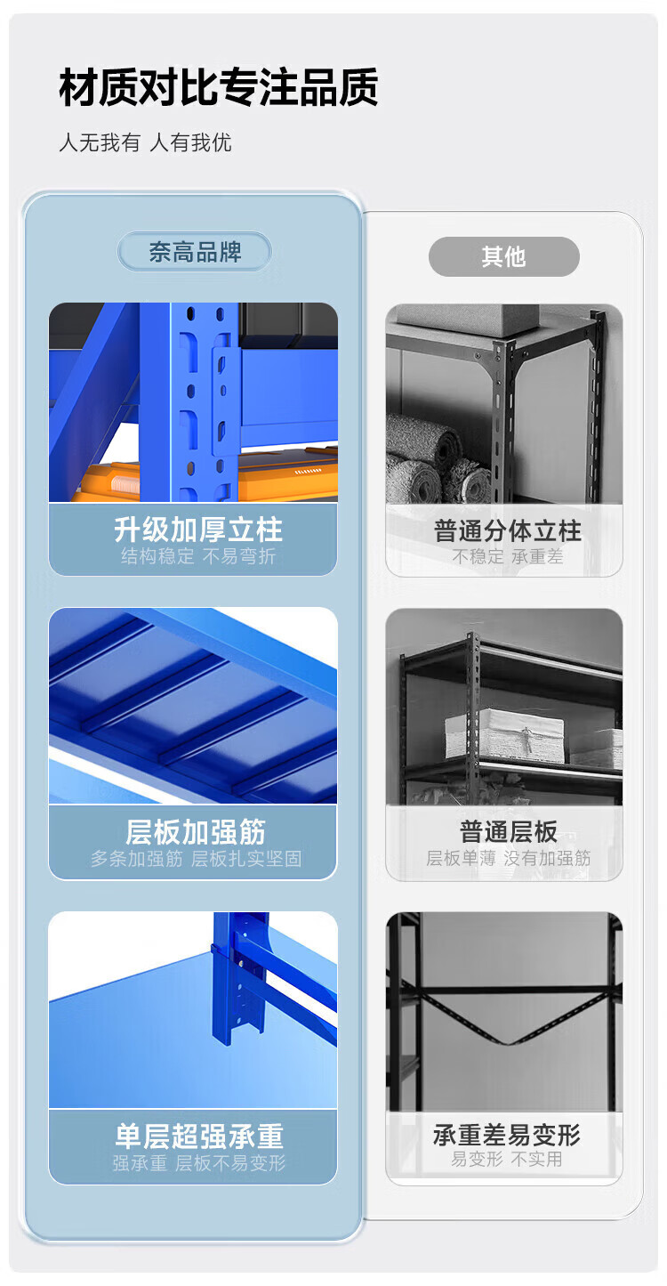 Naigao shelf storage factory warehouse storage rack light iron shelf white main rack multi-layer 1.5 meters four layers