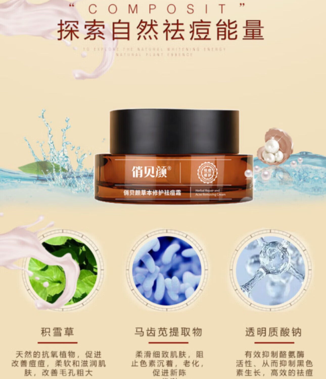 Qiaobeiyan herbal anti-acne cream, anti-acne cream, acne skin care, fades acne marks and pits, 1 bottle of anti-acne cream, 1 bottle of new anti-acne cream