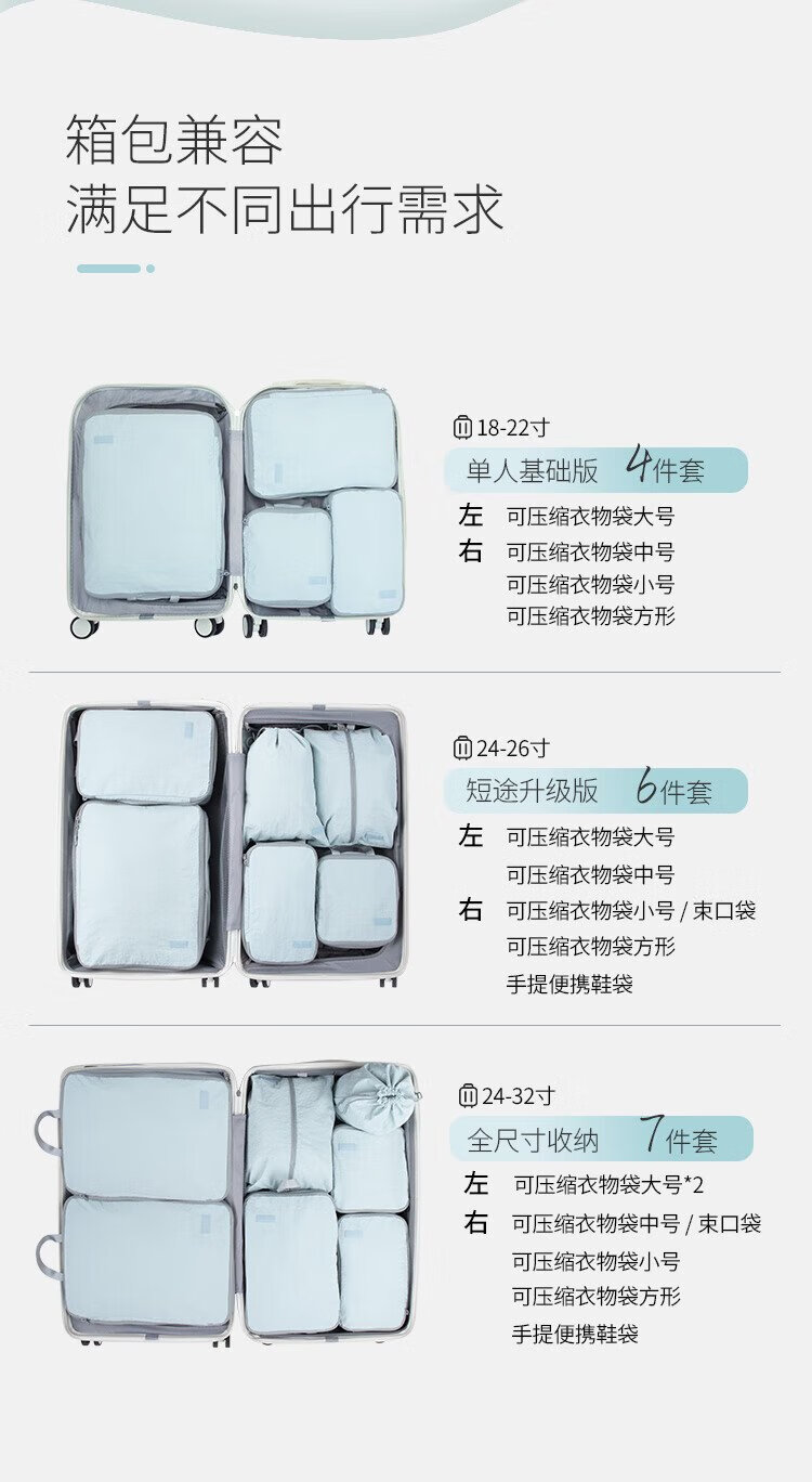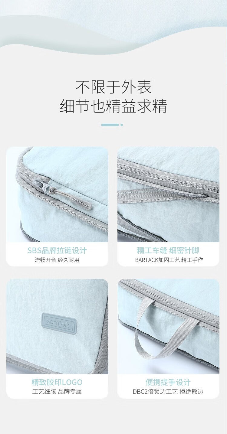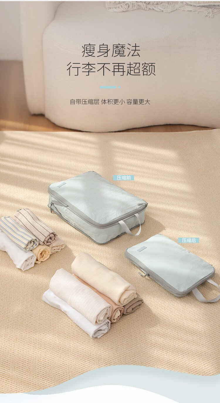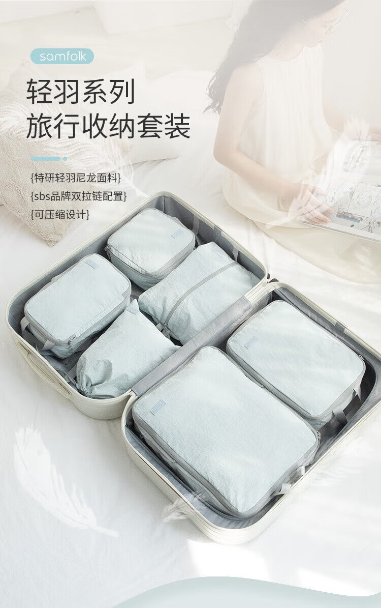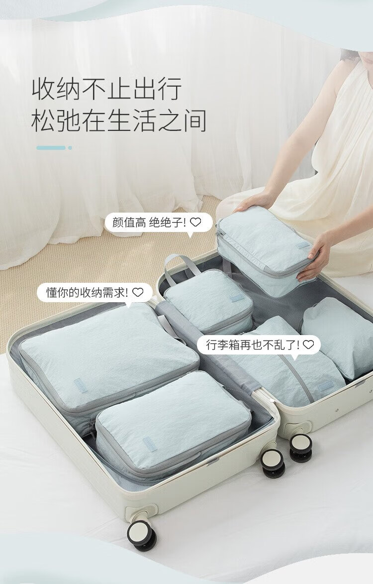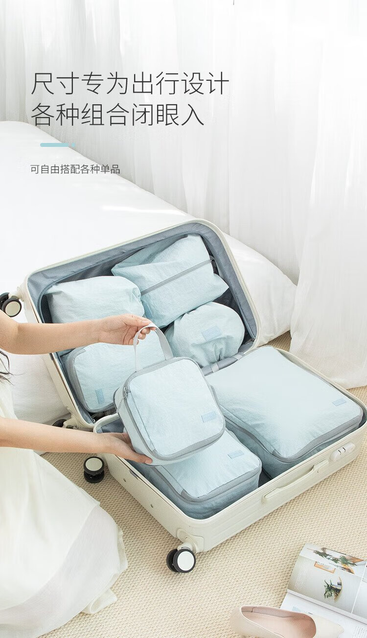 Samfolk Travel Storage Bag Suitcase Clothing Compression Packaging Storage Bag Business Travel Clothes Storage Blue 6-piece Set