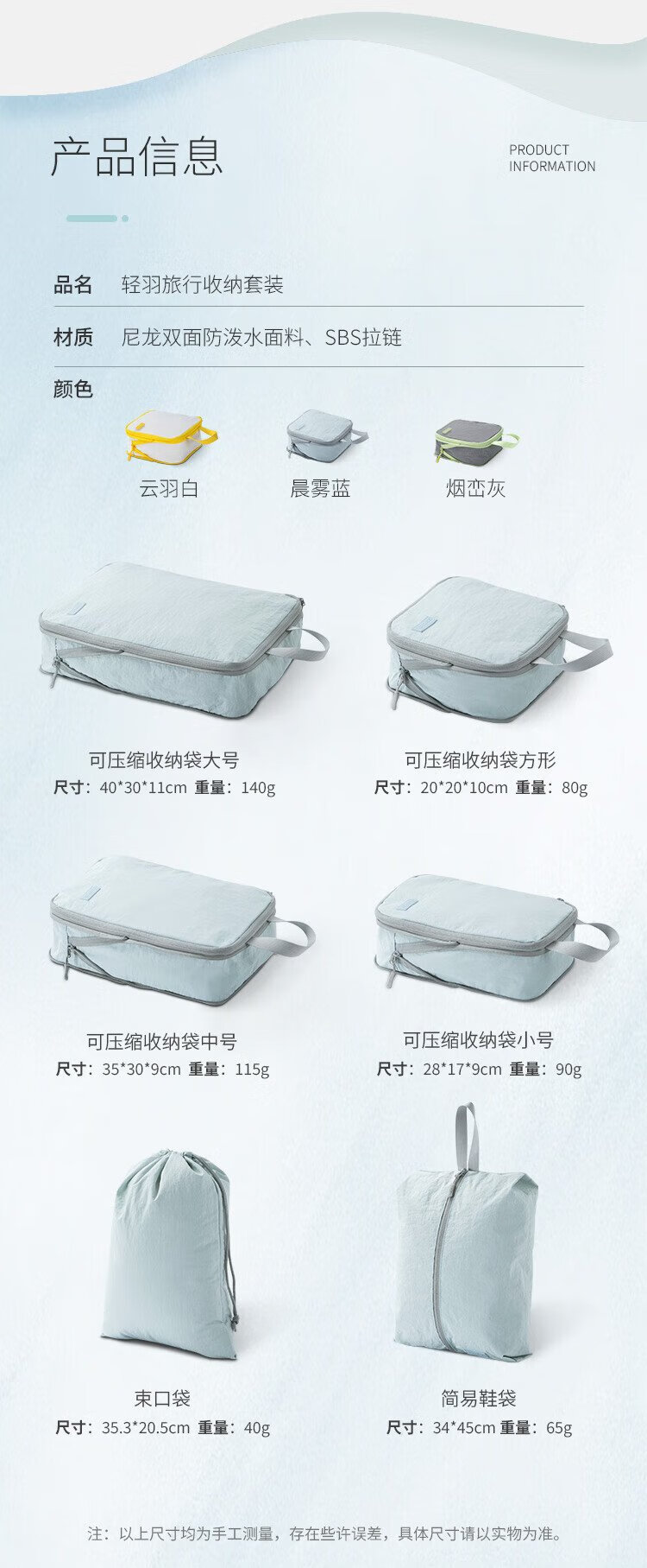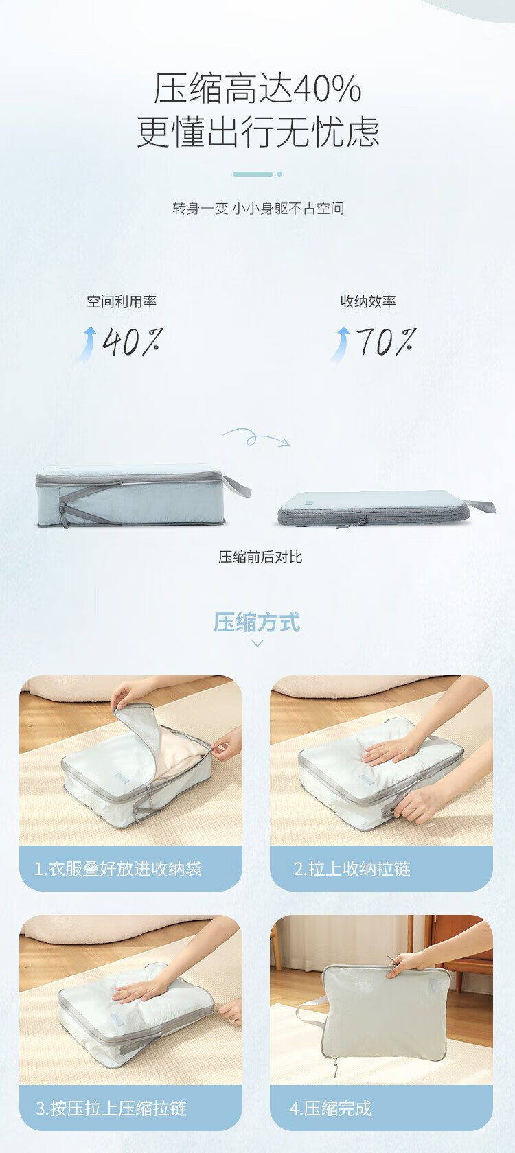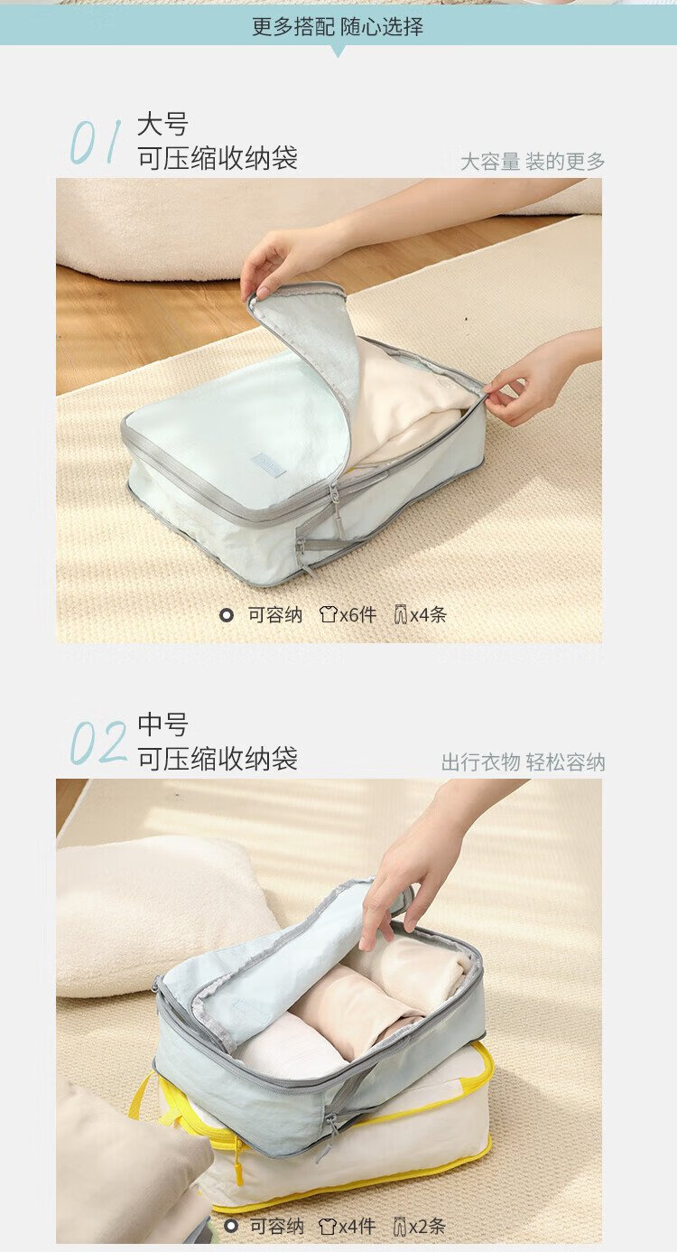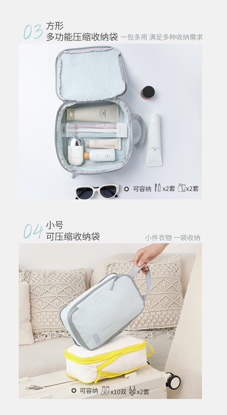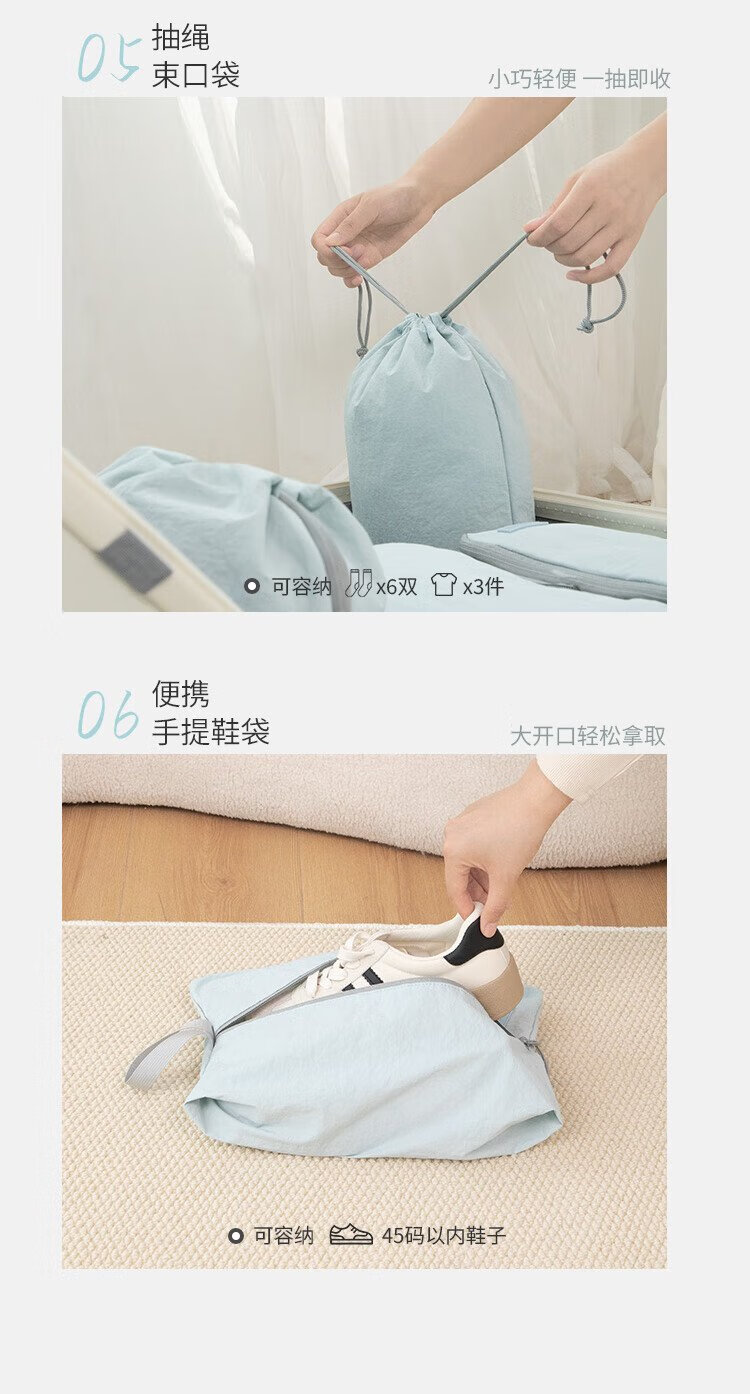 Samfolk Travel Storage Bag Suitcase Clothing Compression Packaging Storage Bag Business Travel Clothes Storage Blue 6-piece Set