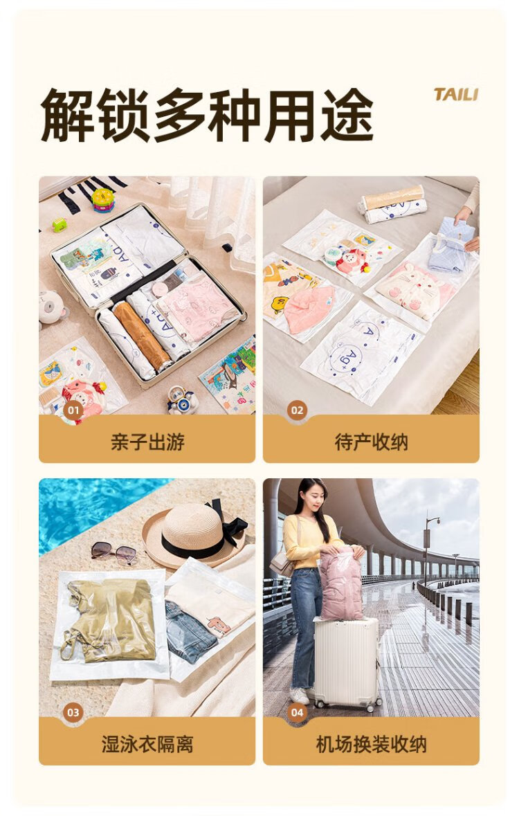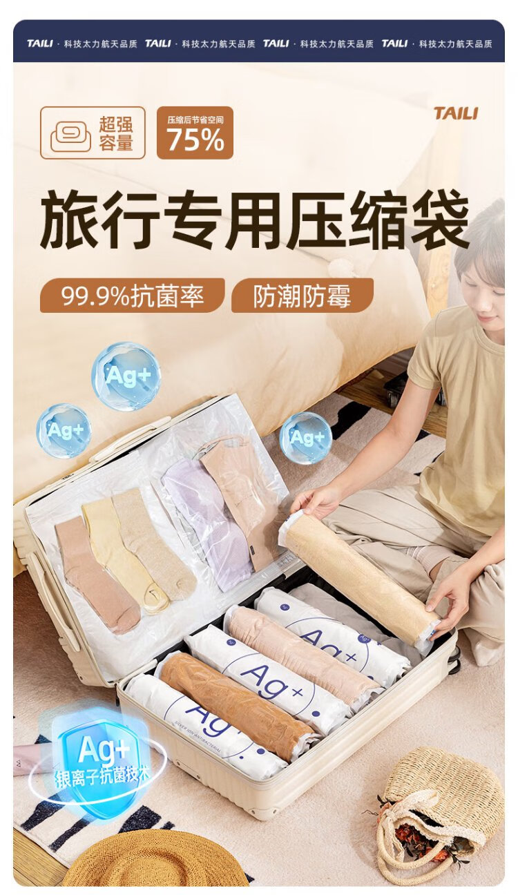Taili Antibacterial Mother and Baby Travel Hand-rolled Storage Bag Vacuum Compression Suitcase Special for Clothes 3 Small 2 Large