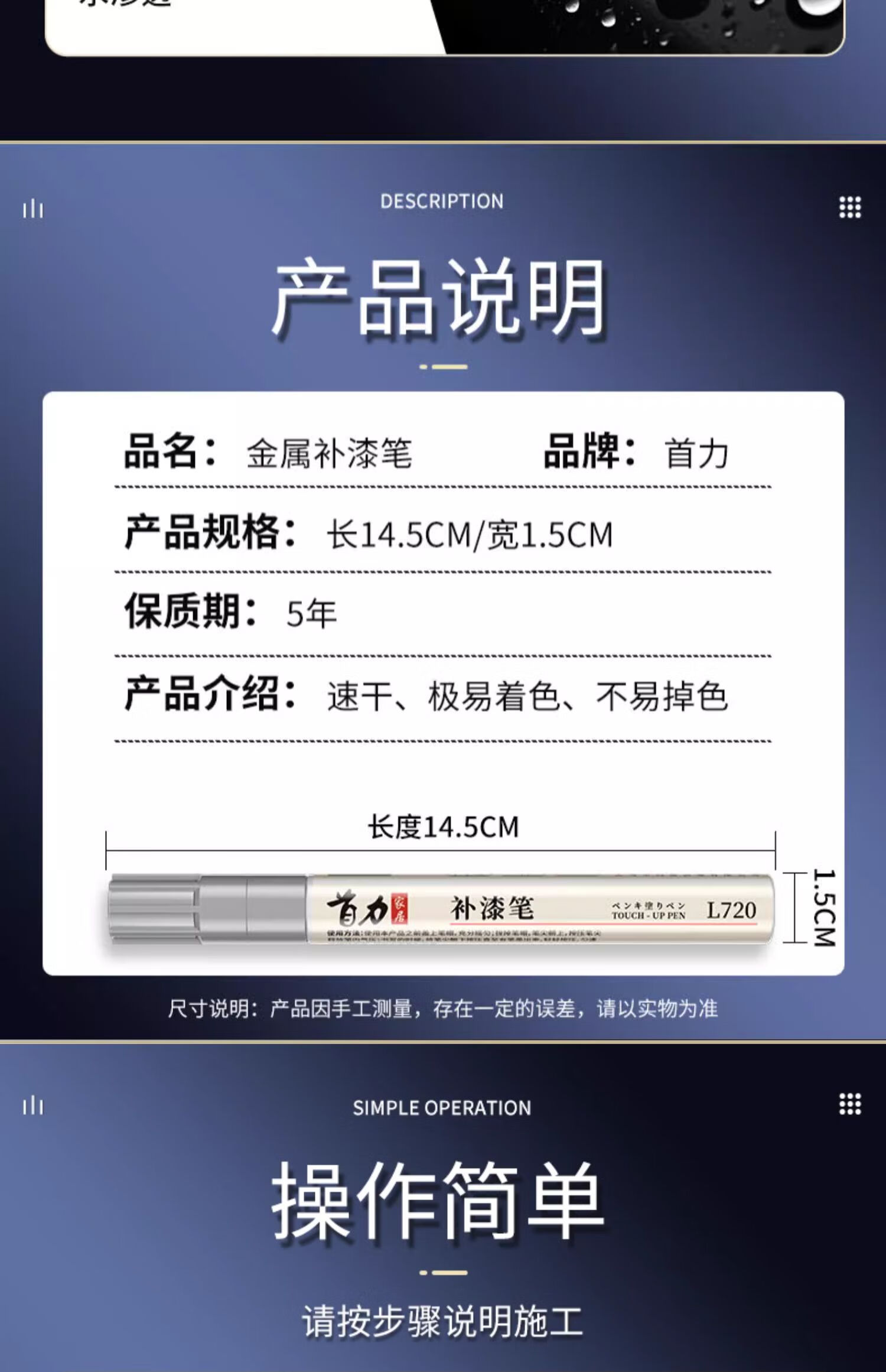 Shouli metal touch-up pen paint pen aluminum alloy doors and windows anti-theft door aluminum stainless steel glasses frame bag scratch repair matte black