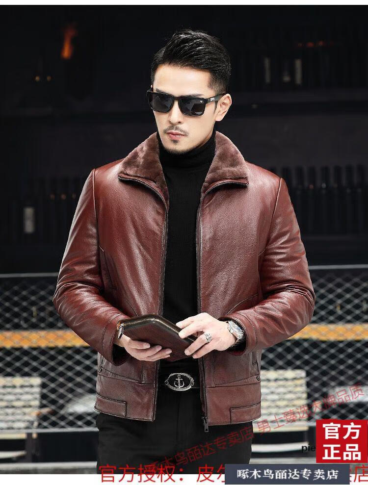 啄木鸟(TUCANO)海宁真皮皮衣水貂绒内胆绵羊皮派克服男士貂皮大衣男皮草外套冬厚 红棕色 M 165码-100-115斤