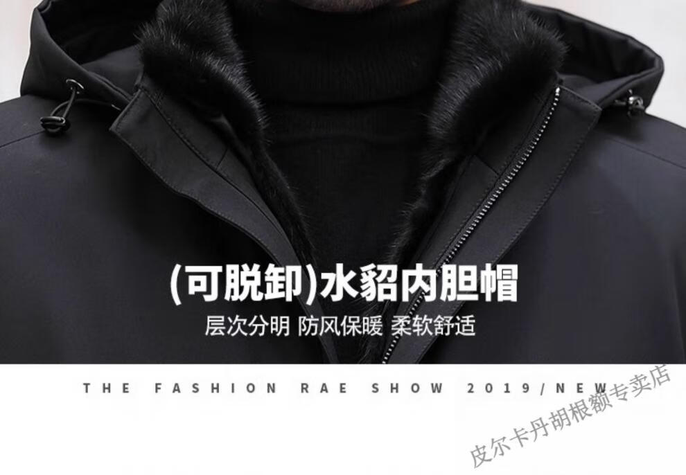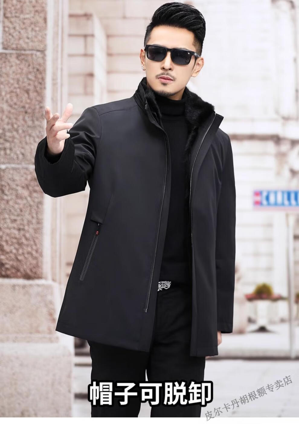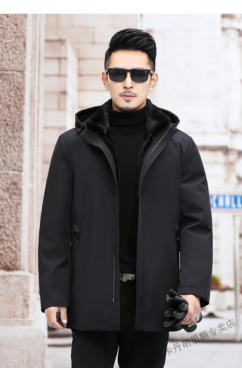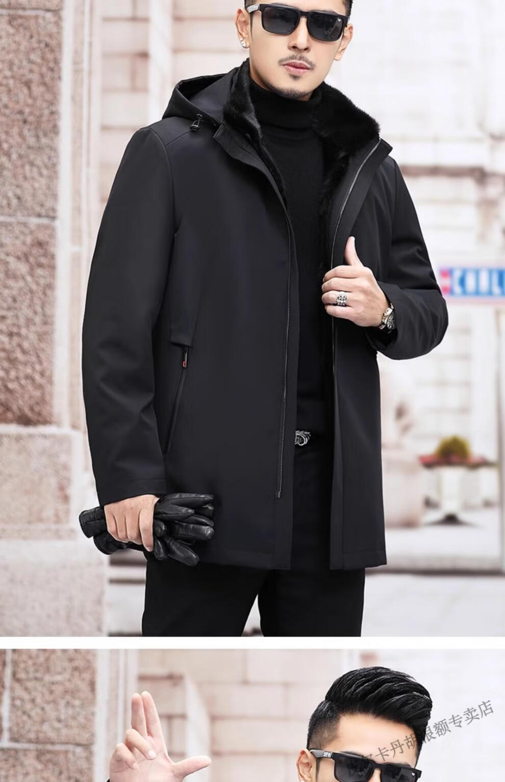 Pierre Cardins neuer Parka Herren Nerzfell integriertes Innenfutter Echtfell Nickmantel warmer Wintermantel mittleren Alters schwarz M 165