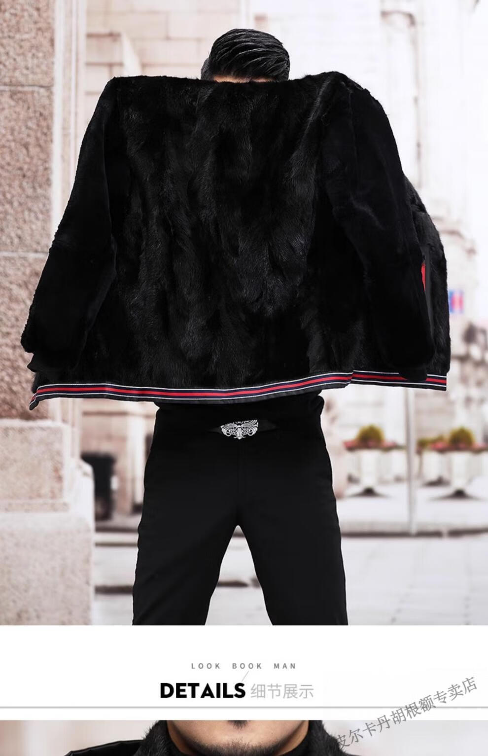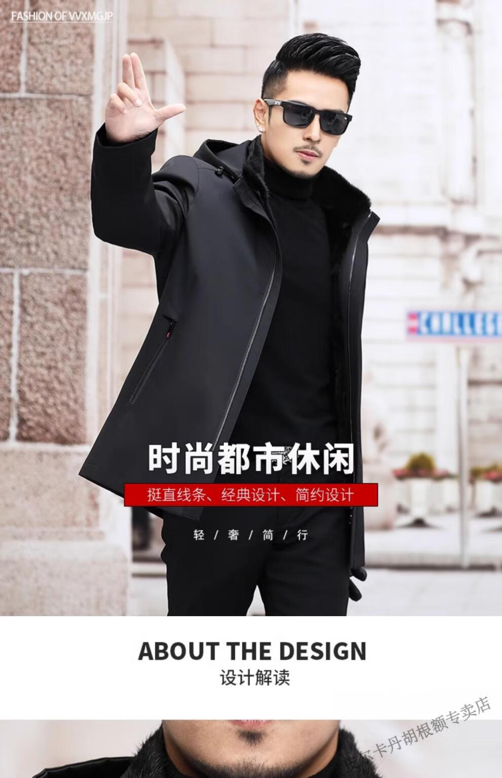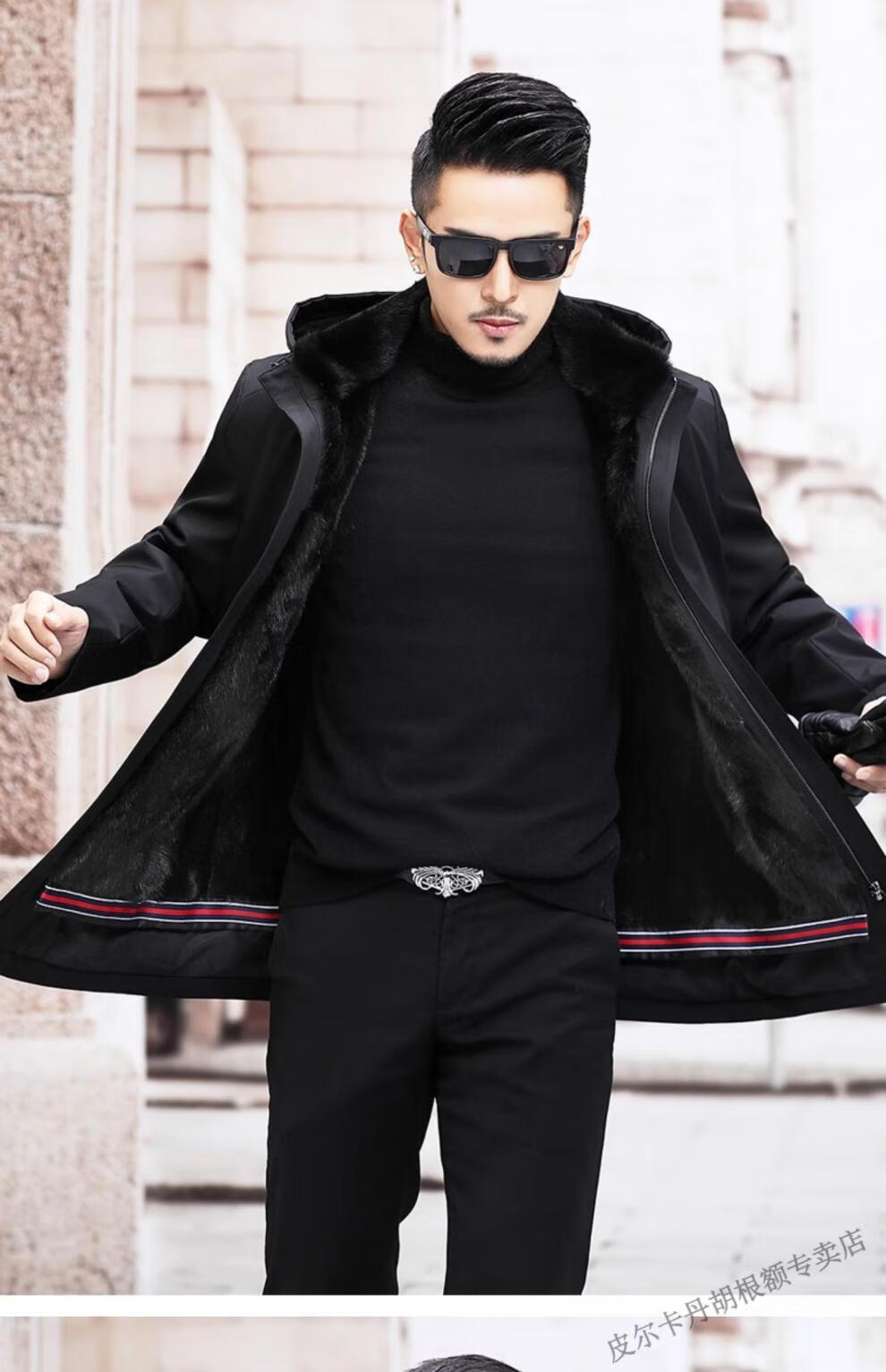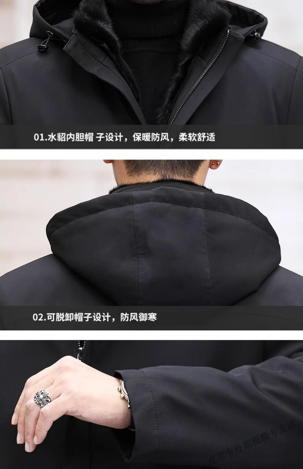 Pierre Cardins neuer Parka Herren Nerzfell integriertes Innenfutter Echtfell Nickmantel warmer Wintermantel mittleren Alters schwarz M 165