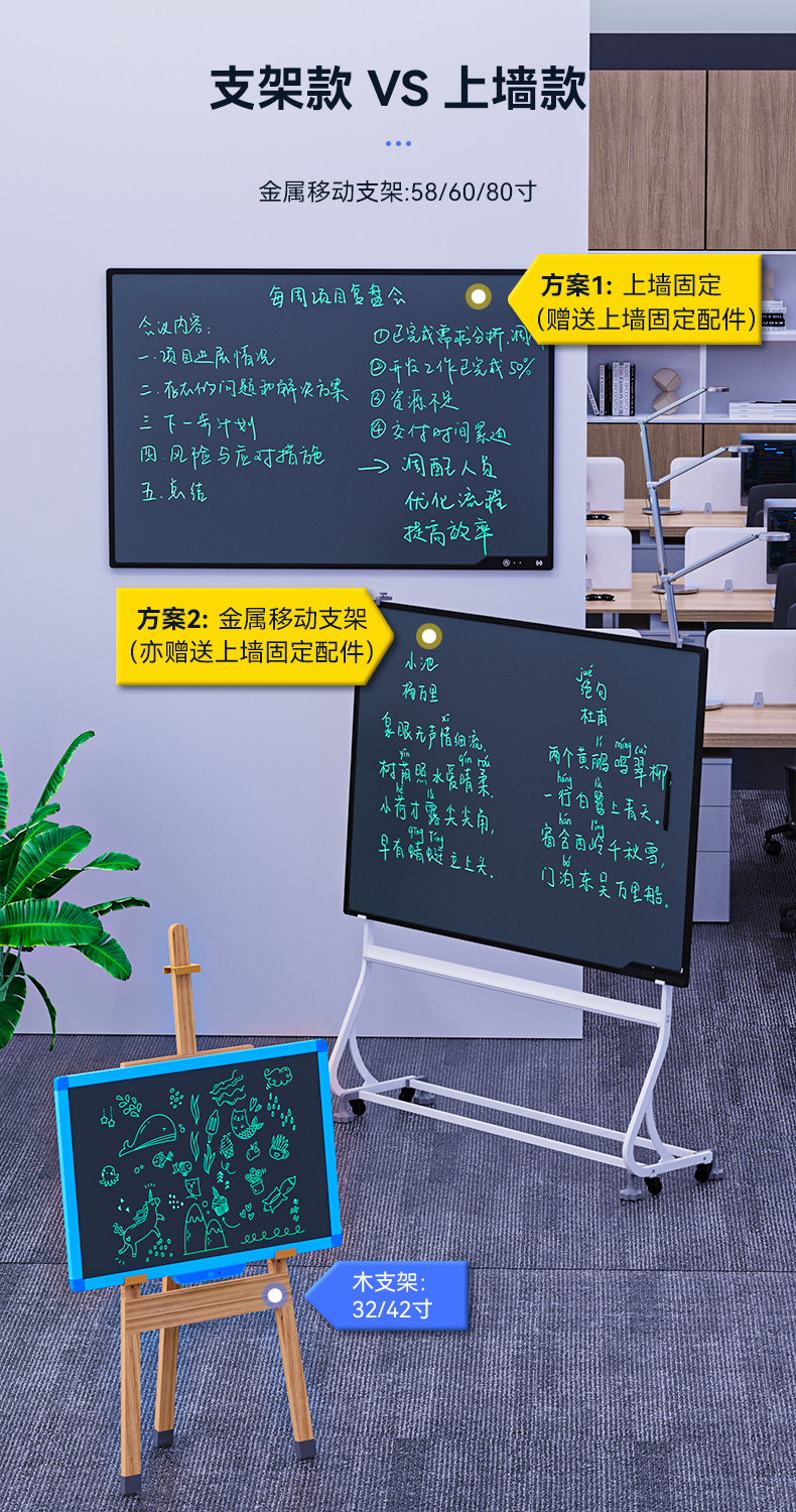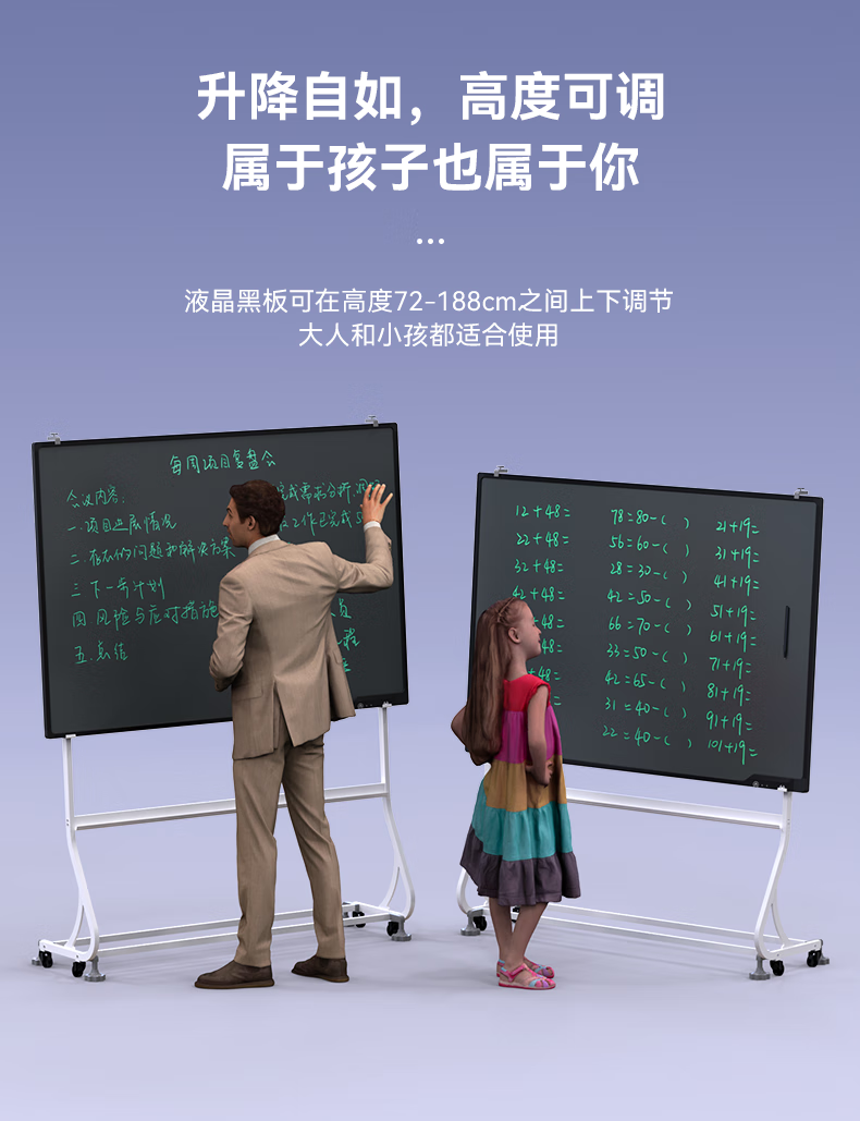 NeWYeS large blackboard home teaching 60-inch large-size highlight LCD handwriting board office meeting electronic blackboard commercial company training removable whiteboard drawing board 58-inch high-brightness charging model + wheel stand
