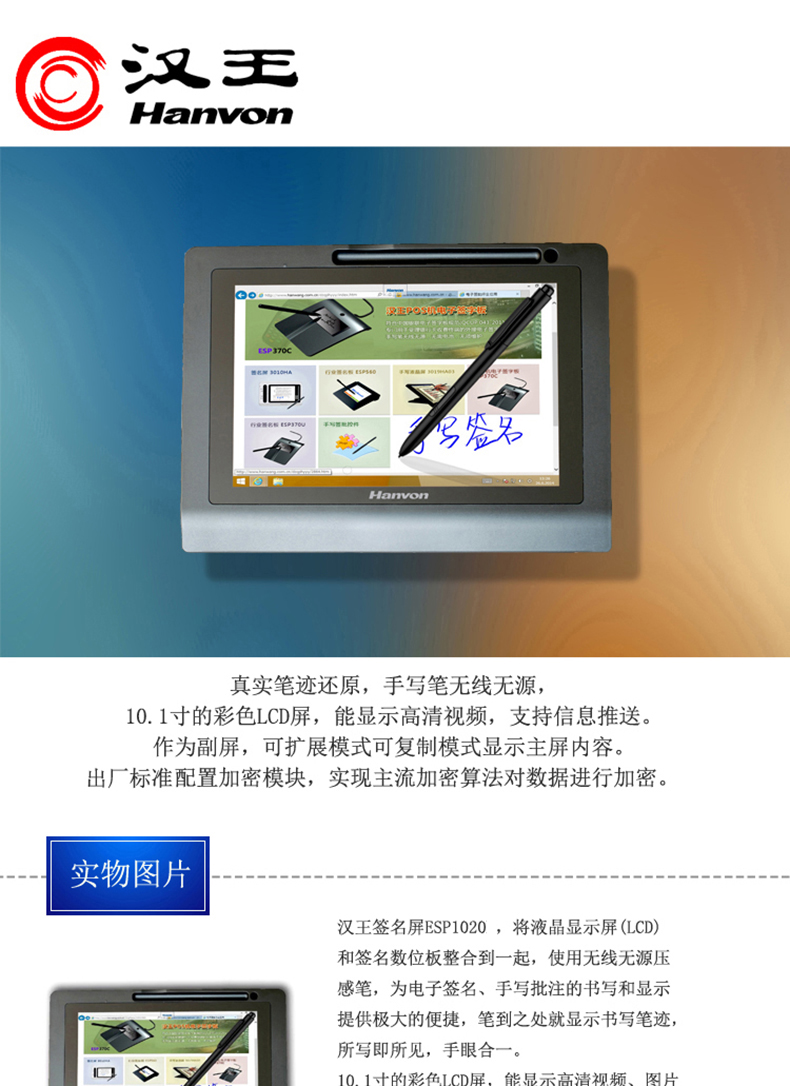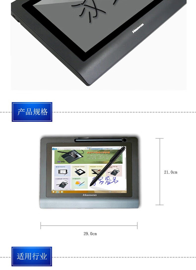 Hanvon electronic signature ESP1020 handwritten signature board industry computer signature writing signature screen original handwriting preservation custom development signature ESP1020E suitable for entry and exit management system platform