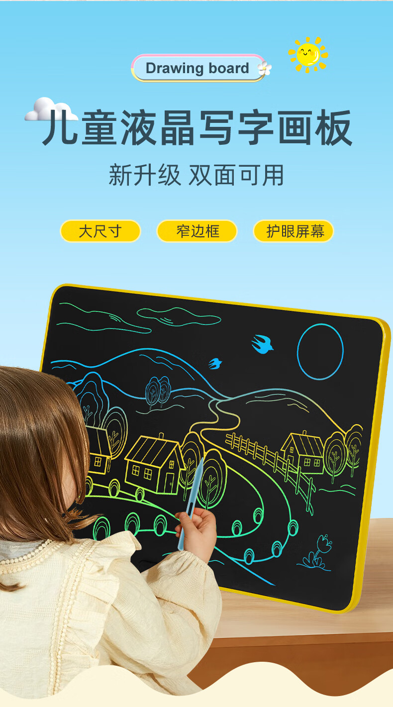 PBJ Children's Drawing Board LCD Handwriting Pad Highlight Eye-Protective Large Screen Color Rechargeable Baby Painting Graffiti Hand-Drawing Pad Calculation Small Blackboard Drawing Smart Tablet Birthday Gift 22-inch Eye-Protective Pink Color Screen + Protective Case + 2 Pens + Cables