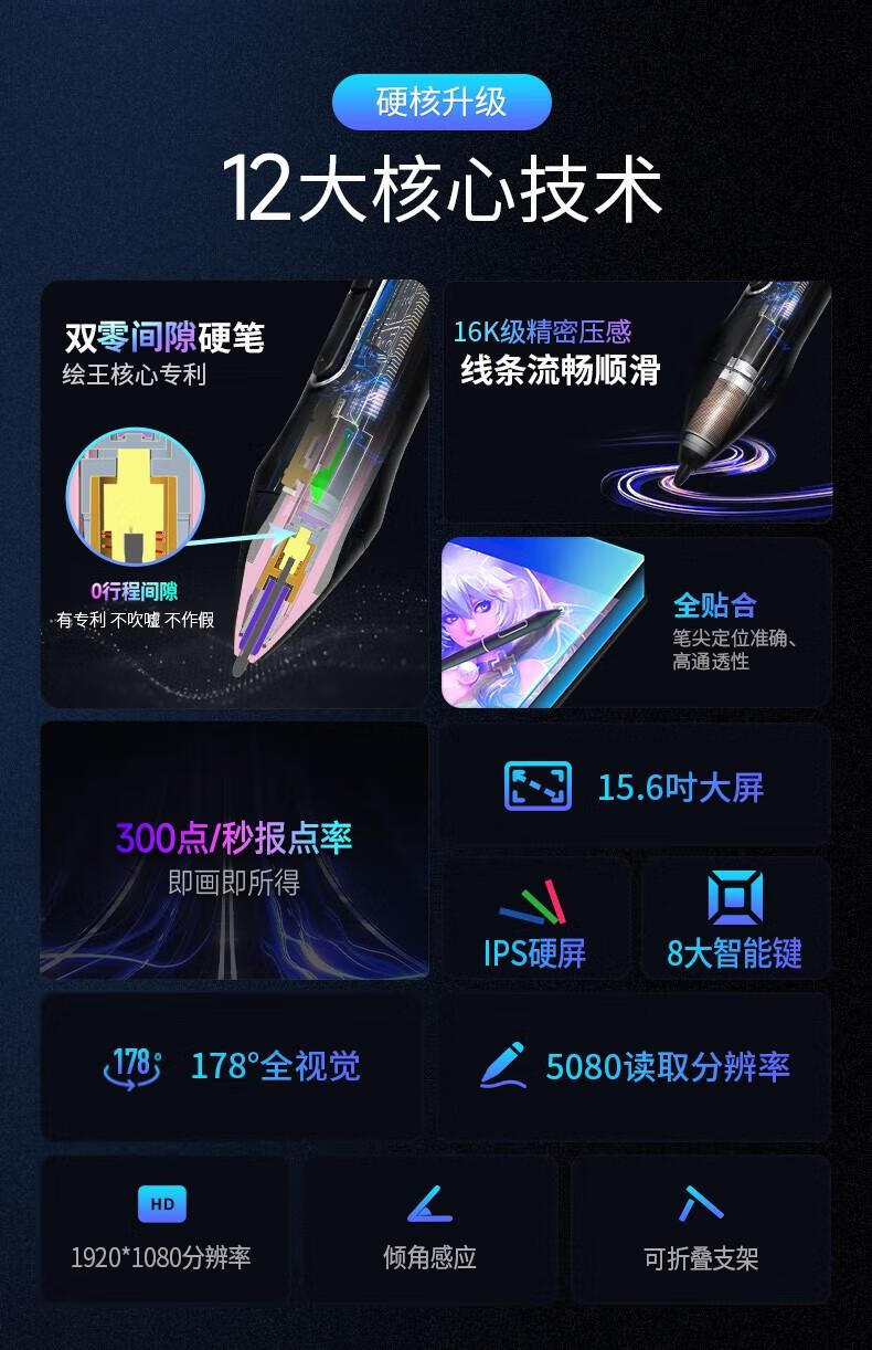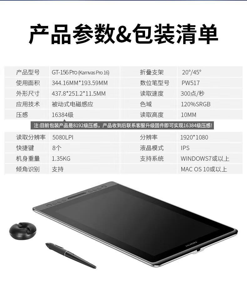 HUION KAMVAS PRO16 écran numérique passif écran peint à la main écran d'écriture entièrement laminé écran de peinture