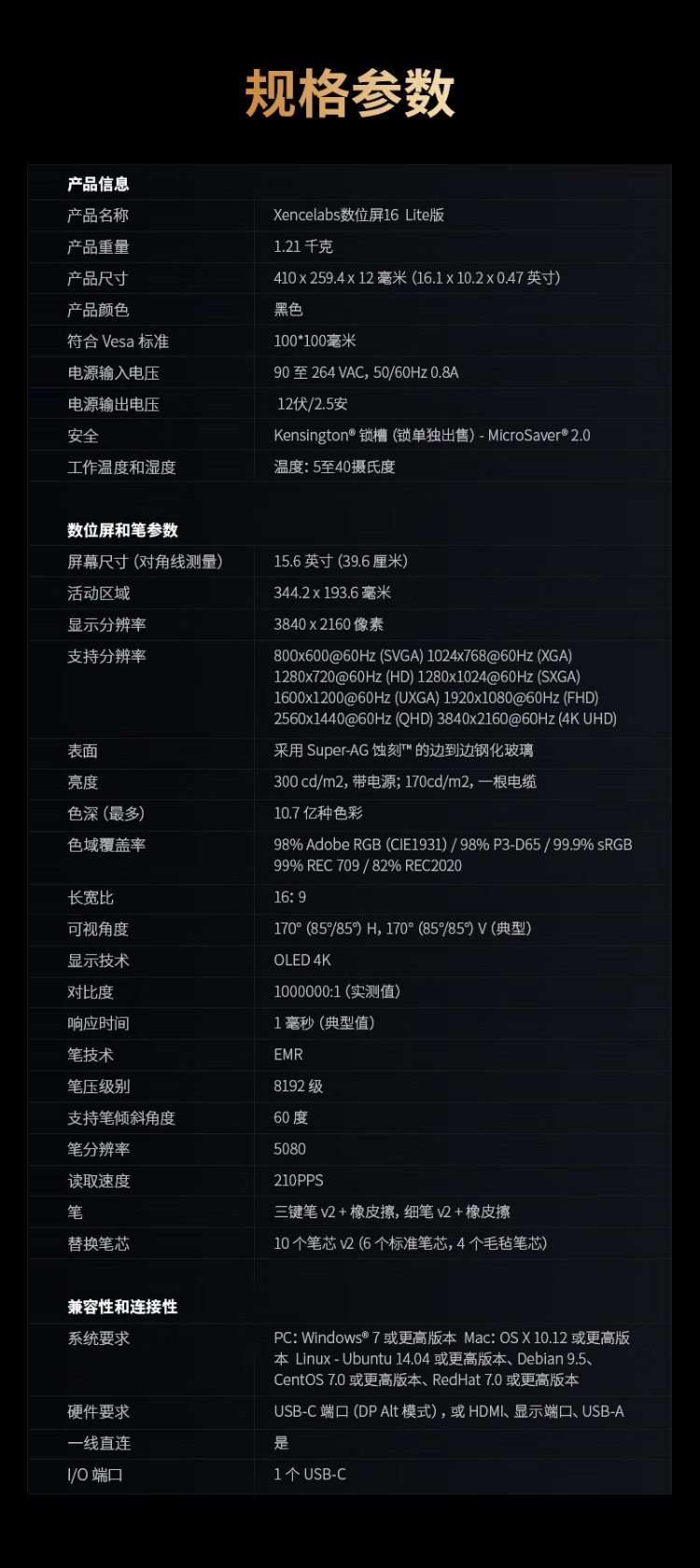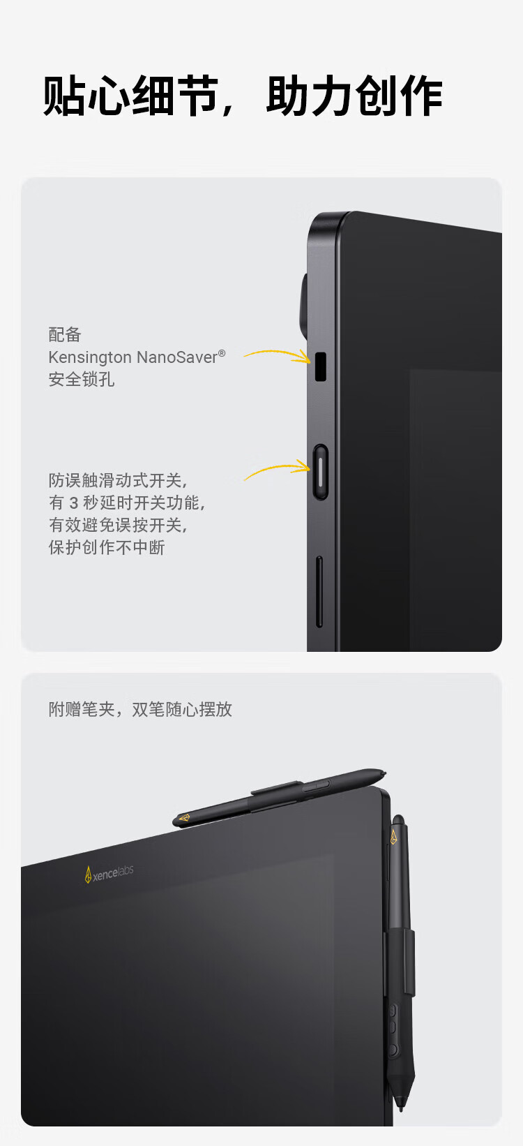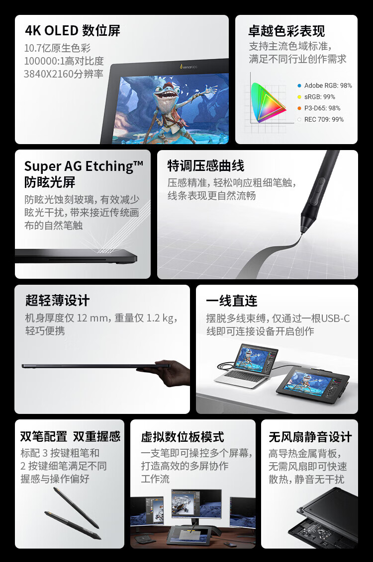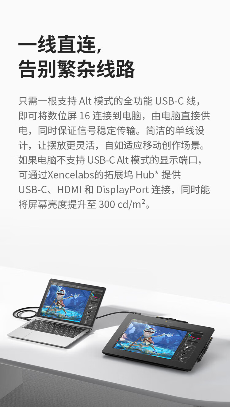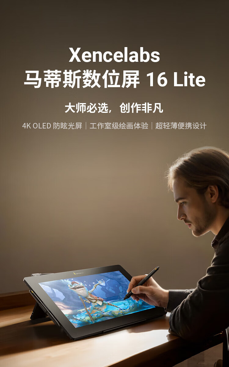 Xencelabs Matisse digital screen 16 (Lite version) hand-painted screen, drawing screen, handwriting screen, painting screen, creative screen, tablet 4K ultra-clear OLED screen connected to computer, Lite version, double pen and one line direct connection