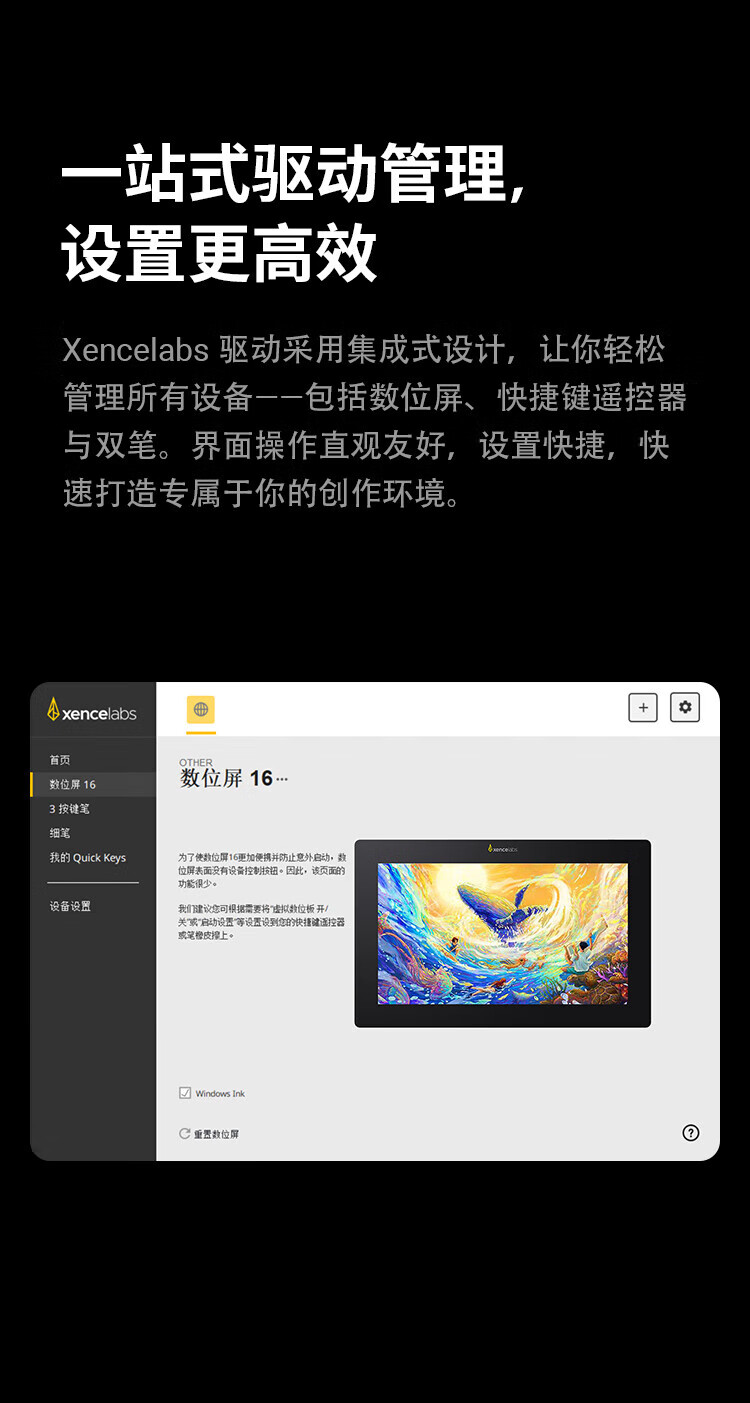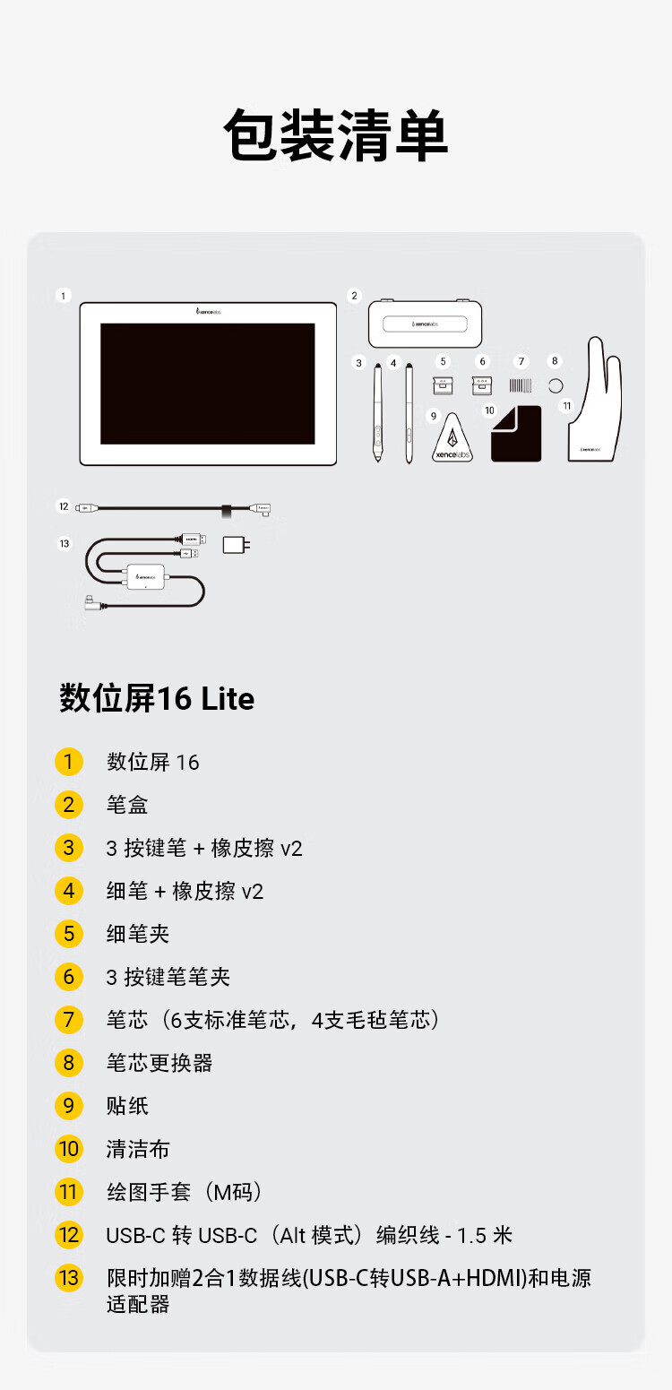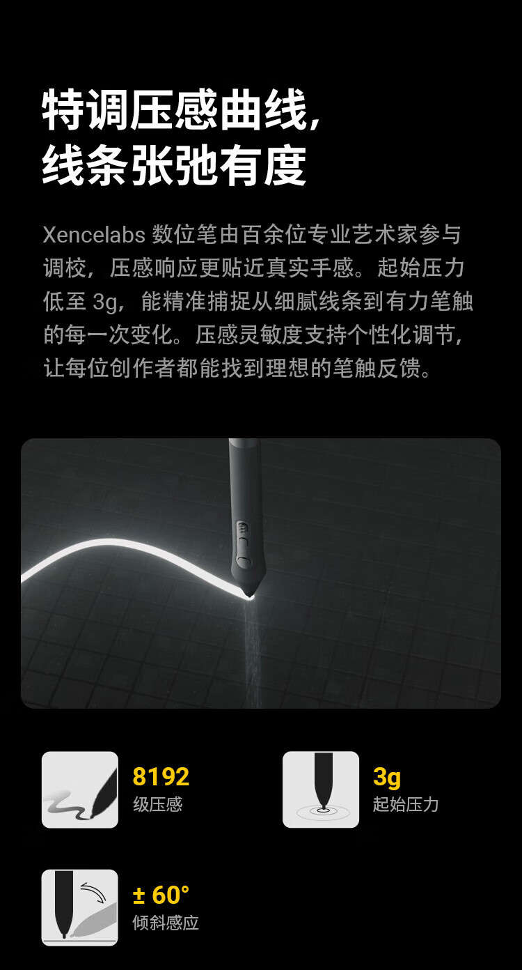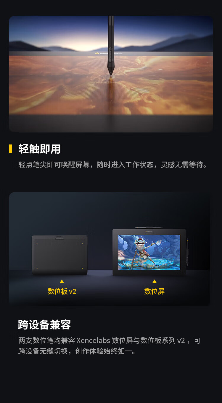 Xencelabs Matisse digital screen 16 (Lite version) hand-painted screen, drawing screen, handwriting screen, painting screen, creative screen, tablet 4K ultra-clear OLED screen connected to computer, Lite version, double pen and one line direct connection