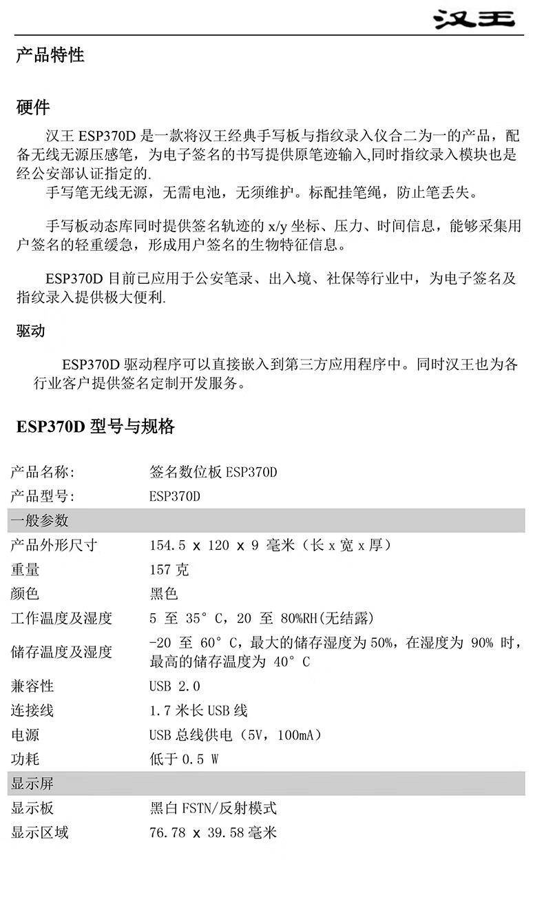 Hanvon electronic signature board ESP370U original handwriting signature electronic screen handwriting signature board writing signature secondary development original handwriting preservation ESP370U suitable for Jiangsu Centers for Disease Control and Prevention
