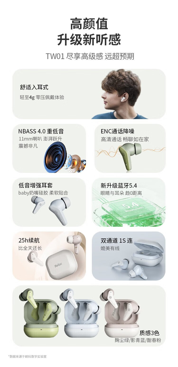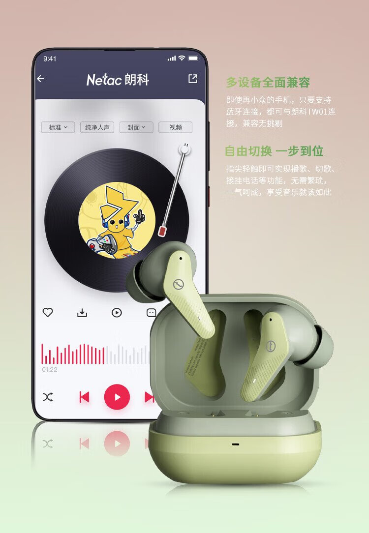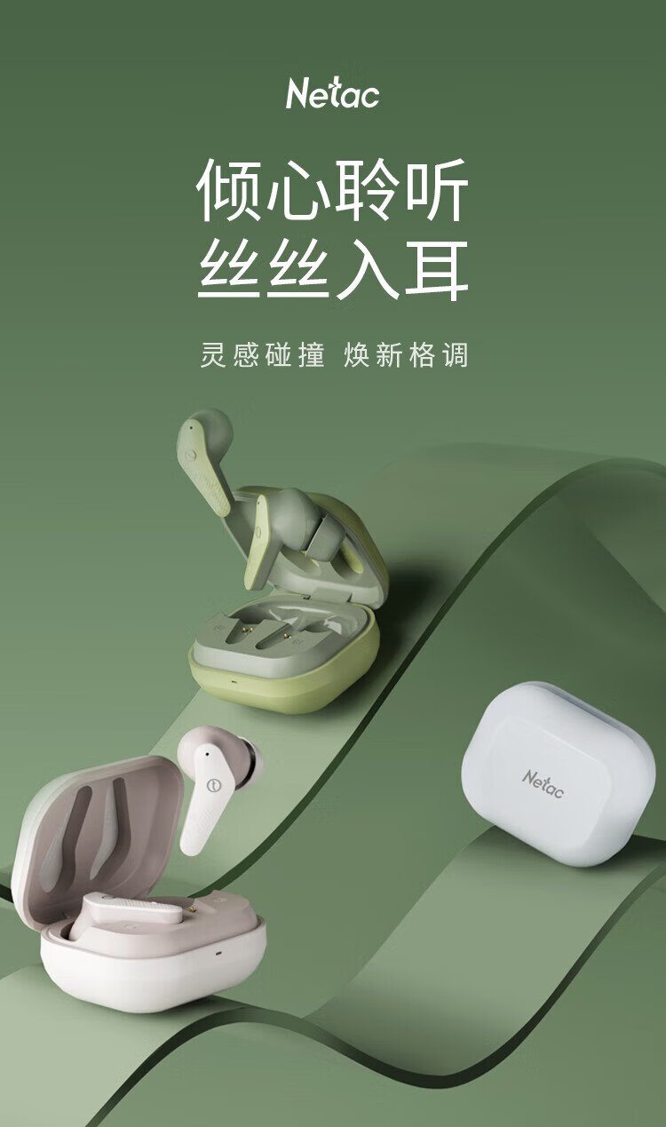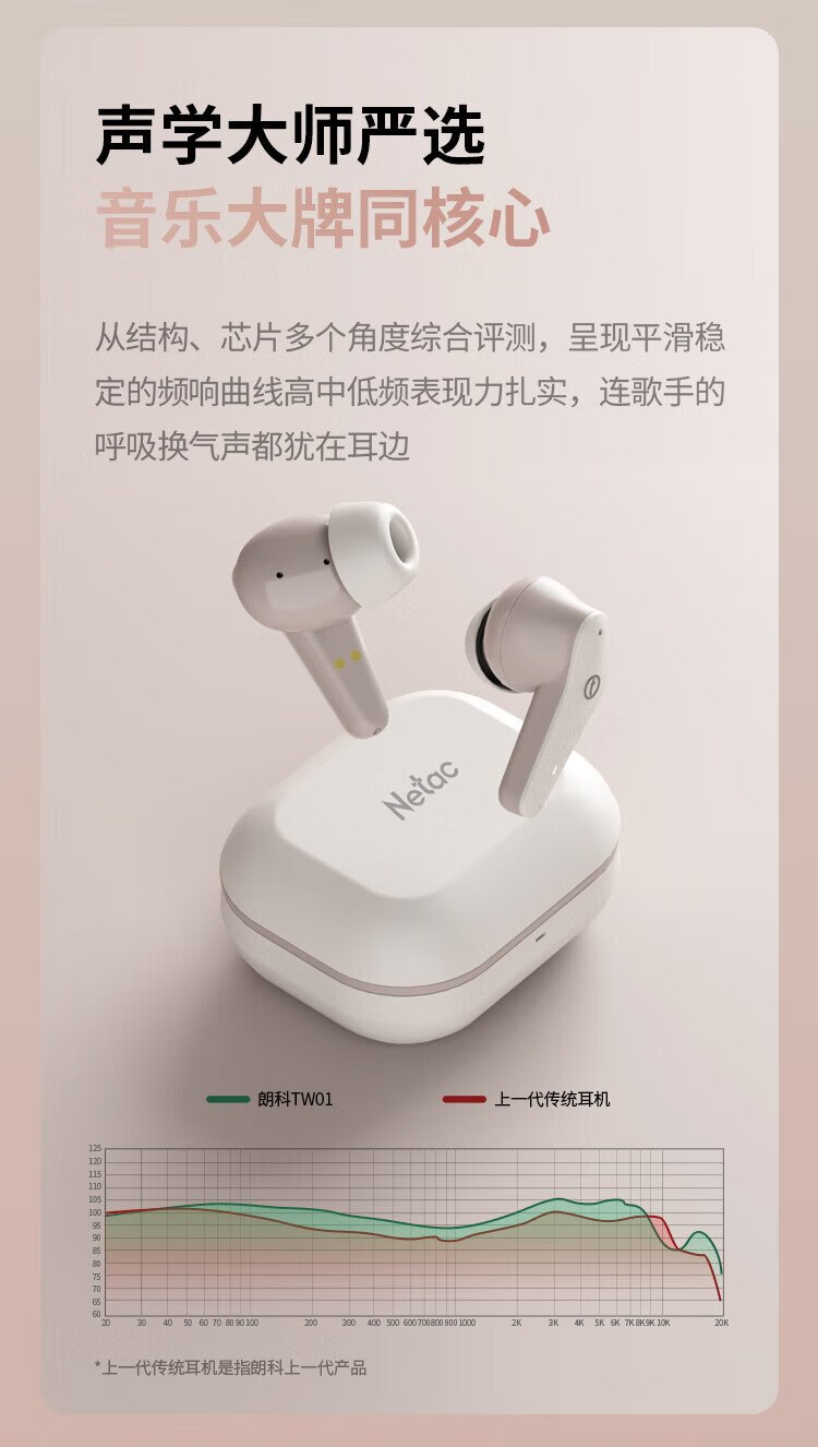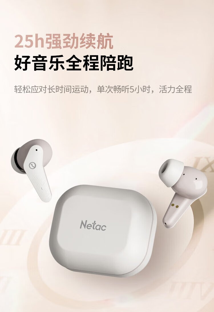 Netac true wireless stereo Bluetooth headset, wireless sports gaming headset, call noise reduction, suitable for Apple, Huawei and Xiaomi mobile phones TW01 pink