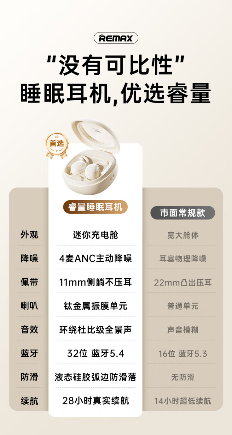 REMAX2025 New Ultra-Thin Invisible Sleep Bluetooth Headset Wireless Sleeping Special for Side Sleeping Lying Comfortable No Pressure on the Ear to Aid Sleep ASMR Soundproof Earplugs No Tackling Top Ten