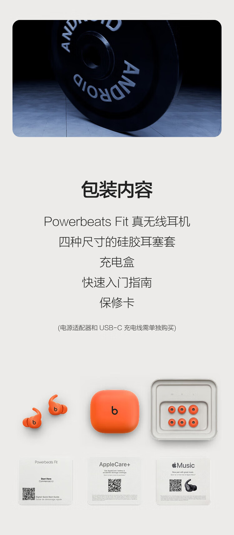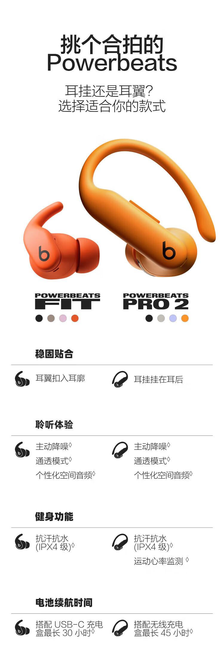 Beats Powerbeats Fit New Product True Wireless Noise Canceling Headphones Sports Bluetooth Headphones Compatible with Apple Android System High Burning Orange