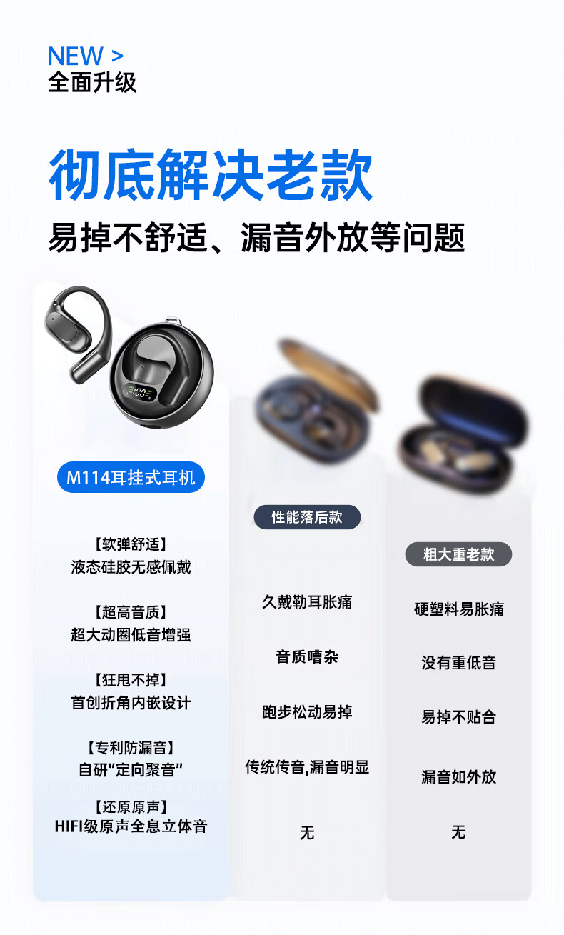 Lato adapts to vivo mobile phone Bluetooth headset 2025 latest model adapts to vivo headset Bluetooth ear-hung headset, ultra-long battery life, non-in-ear wireless headset, sports noise-cancelling music, Obsidian Black Flagship Deluxe Edition - New Bluetooth 5.4 - Comfortable and painless to wear for a long time. Top with new high-performance battery. First released in 2025
