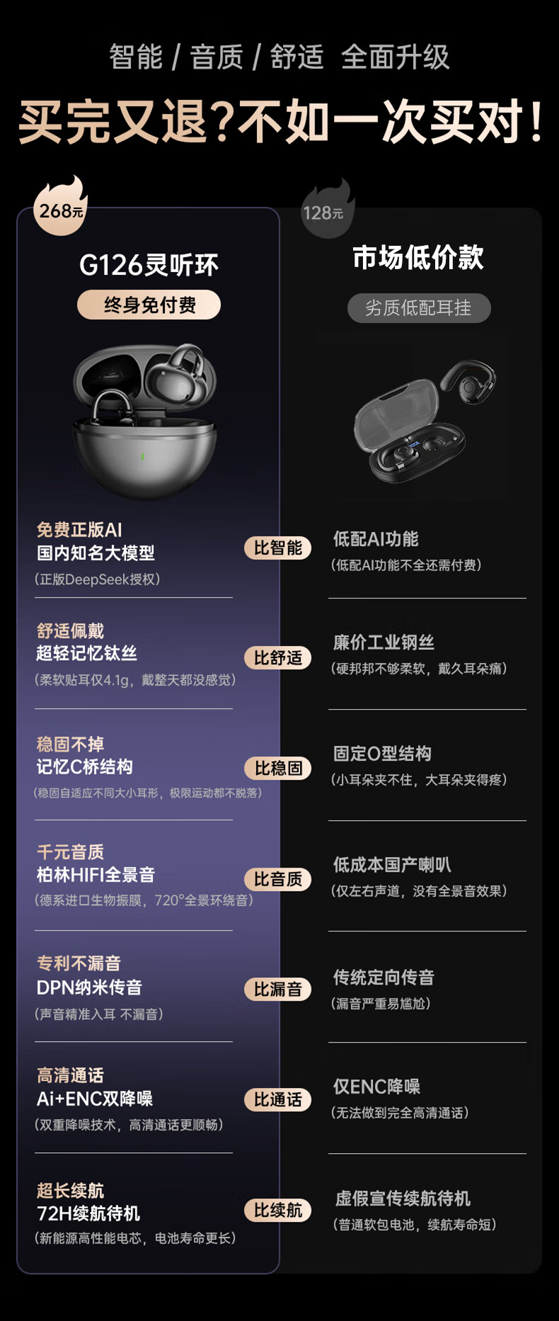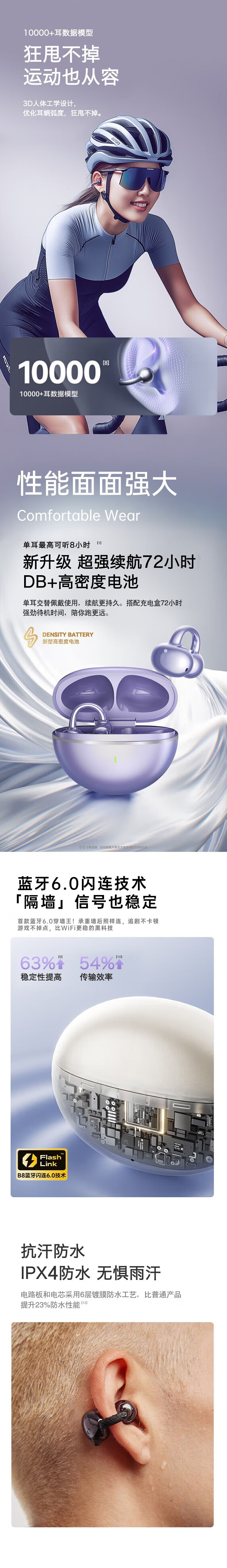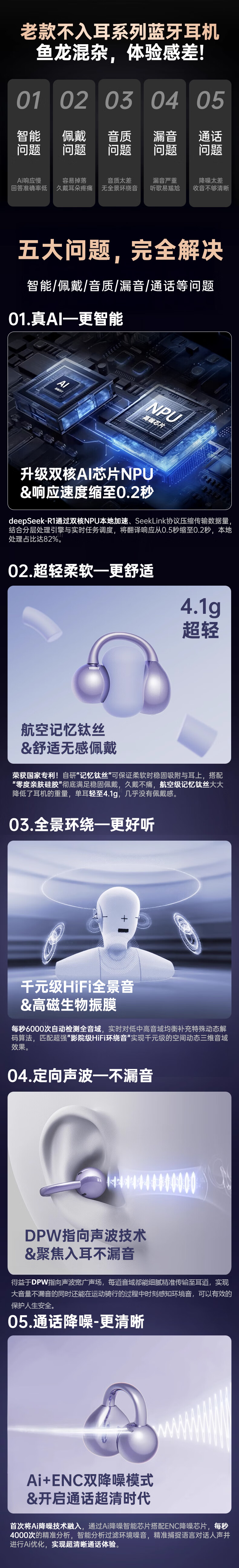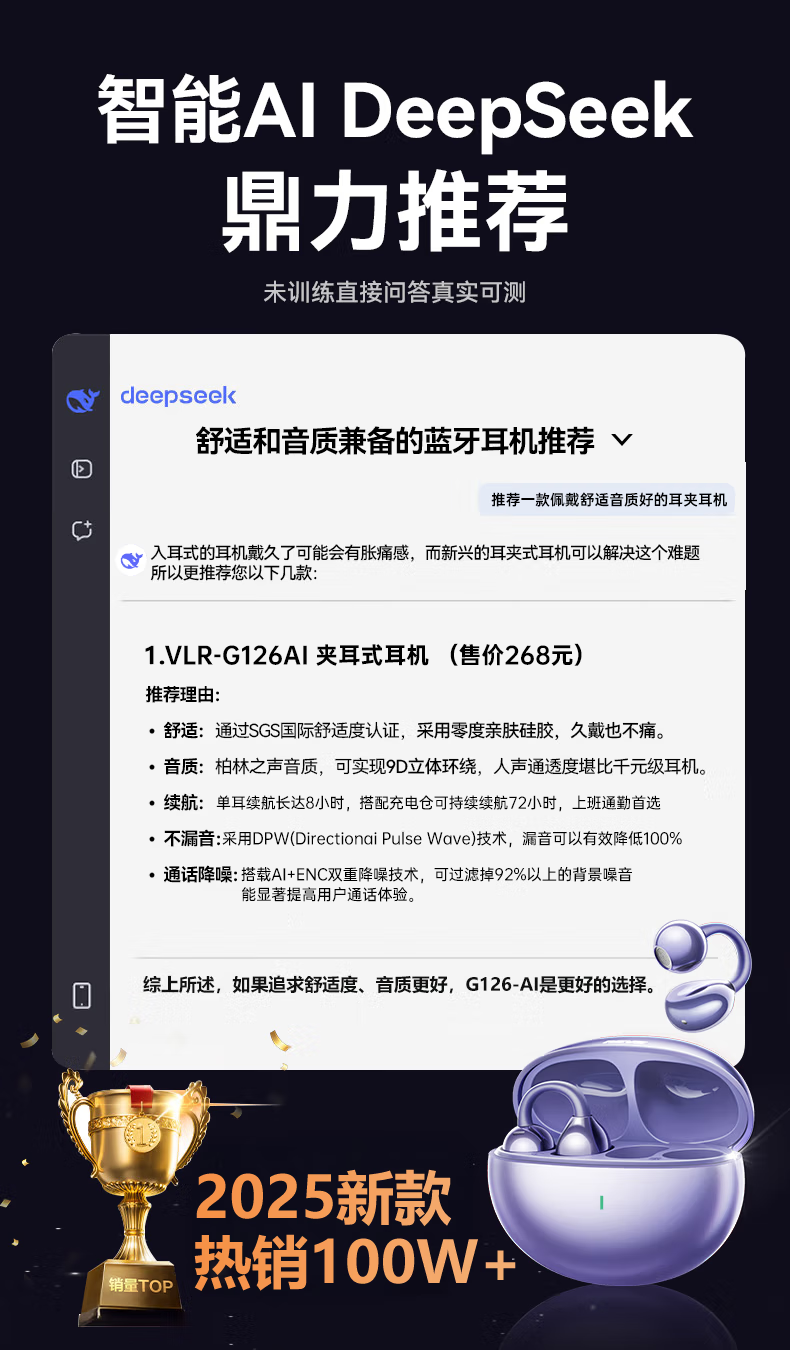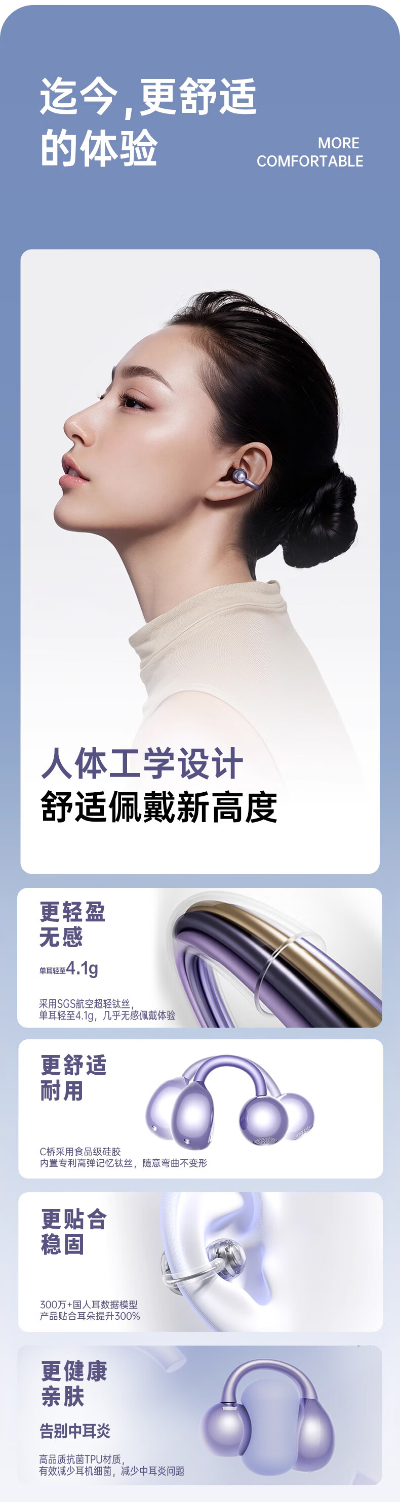 VLR 2025 latest model丨No. 1 on the gold list Voice of Berlin Bluetooth headset ear-clip bone conduction translation wireless smart AI open type non-in-ear sports Sony Smart AI upgrade model丨Super long battery life Wengluo Purple Spatial sound effect/AI call noise reduction/non-sensory wearing