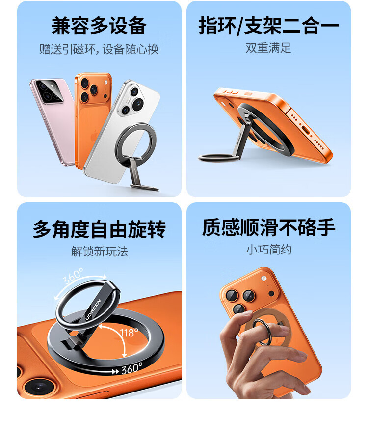 Greenlink magnetic holder mobile phone ring buckle magsafe holder 360 rotating desktop folding portable alloy support stand suitable for iPhone17/16 Huawei mate70