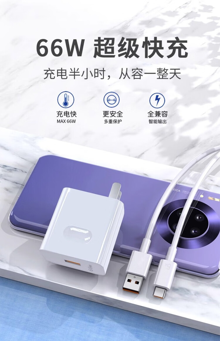 Huawei is suitable for original Huawei charging head 66w100W fast charging head Honor mate6040prop50p40p30 mobile phone charging special 66W fast charging head