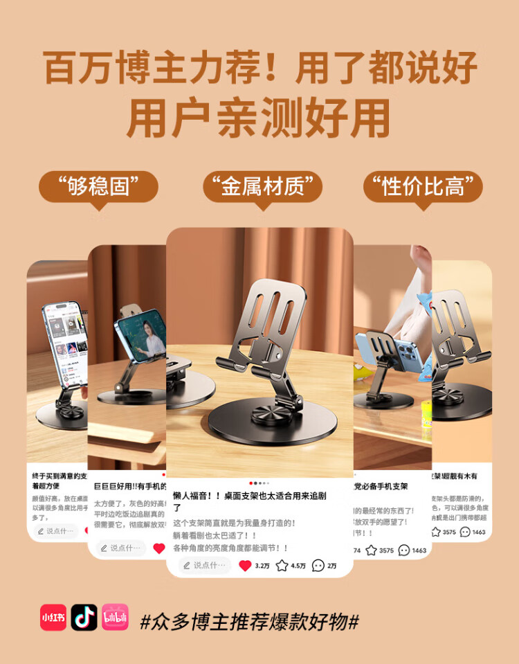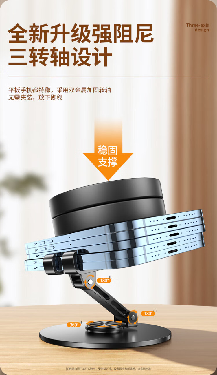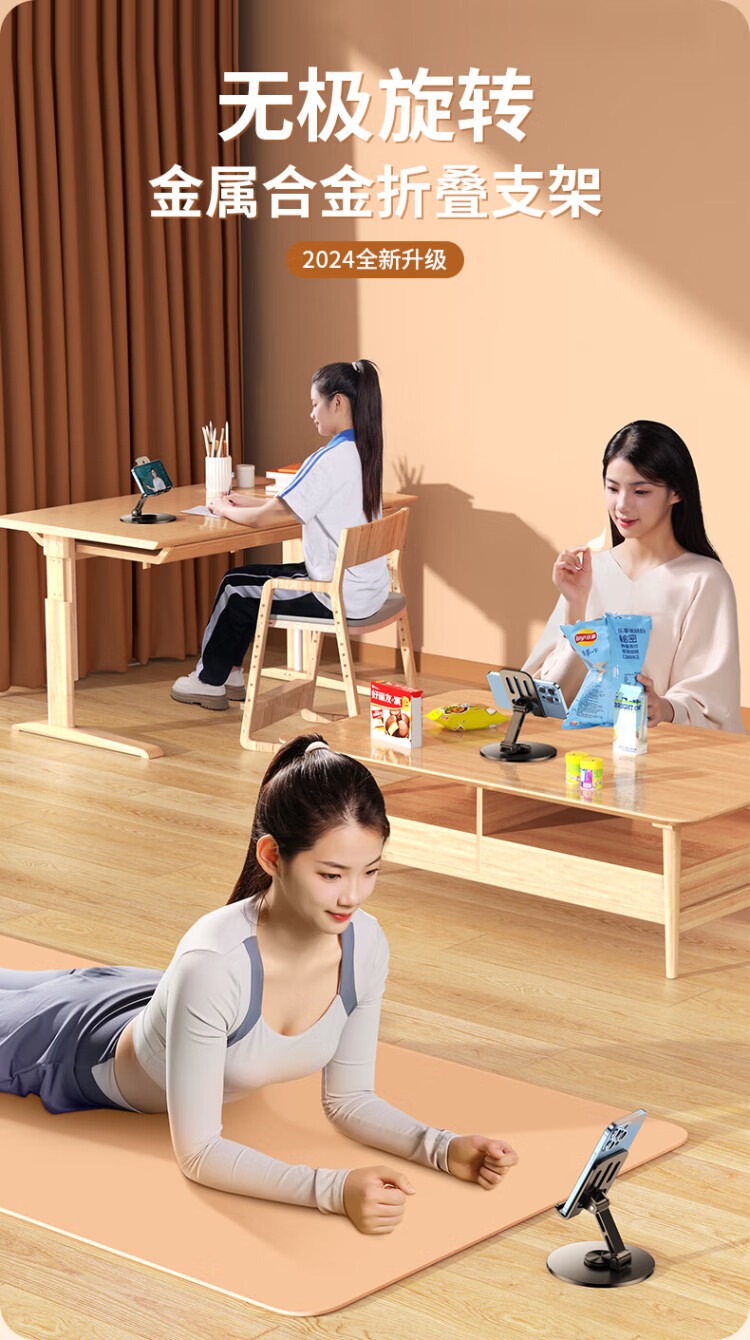 嘉华彩手机支架直播设备可调节折叠升降创意床头车载桌面懒人支架便携ipad平板支架通用支撑架子便携追剧 720°旋转支架【深枪黑丨底座加粗款】