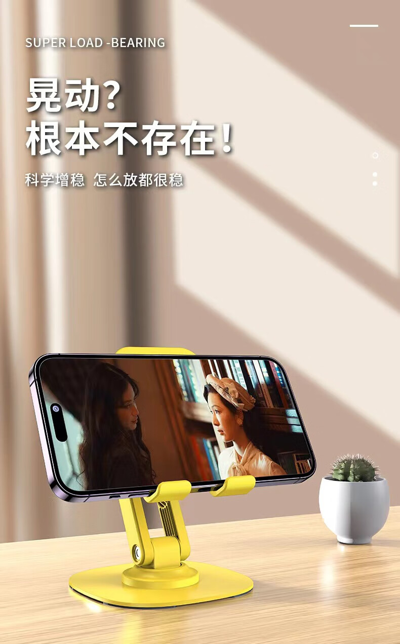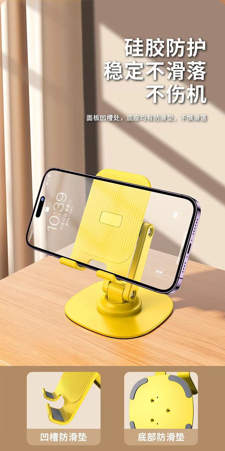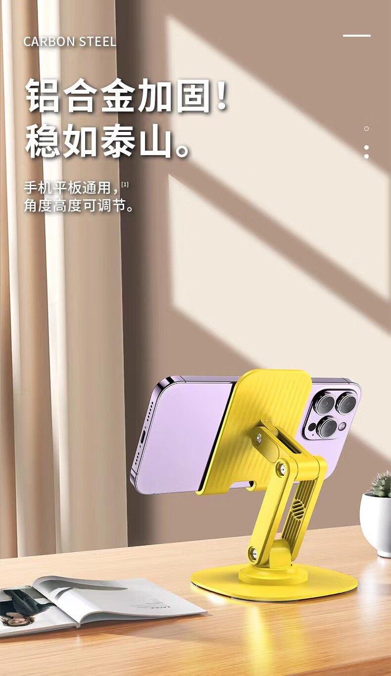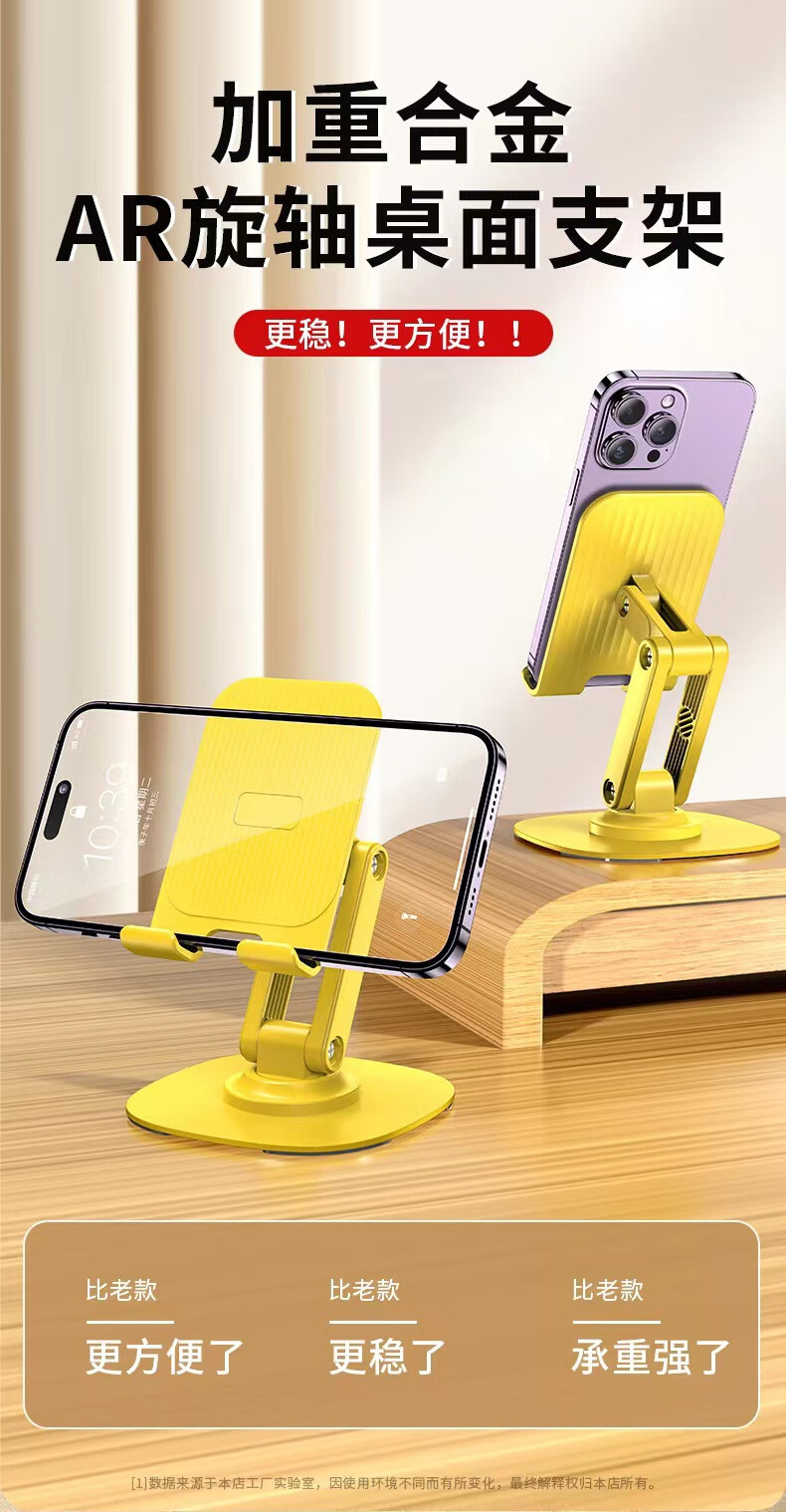 2025 Neuer Desktop-Handyständer aus Metall, 360-Grad-AR-Drehung um drei Achsen, faltbar, faul, tragbar zum Fernsehen, Heben, Aufbewahrung, verstellbar, multifunktional, Gelb