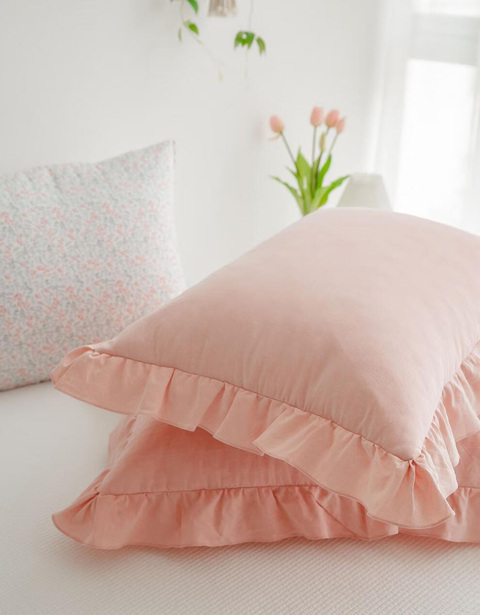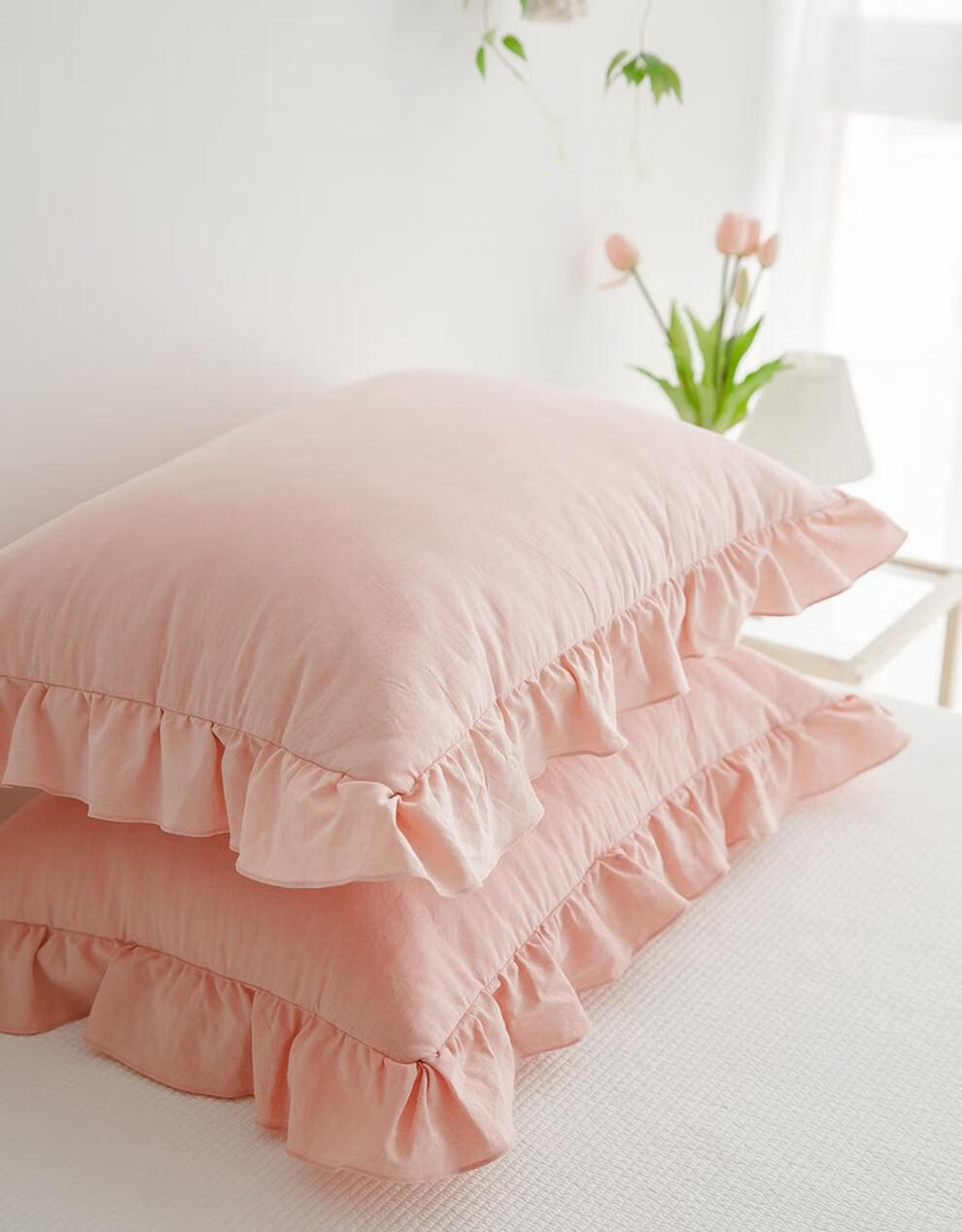 Love Garden ins simple princess ruffle pillowcase summer girl heart pillowcase one pair single white ruffle pillowcase one pair 48cmX74cm