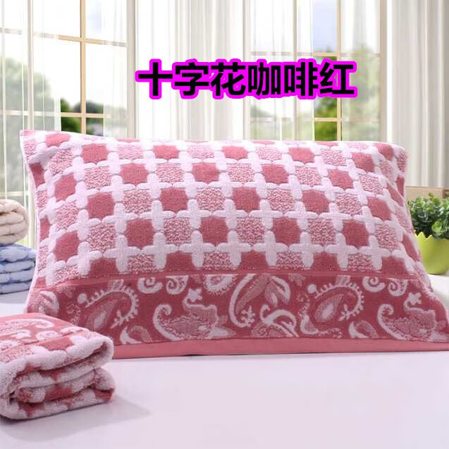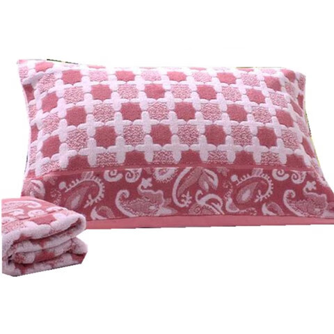 Hazun Shanghai old-fashioned jacquard pillow towel cotton pair pure cotton sweat-absorbent towel gauze pillow towel single student adult grid apple red pair