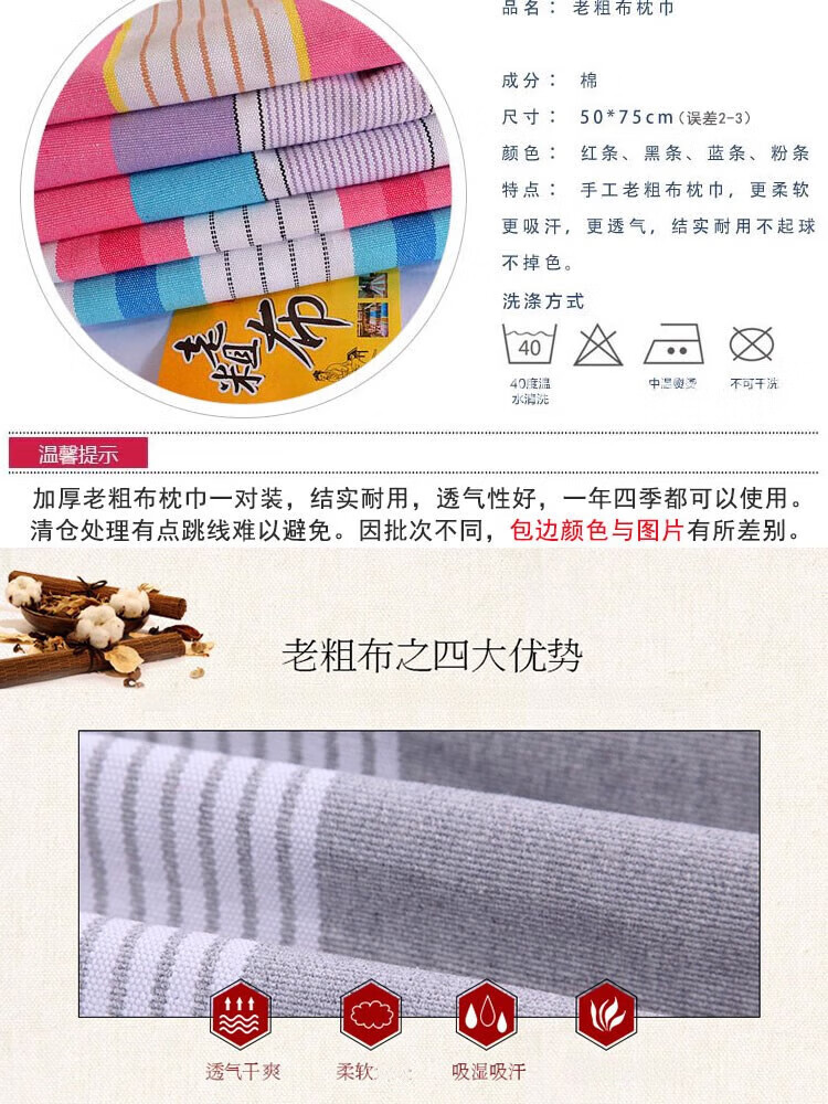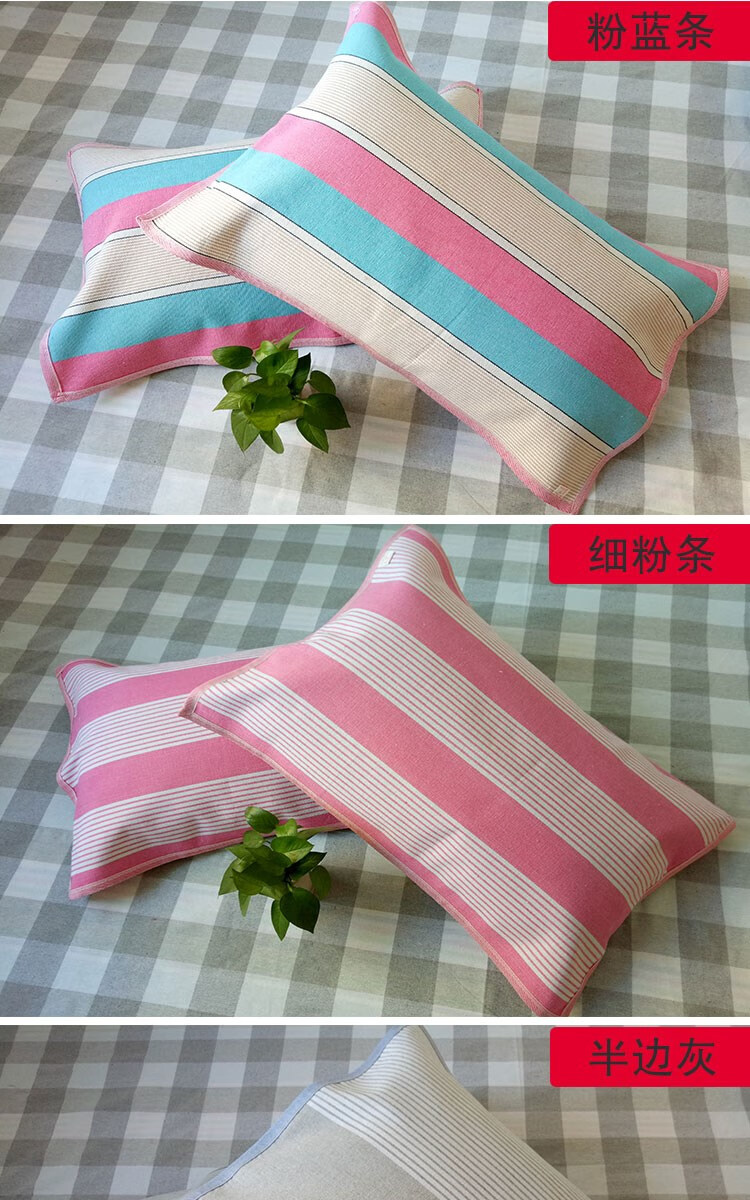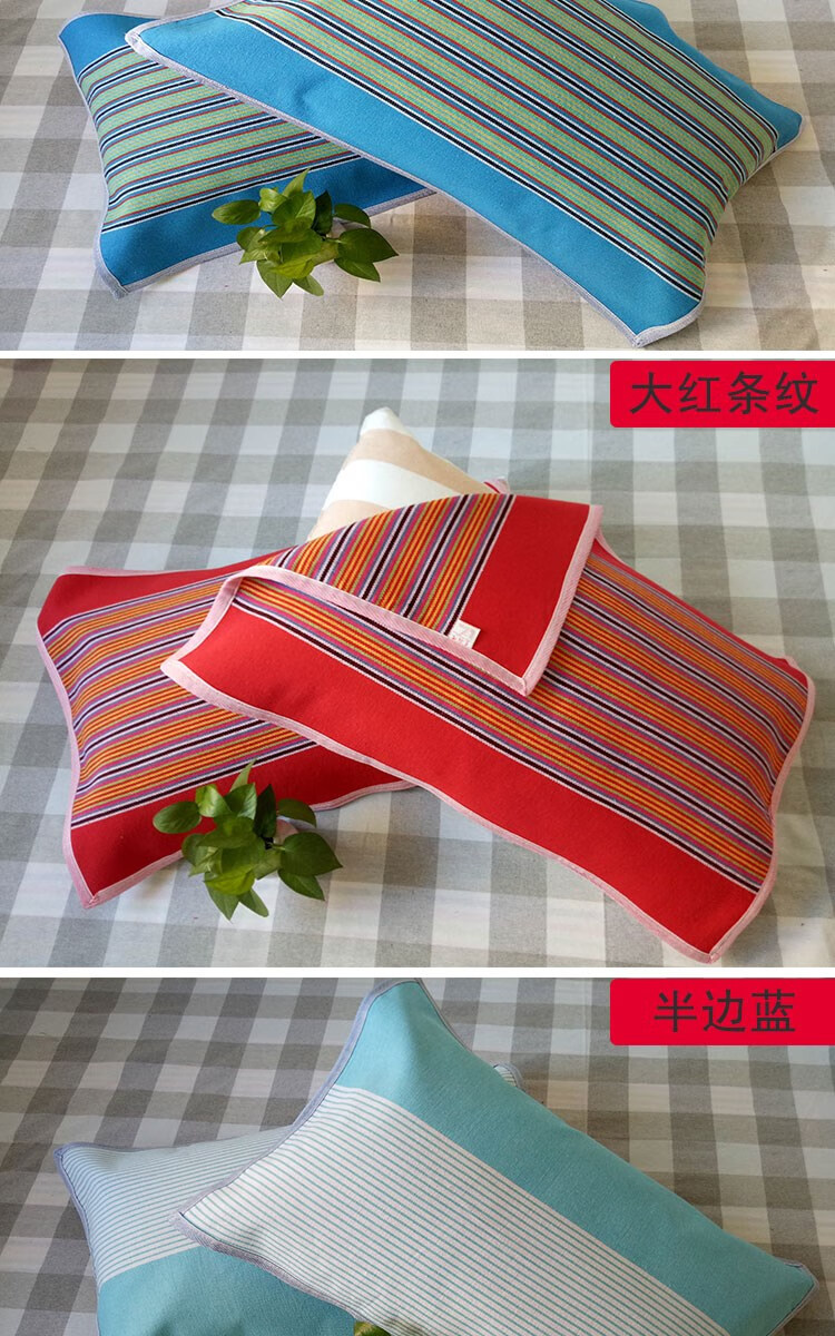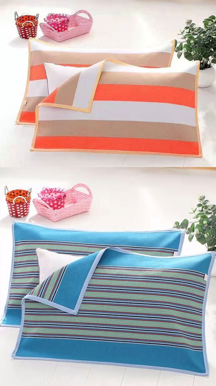 Frangomu thickened old coarse cloth pillow towel linen single encrypted pillow towel for all seasons, sweat-absorbent and breathable 47*74 pair, rose red and gray strips pair