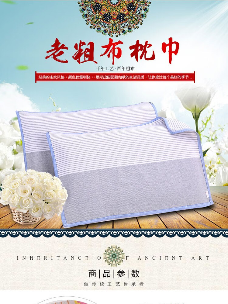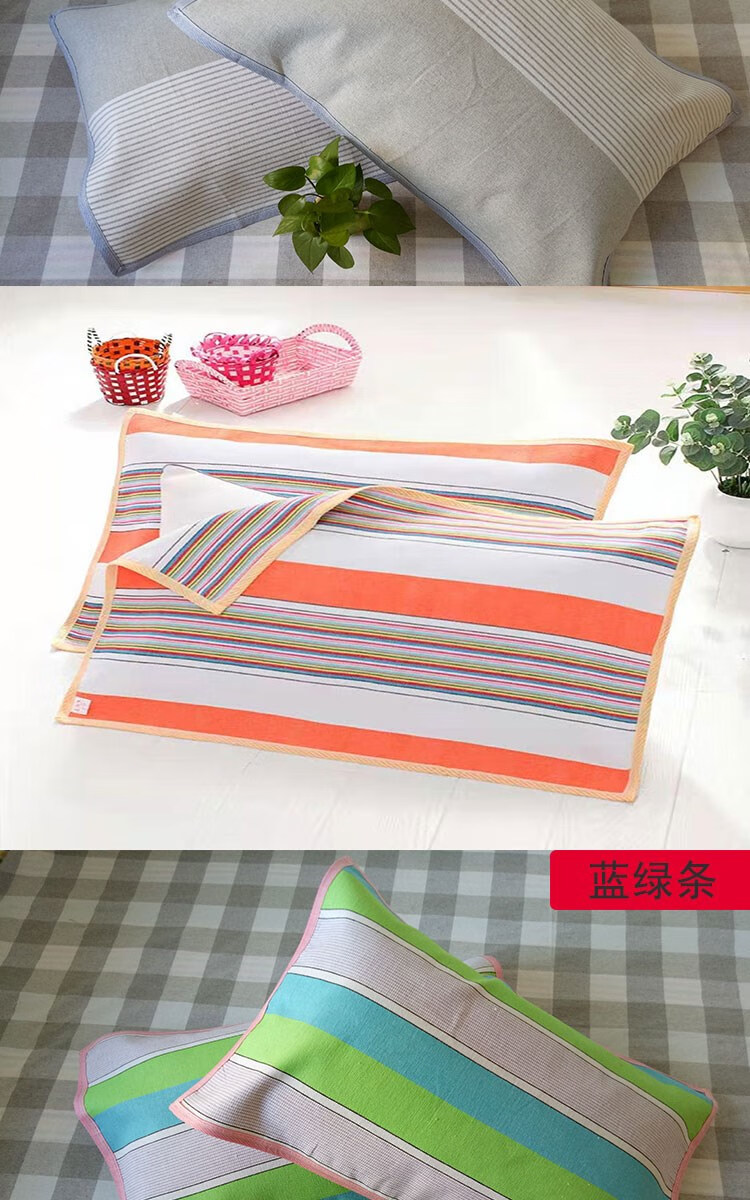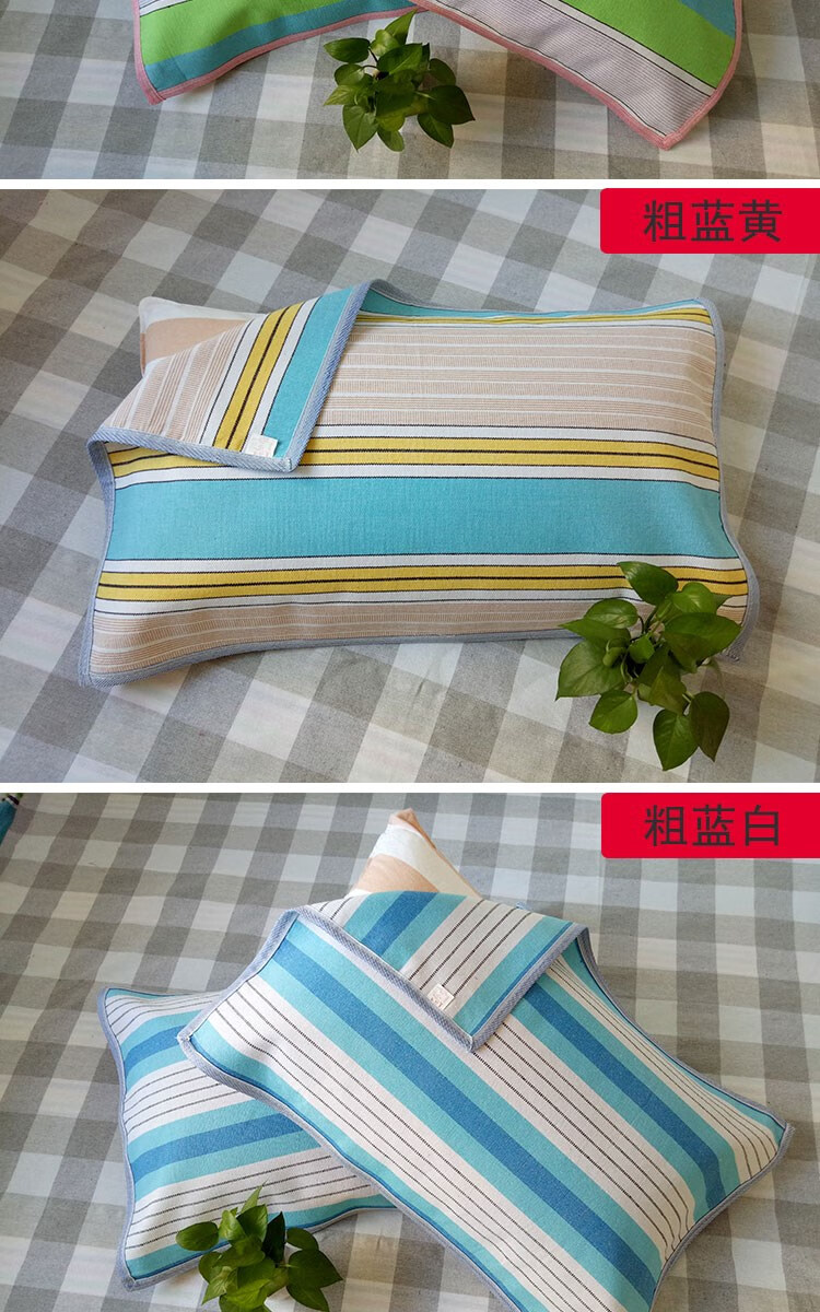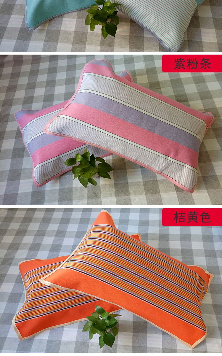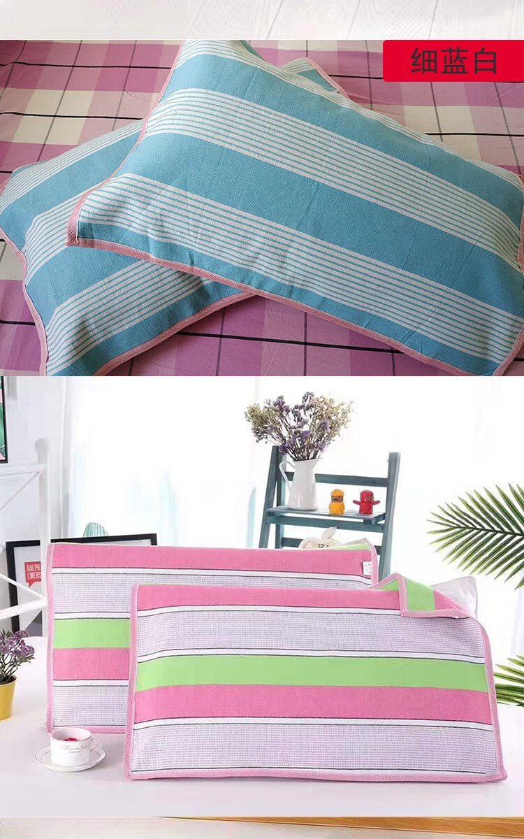 Frangomu thickened old coarse cloth pillow towel linen single encrypted pillow towel for all seasons, sweat-absorbent and breathable 47*74 pair, rose red and gray strips pair