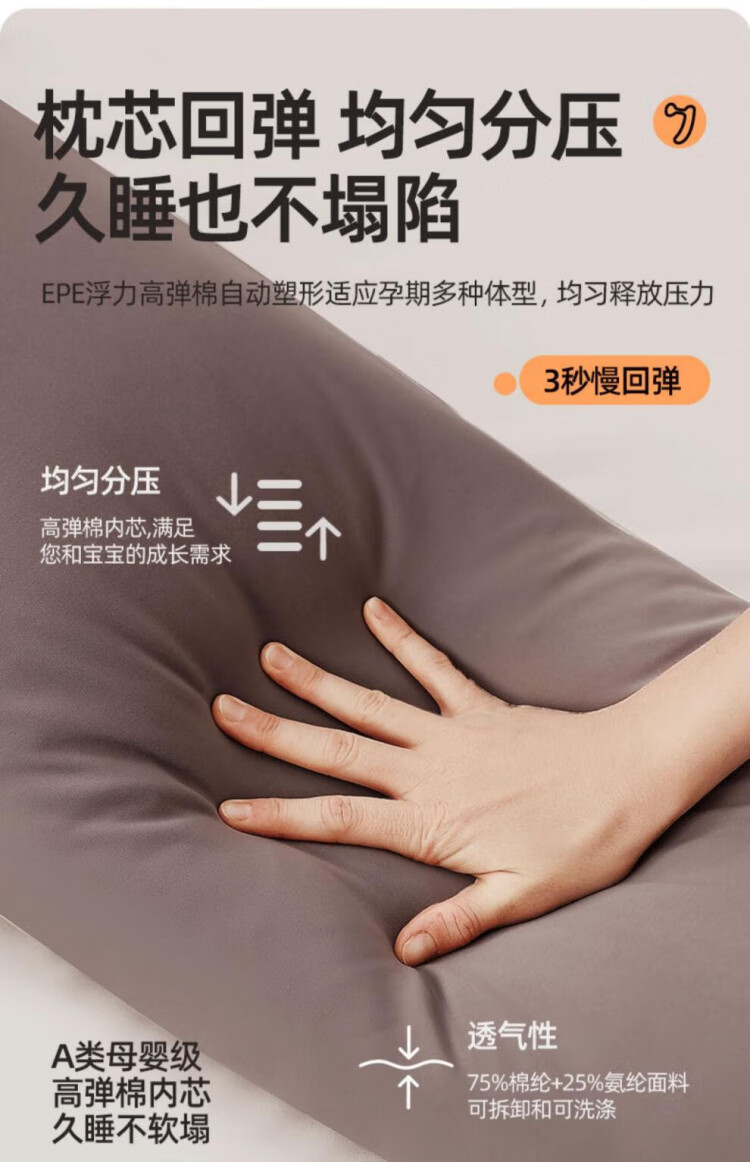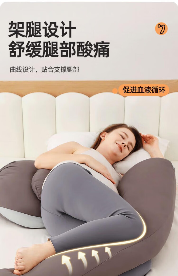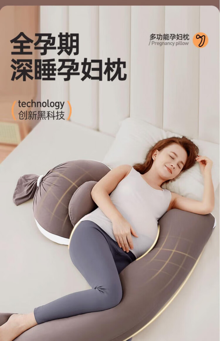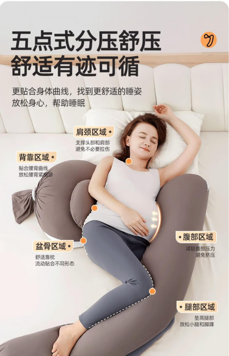 Xulin Japan Pregnancy Pillow Removable and Washable Waist Side Sleeping Pillow Special for Sleeping to Support the Abdominal Back Pillow and Clamp Legs for Full Pregnancy Rebound Dark Brown Scientific 5-Point Zones to Support the Abdomen without Hanging