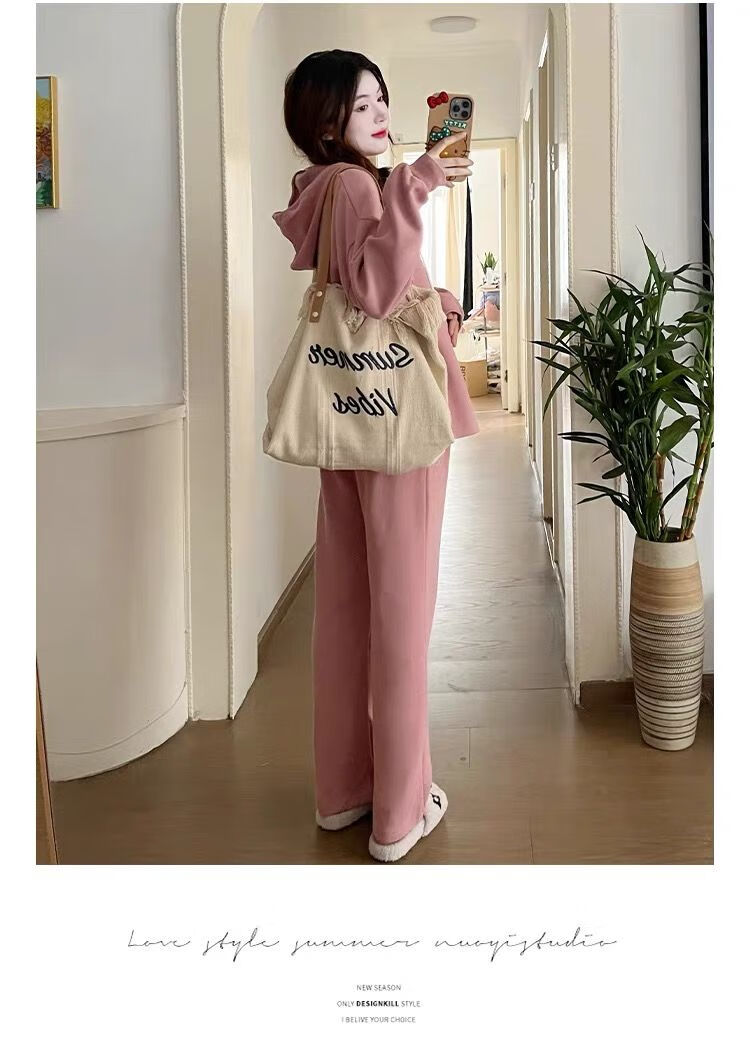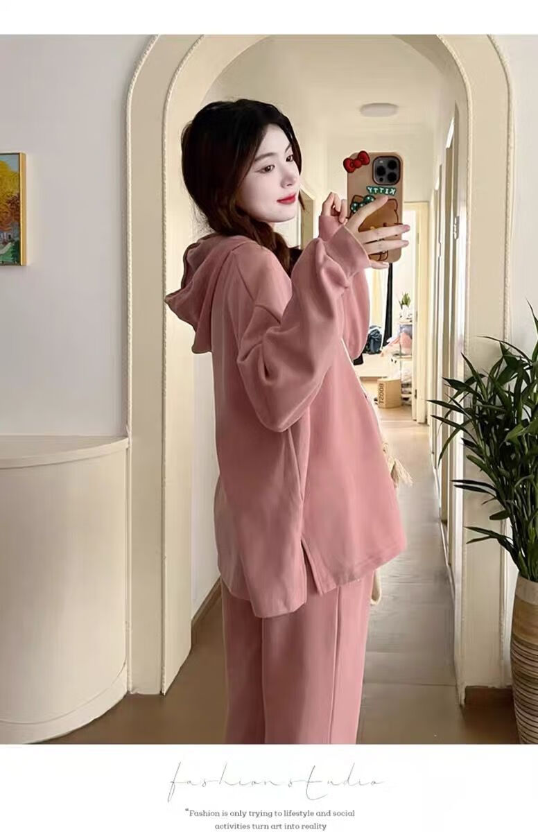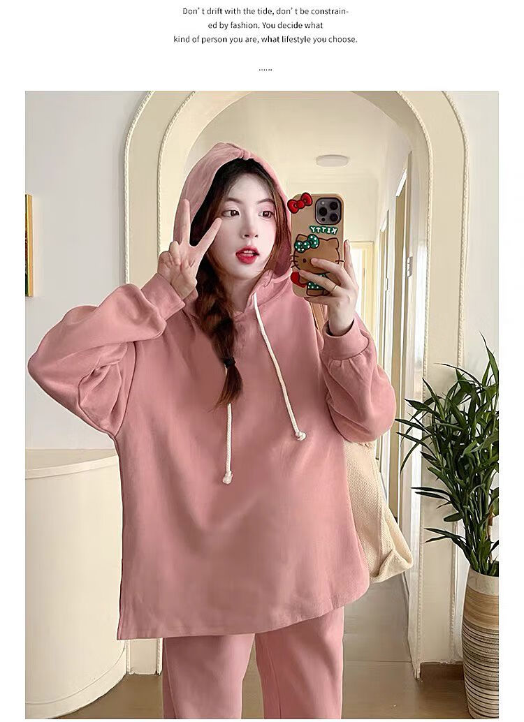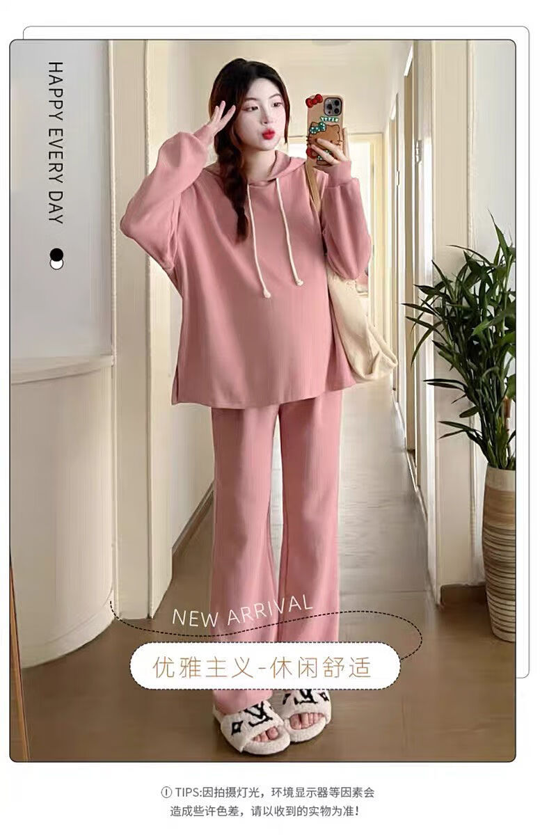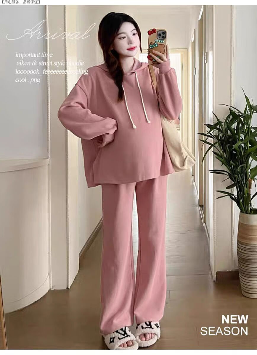 Autumn suit for pregnant women, Korean style loose long-sleeved hooded sweatshirt, fashionable and foreign-style outer wear tummy-supporting pants, hot mom complete set, gray suit XL 120-140Jin Jin equals 0.5 kg