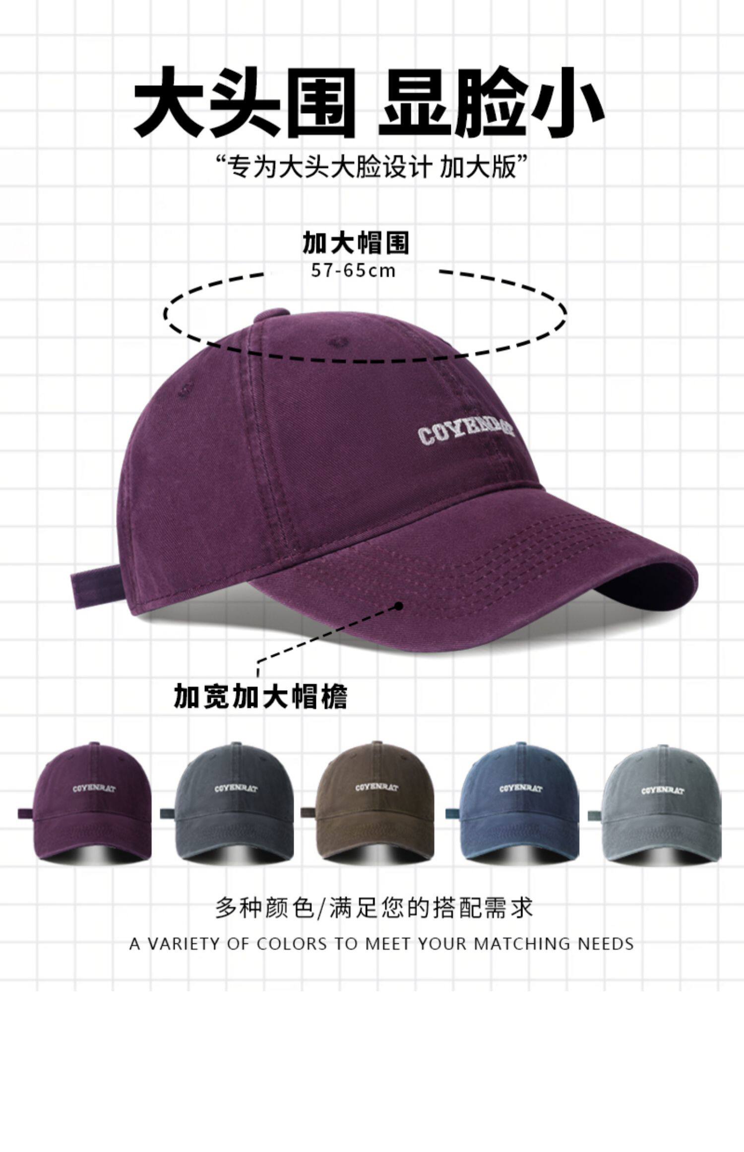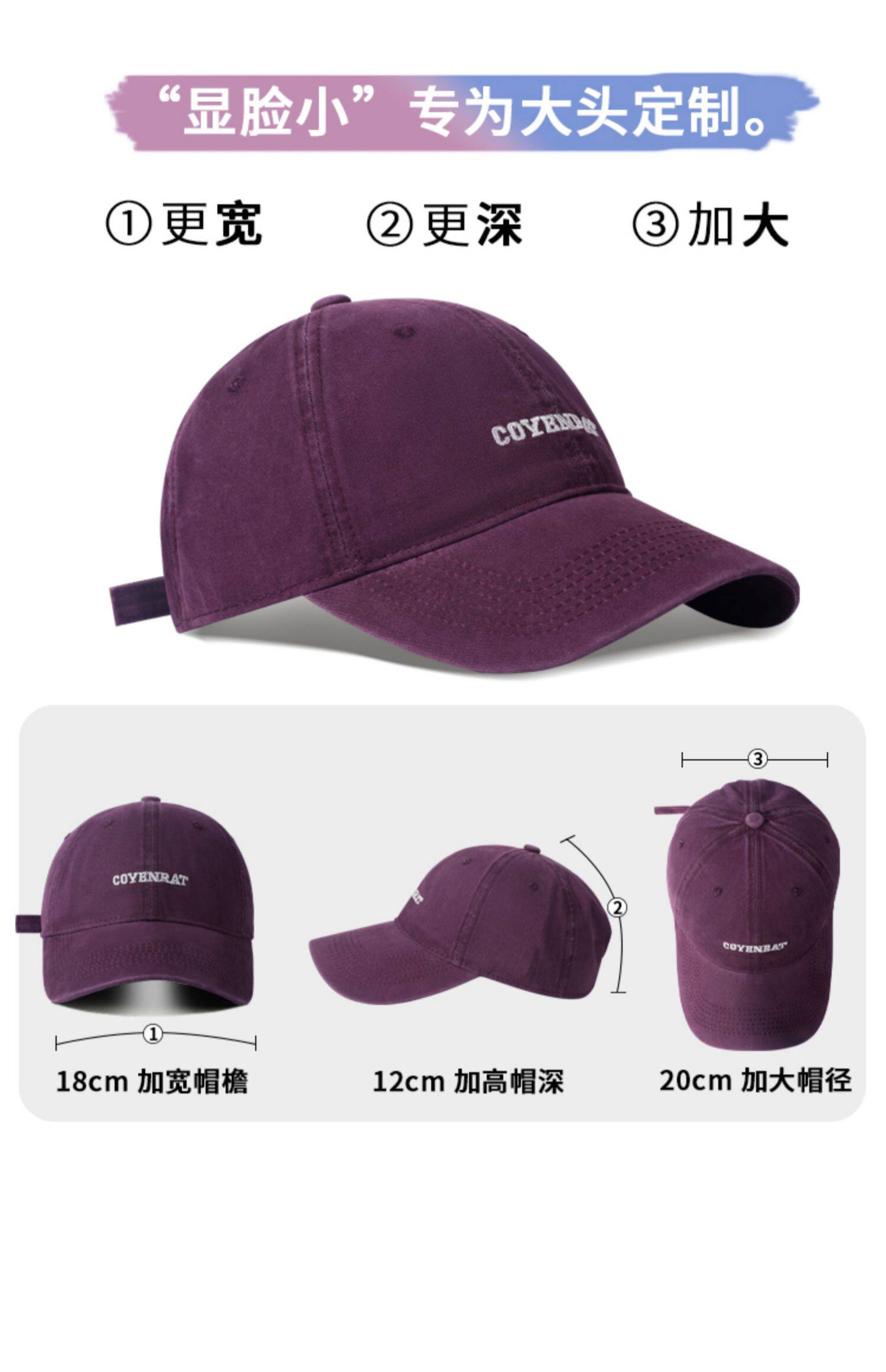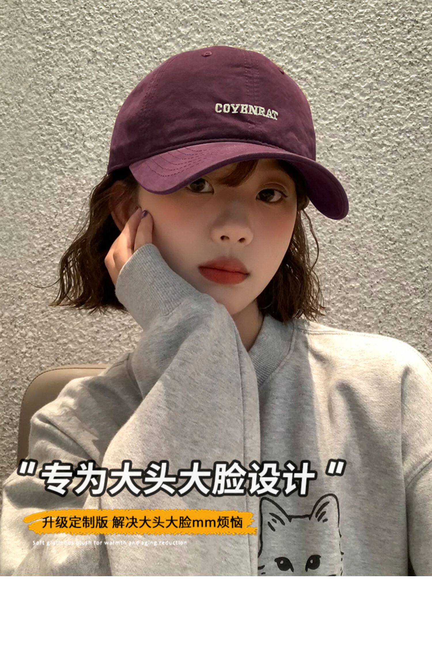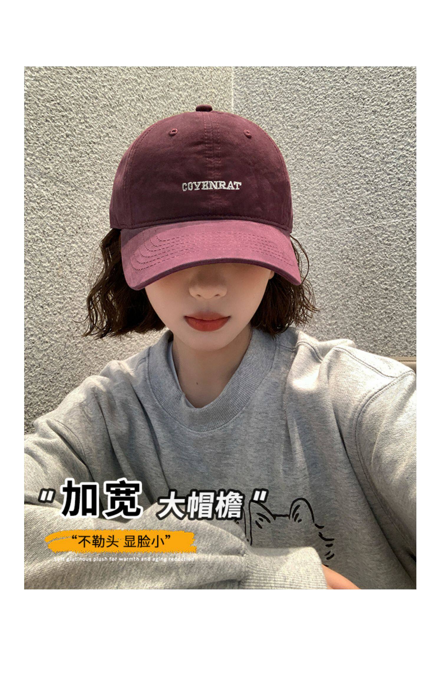Mqvq Purple Baseball Cap for Women, Spring and Autumn Korean Style Versatile Large Head Circumference, Face-Slimming Wide Brim Lettered Baseball Cap for Men