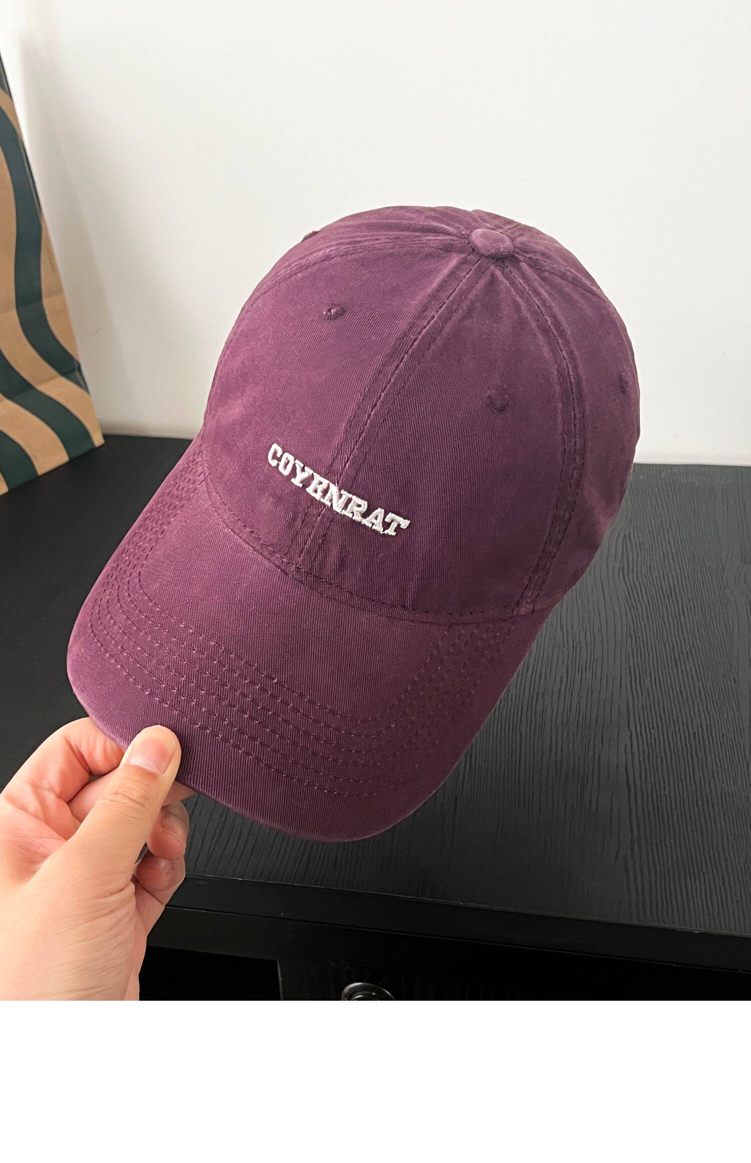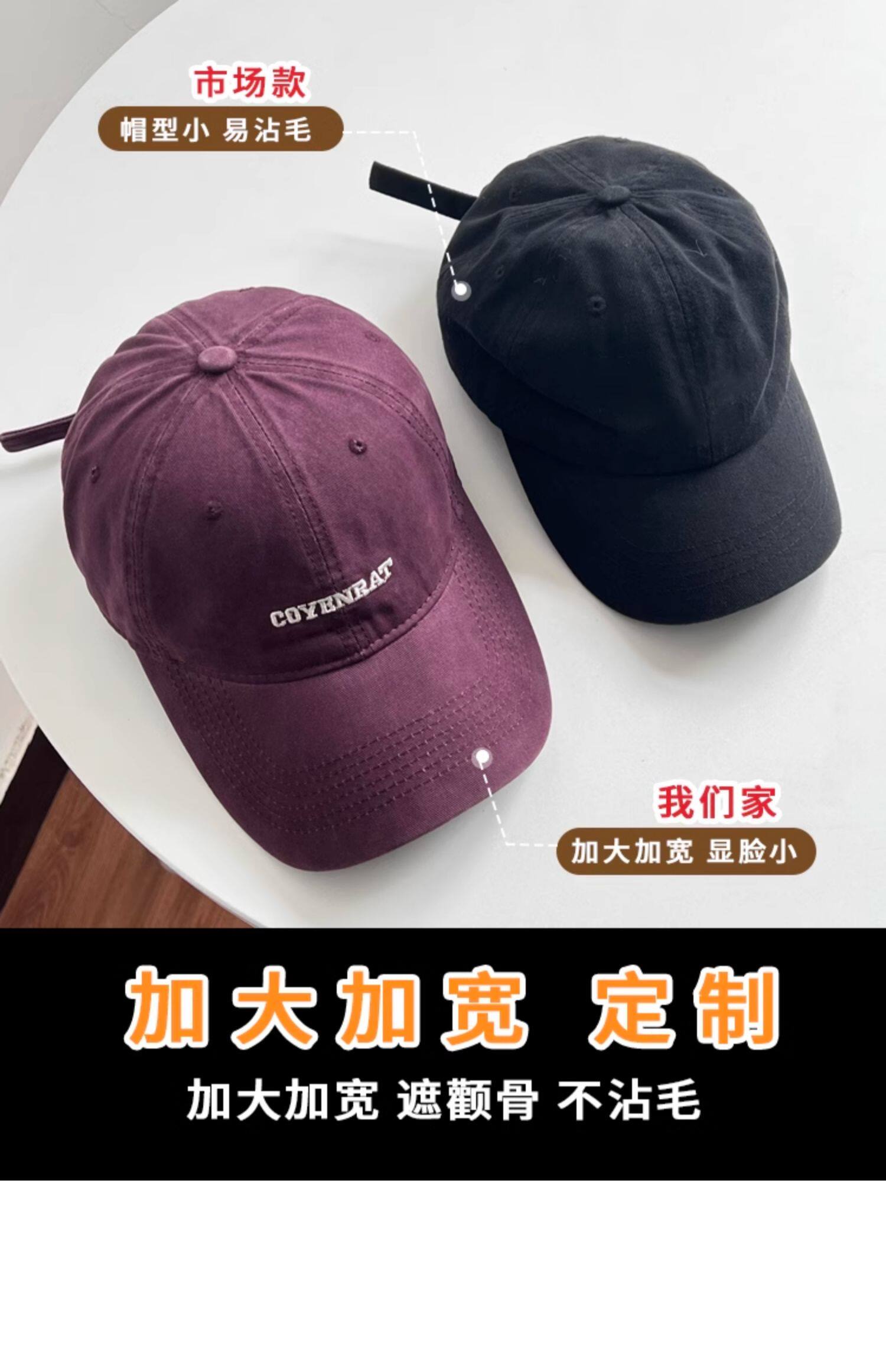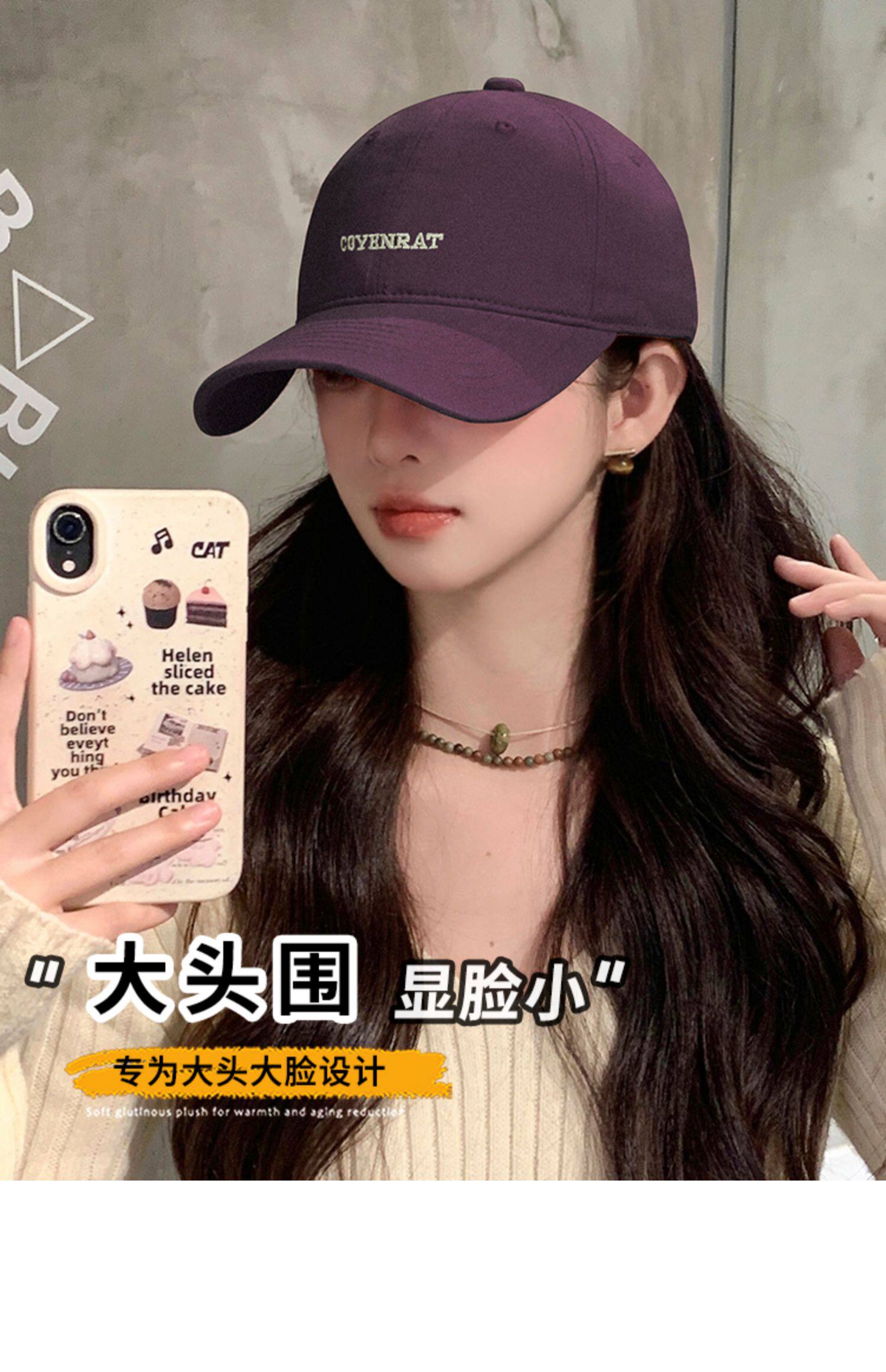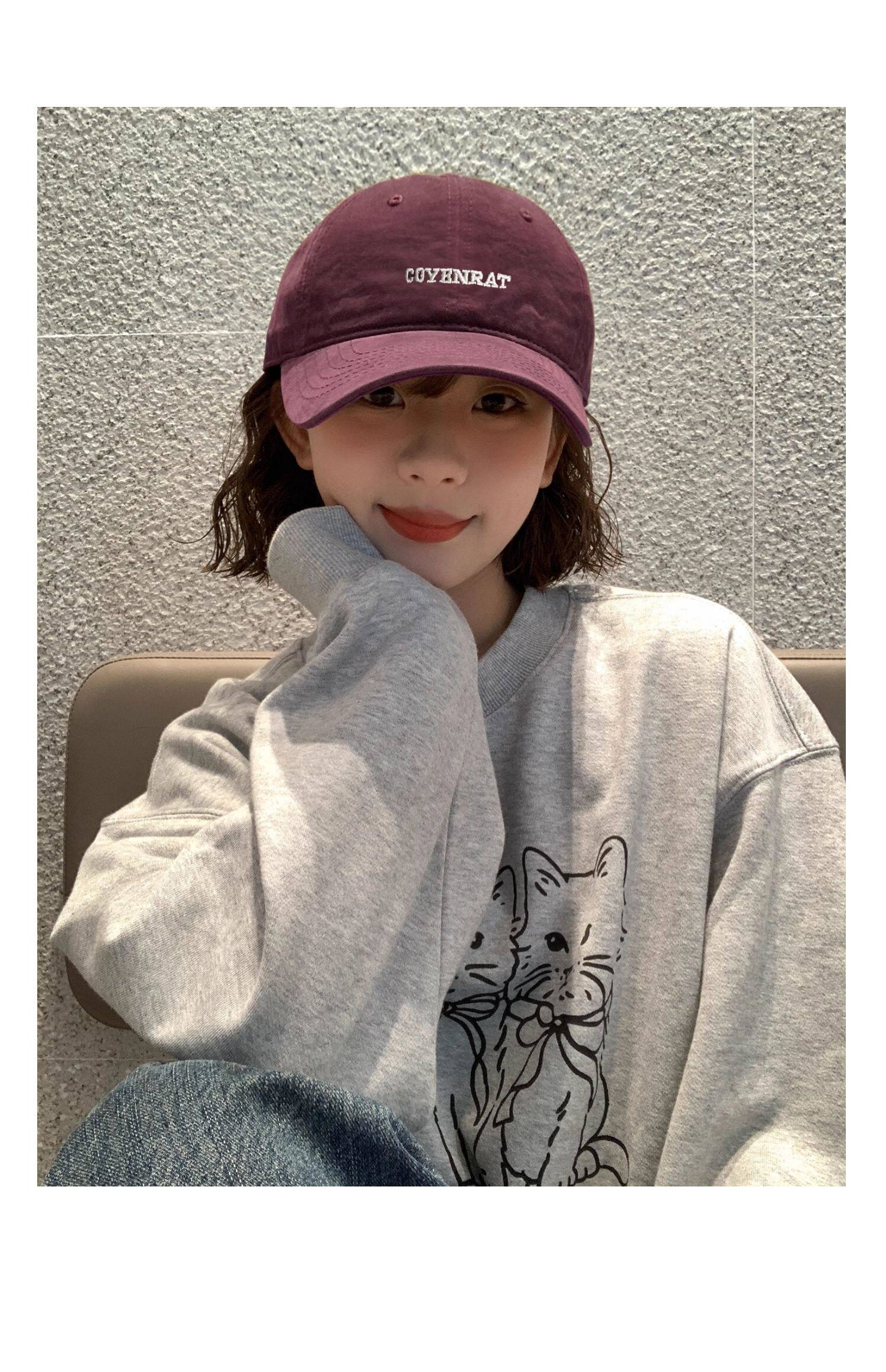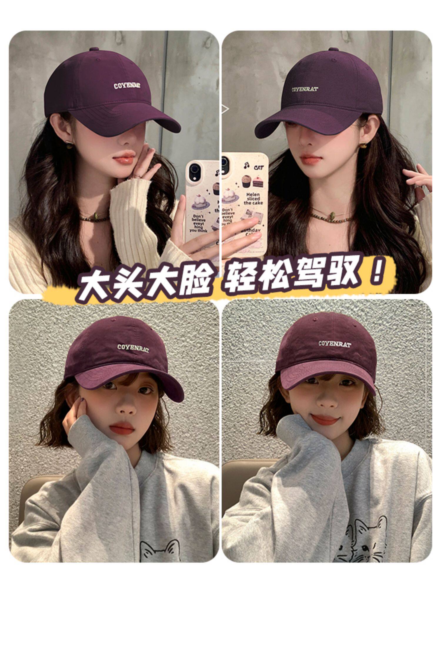 Mqvq Purple Baseball Cap for Women, Spring and Autumn Korean Style Versatile Large Head Circumference, Face-Slimming Wide Brim Lettered Baseball Cap for Men