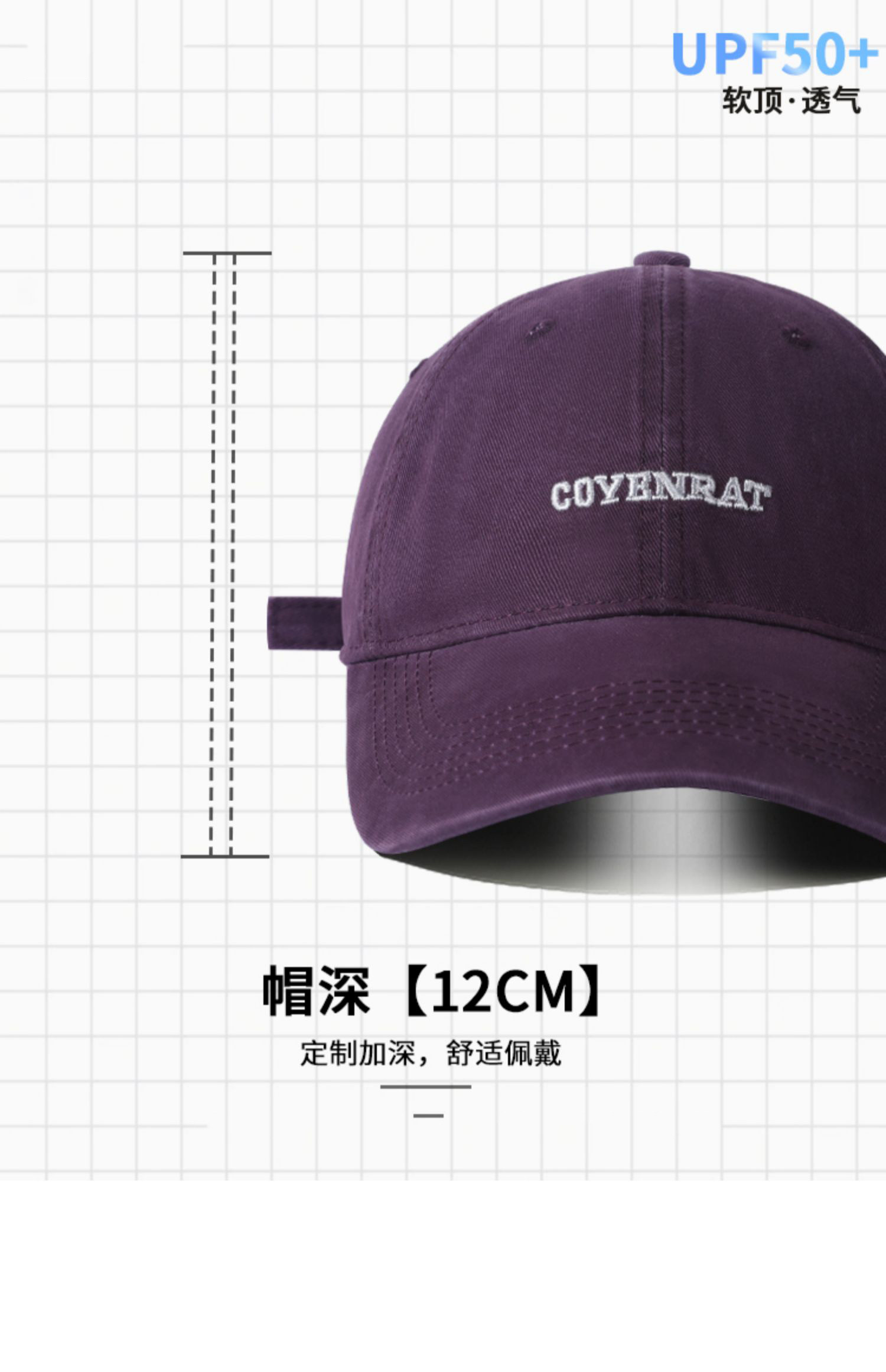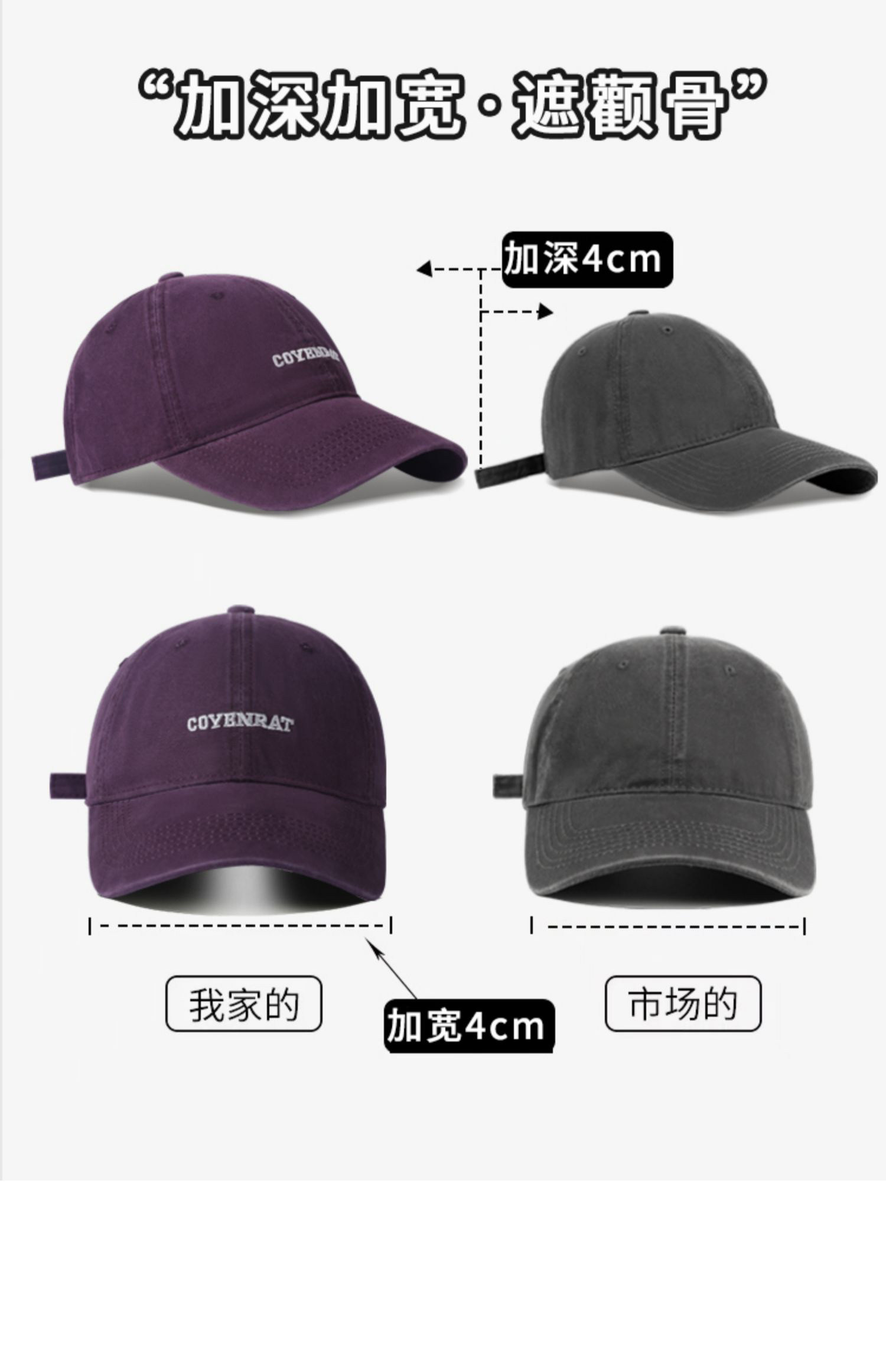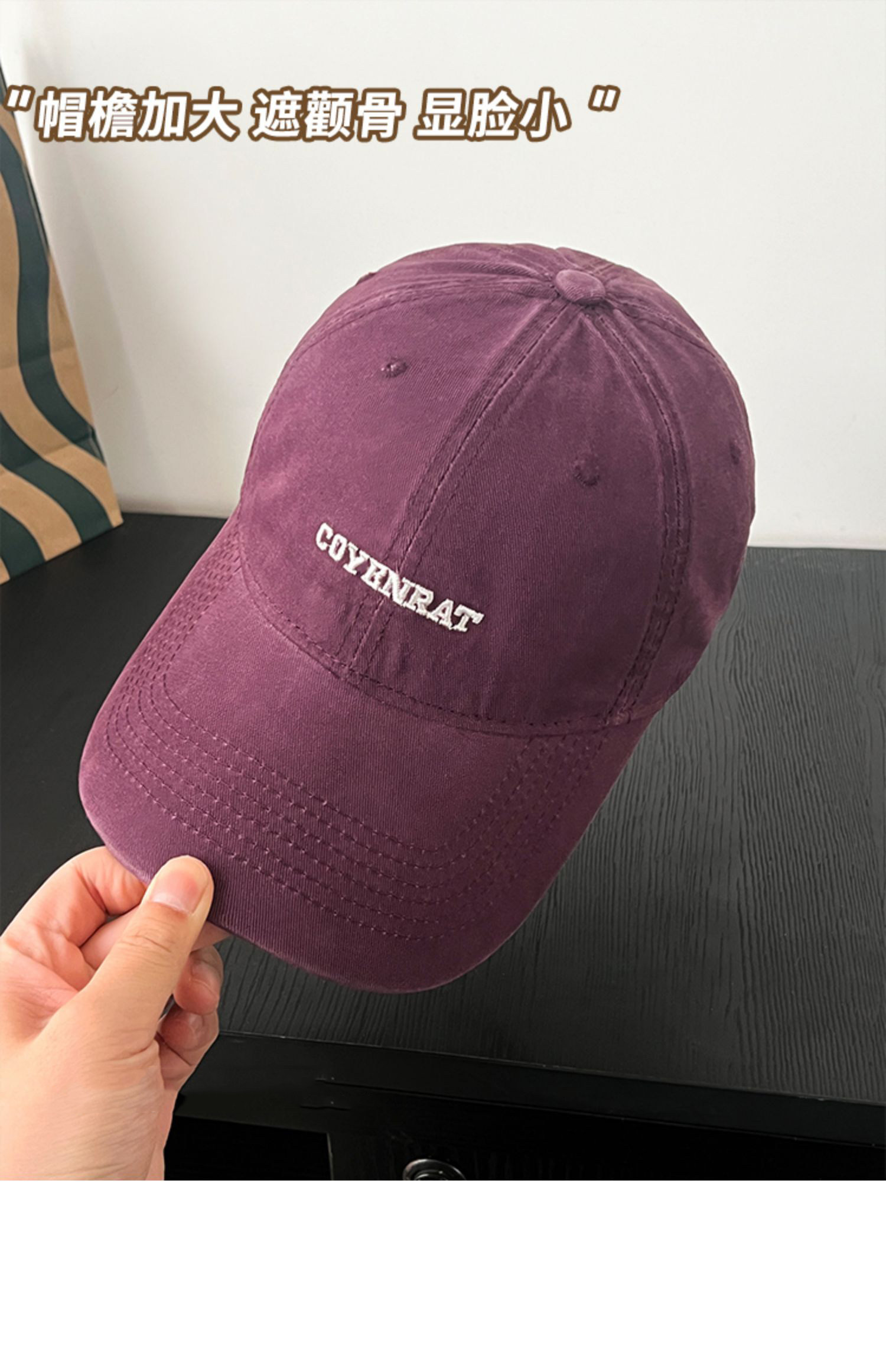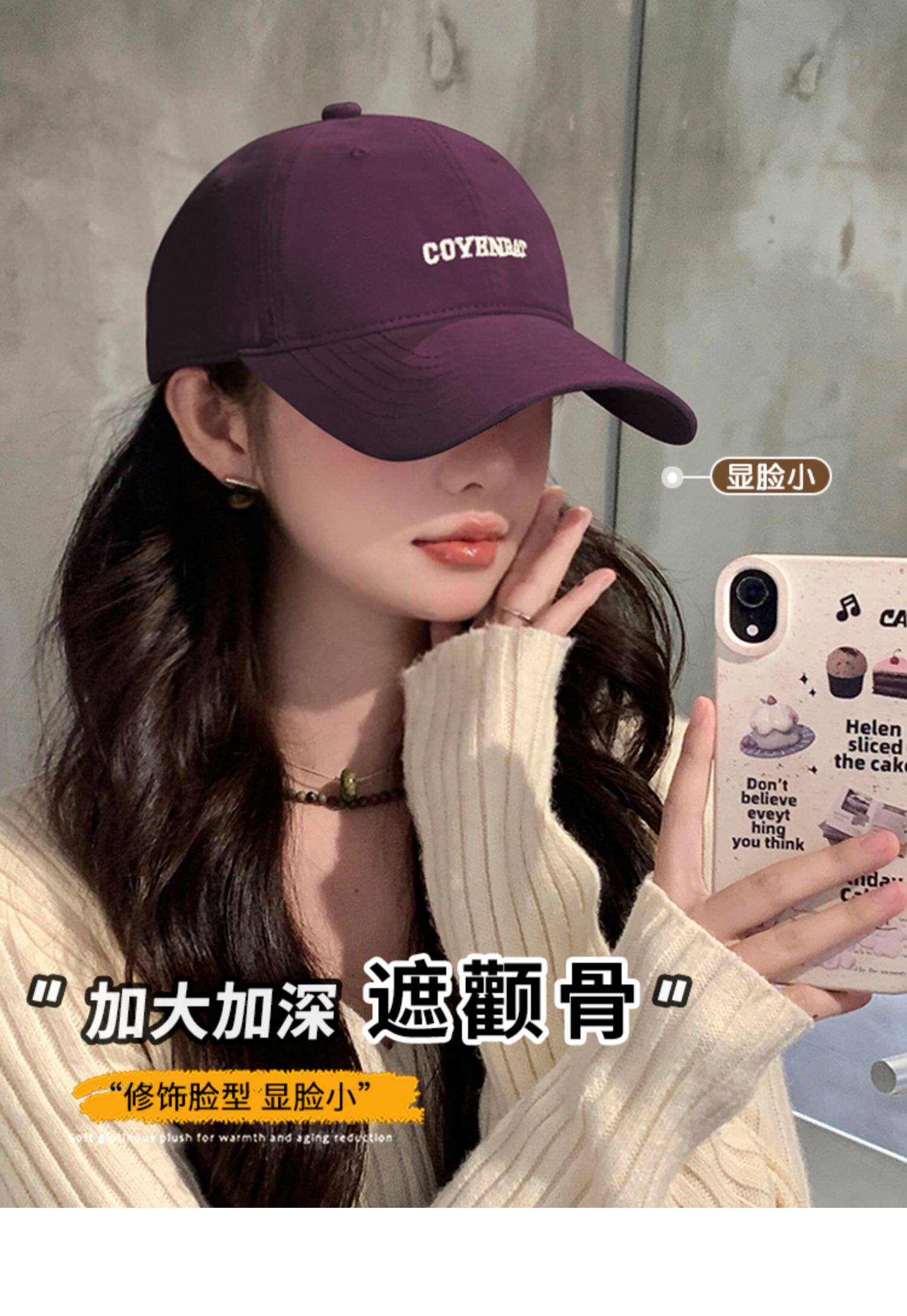 Mqvq Purple Baseball Cap for Women, Spring and Autumn Korean Style Versatile Large Head Circumference, Face-Slimming Wide Brim Lettered Baseball Cap for Men