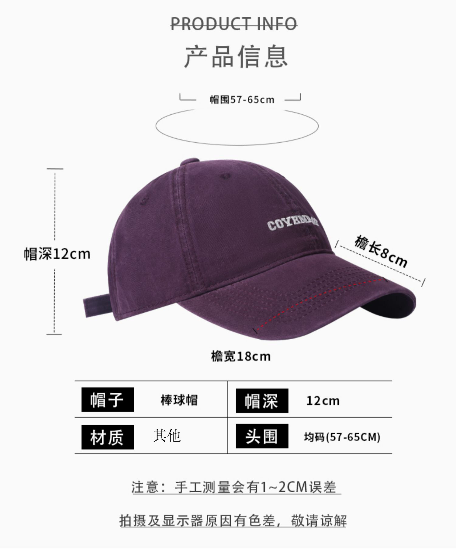 Item Number Plum Purple Baseball Cap