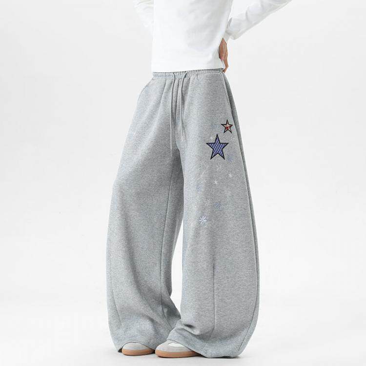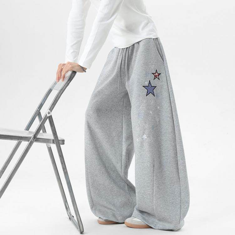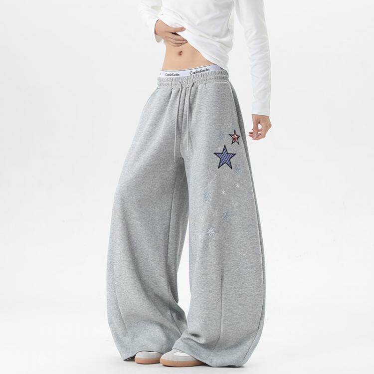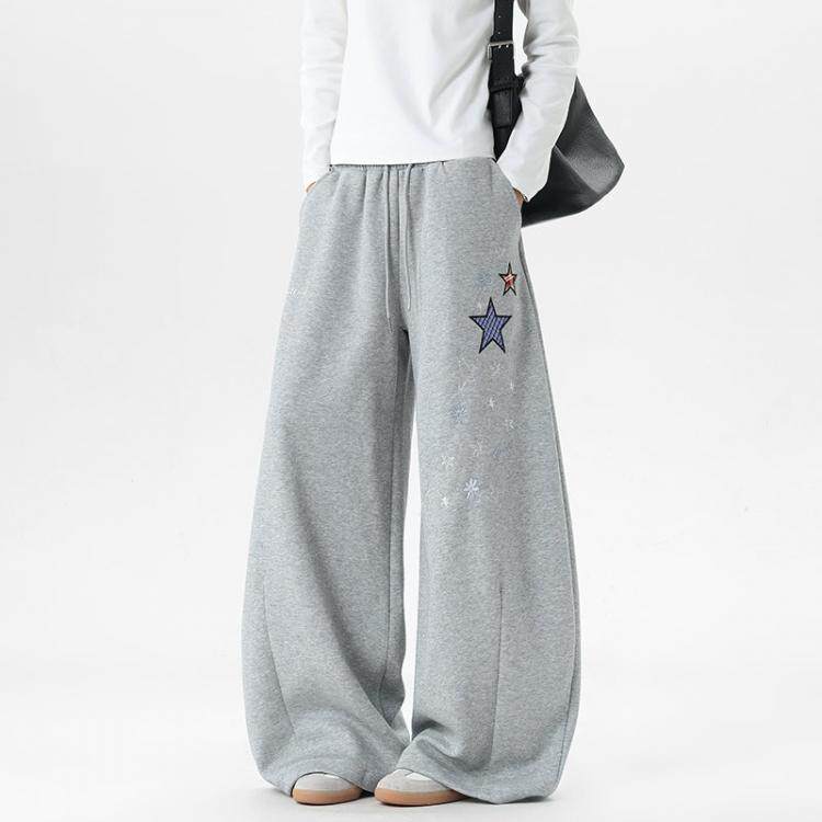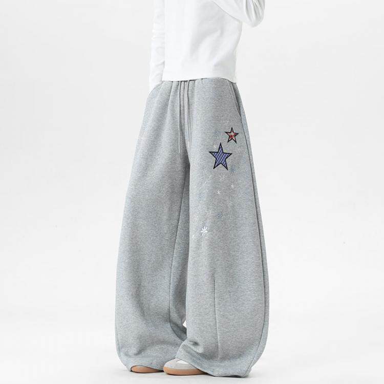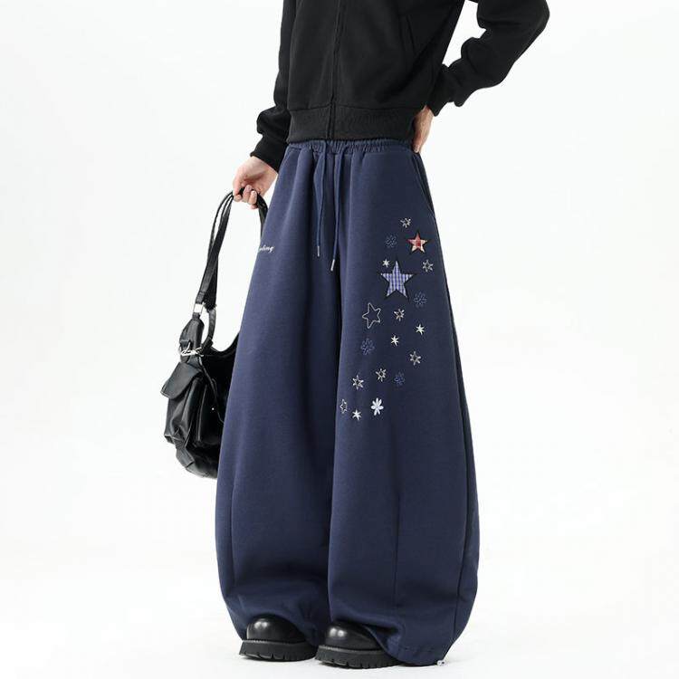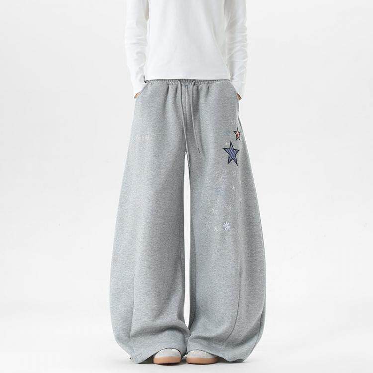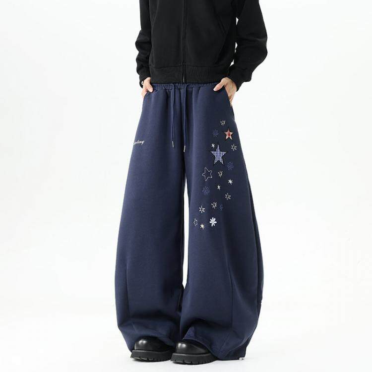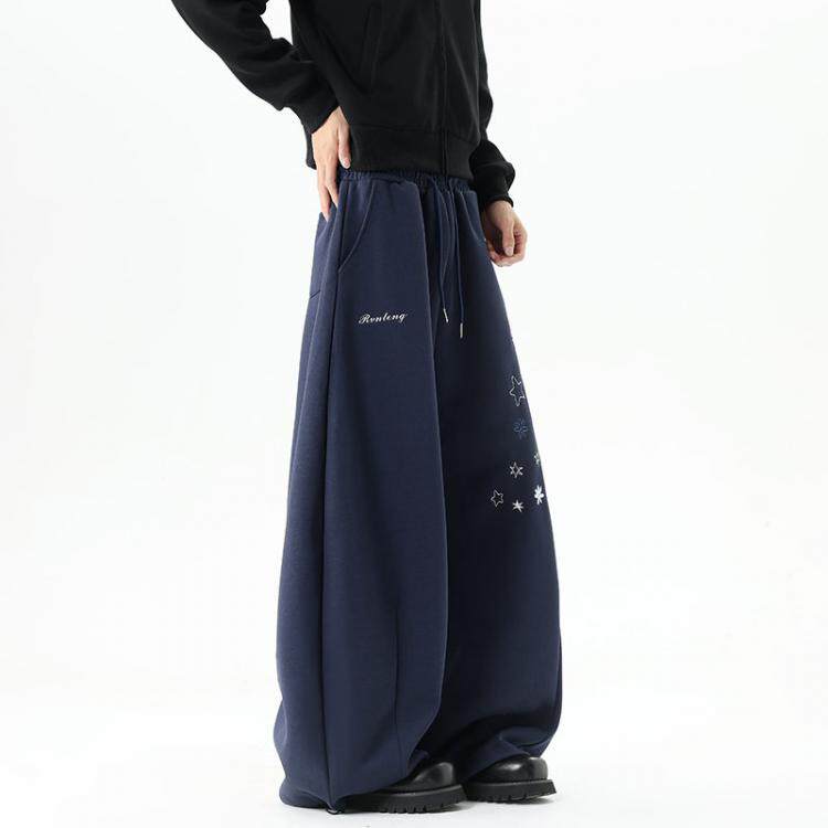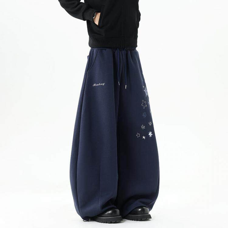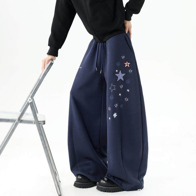 American high street star embroidered sweatpants men's winter draped lazy relaxed scimitar wide-leg pants design long pants