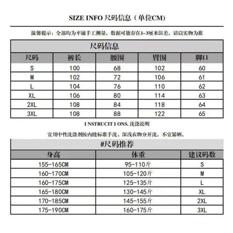 Outseam (cm) 99 cm 101.5 cm 104 cm 106.5 cm 109 cm