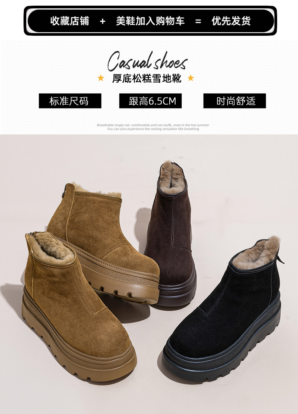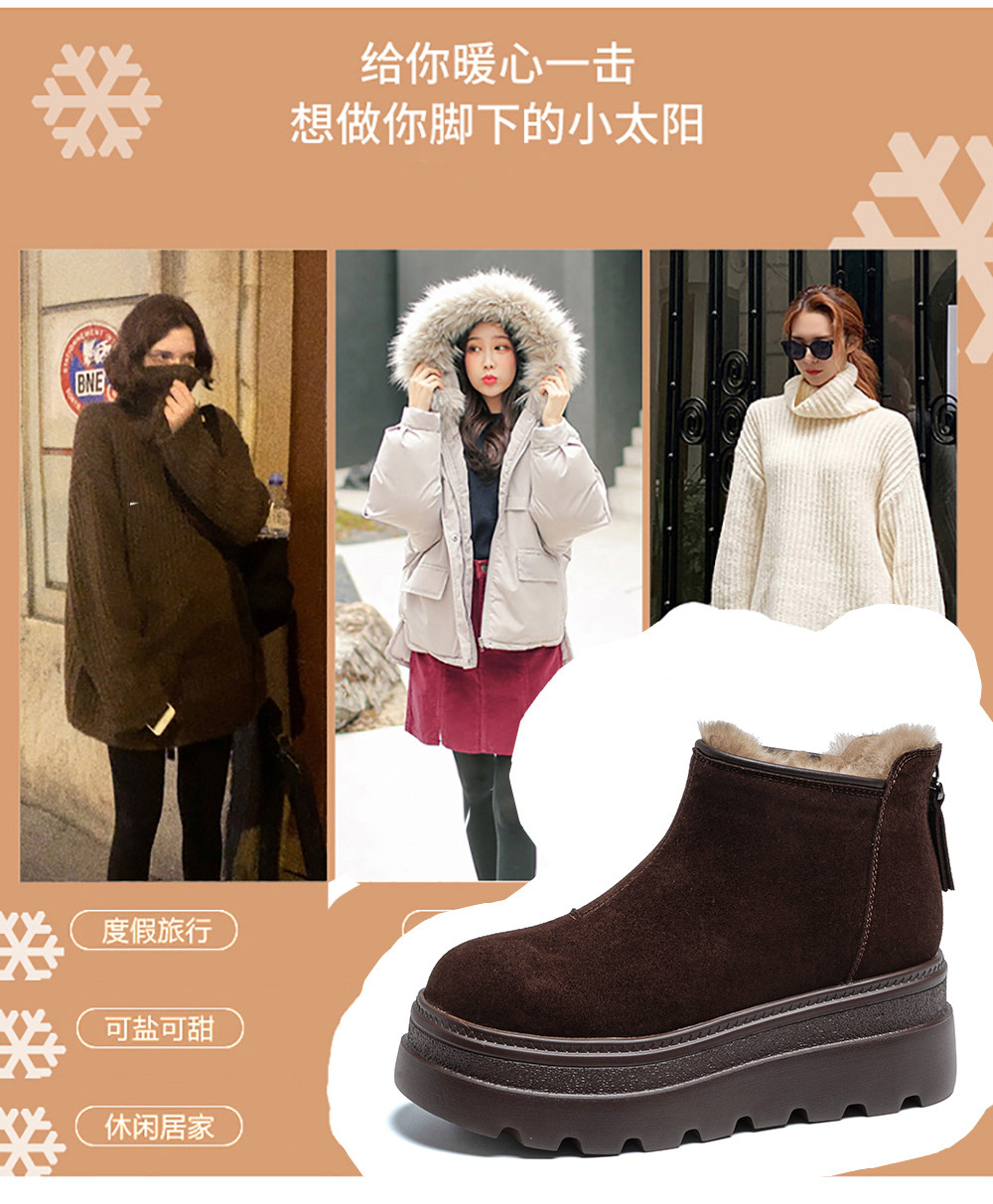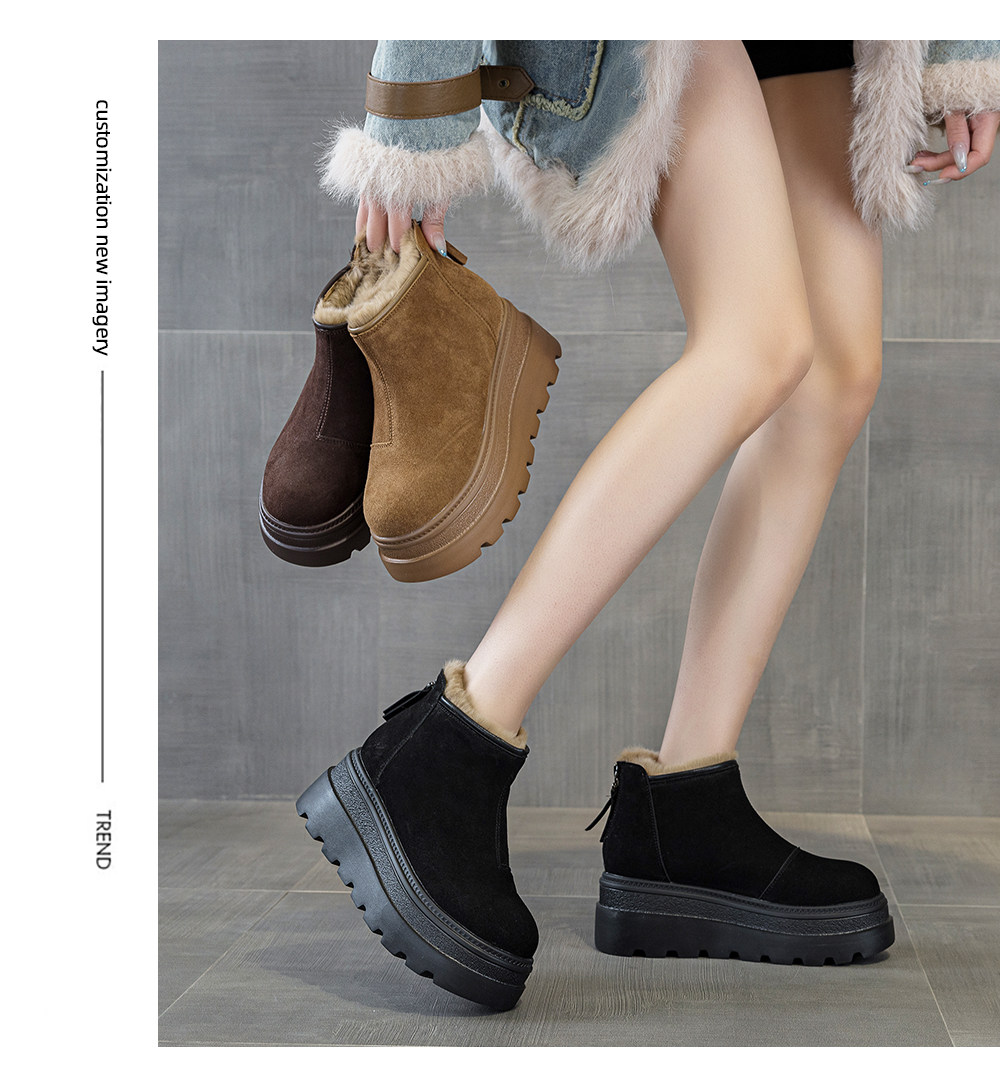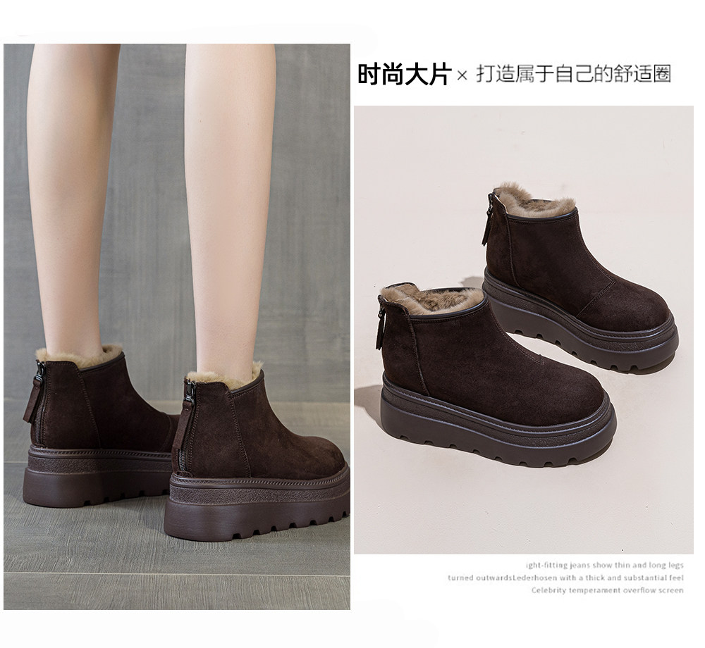 Thick-Soled Snow Boots for Women, 2025 New Winter Style, Fleece-Lined and Thickened Boots, Warm Short Boots with Back Zipper, High-Top Cotton Shoes