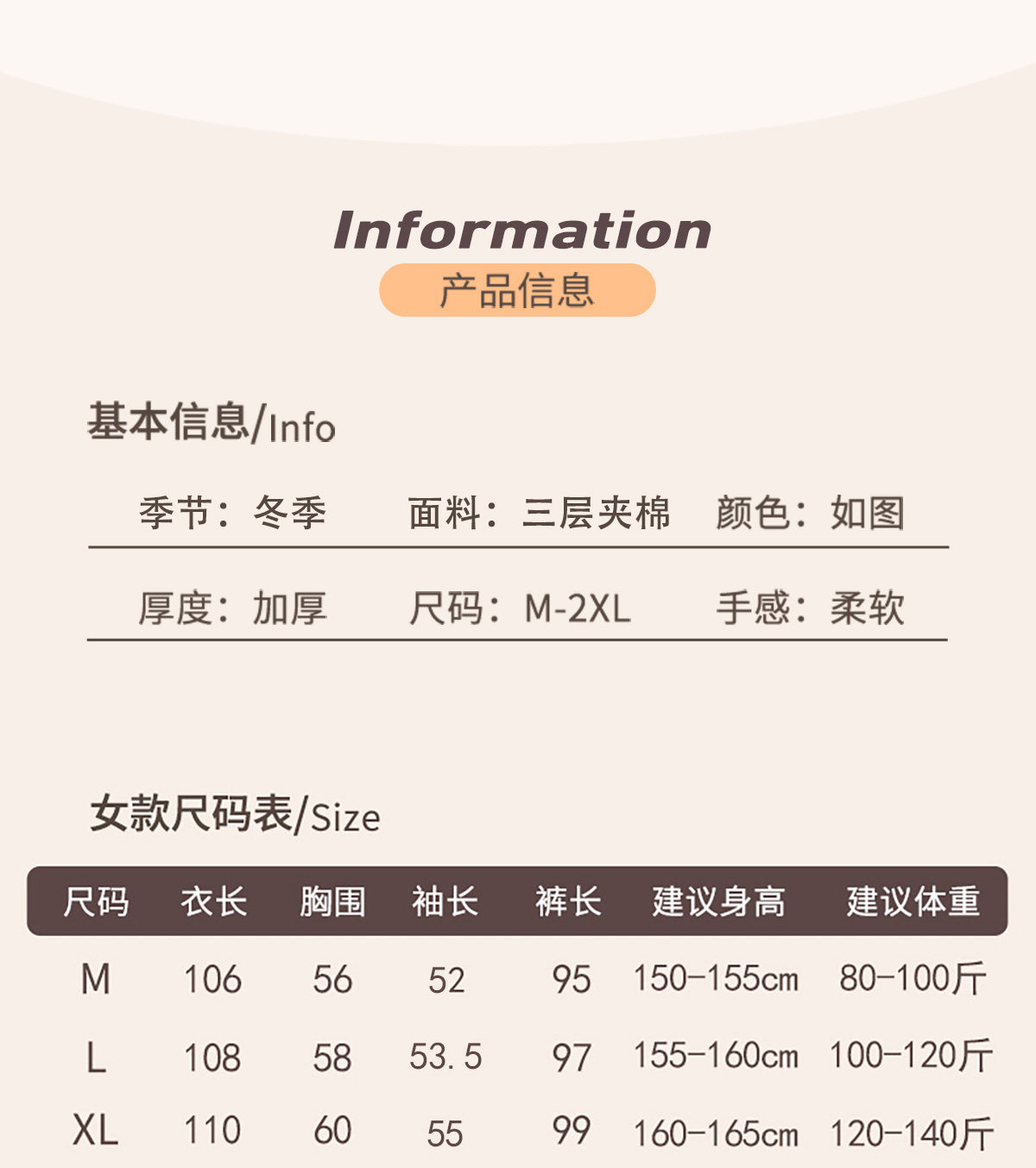 China (cm) 160-165/84-86 165-170 / 88-90 167-172 / 92-96 168-173 / 98-102 170-176 / 106-110
