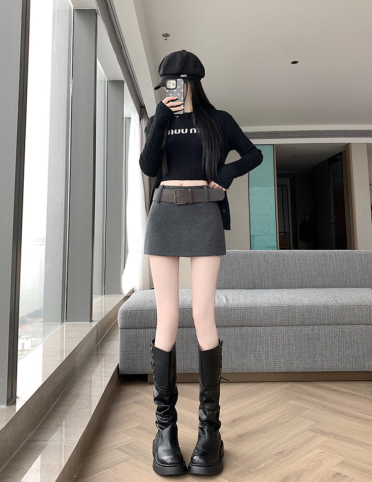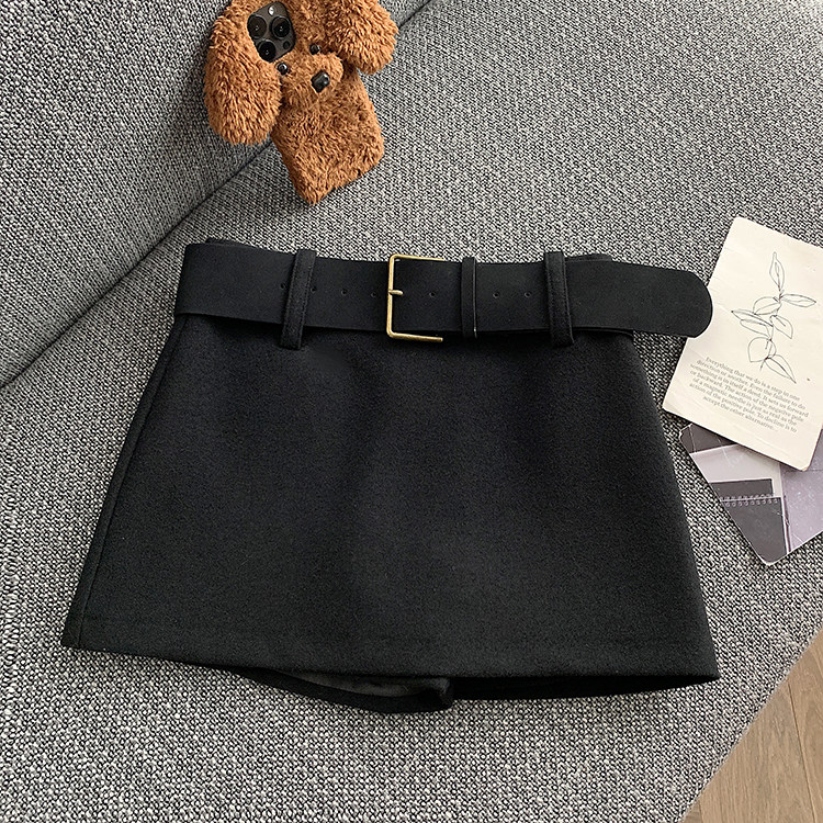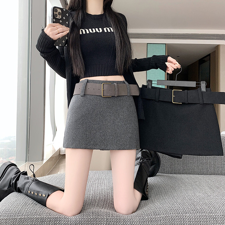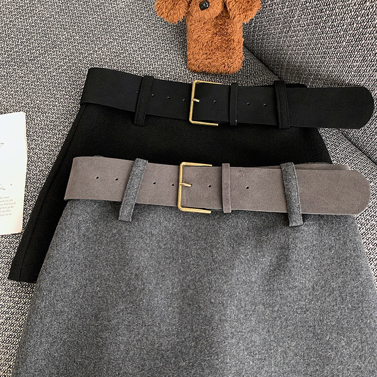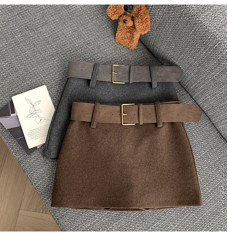 South Korea's Dongdaemun Autumn and Winter New Casual High-waist Slim Woolen Wool Belt Versatile Skirt A-Line Hip Skirt