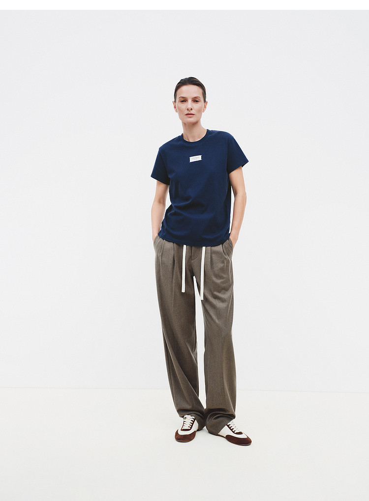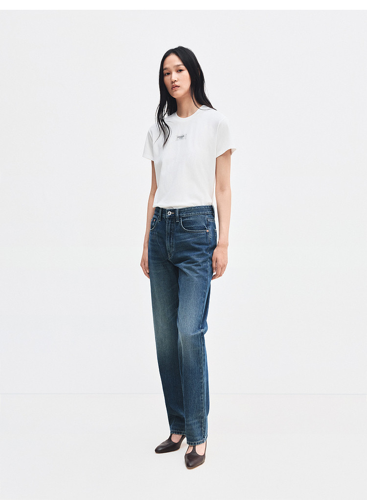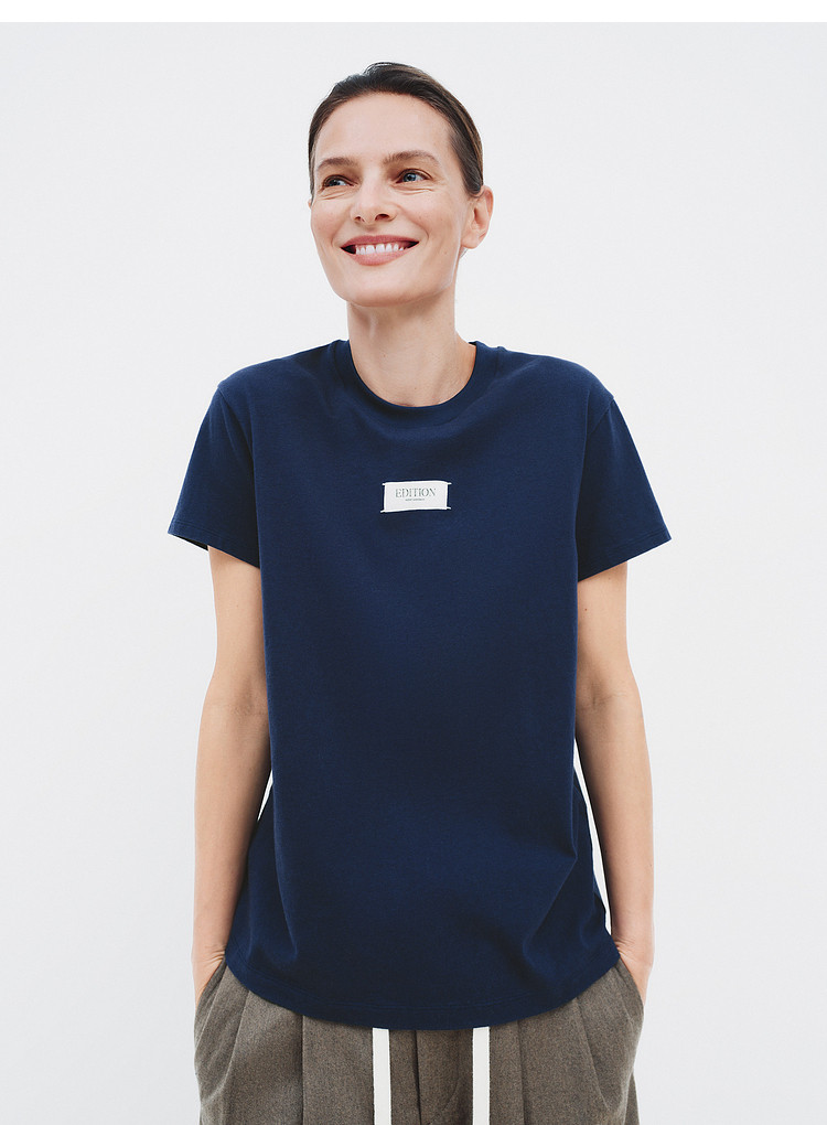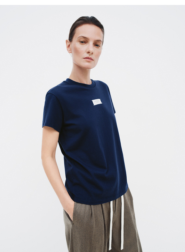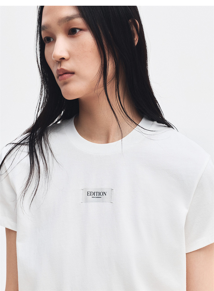 Editiont-Shirt Women's 2026 Spring New Style Woven Label Printed Pure Cotton Right Shoulder Short-Sleeved Top Ebf1Tee001