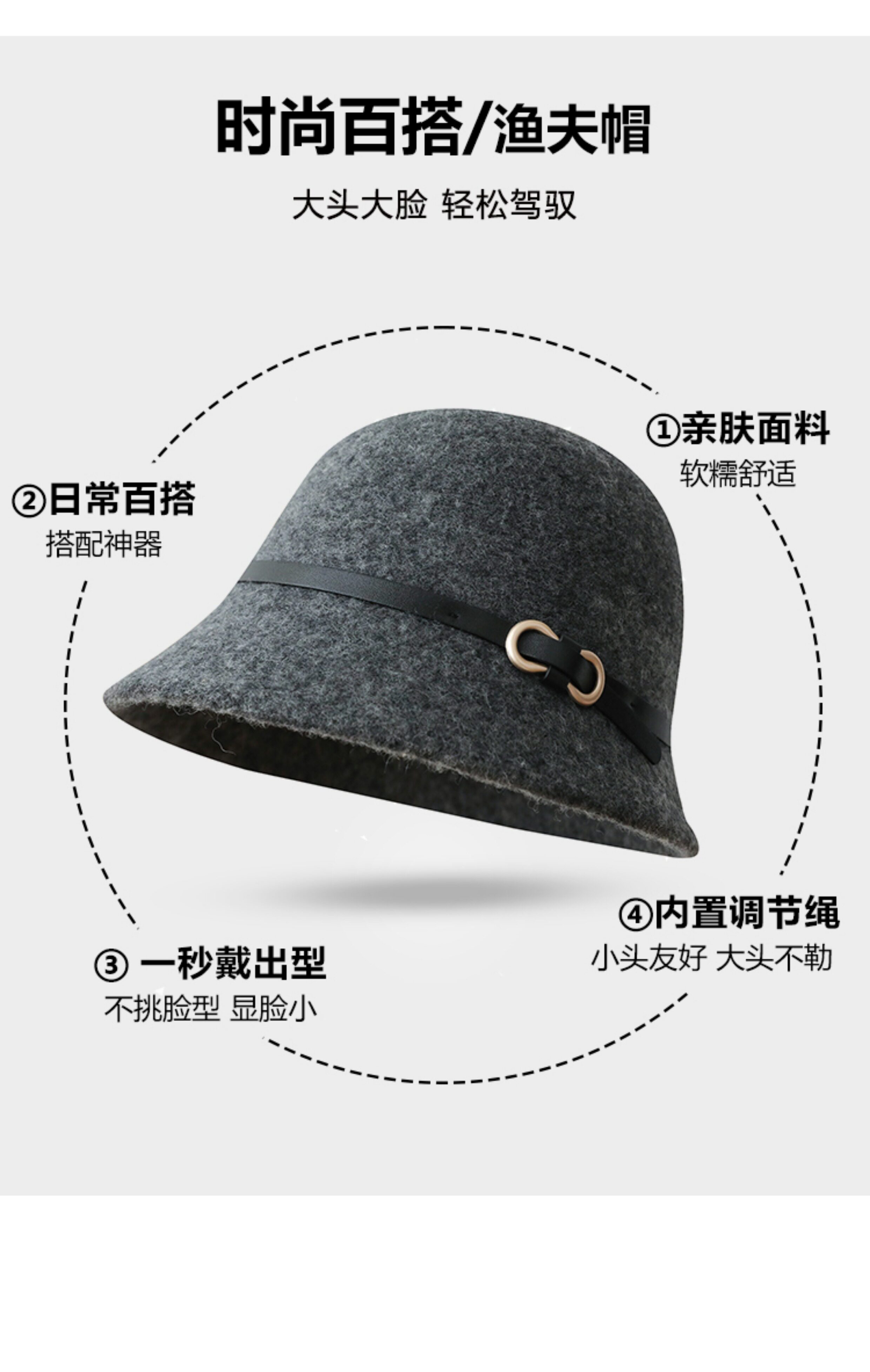 French high-end wool top hat for women in autumn and winter retro elegant dome fisherman hat Hepburn style foreign daughter hat