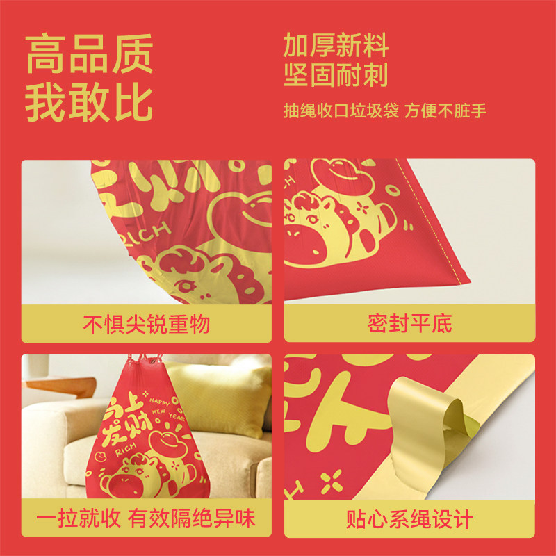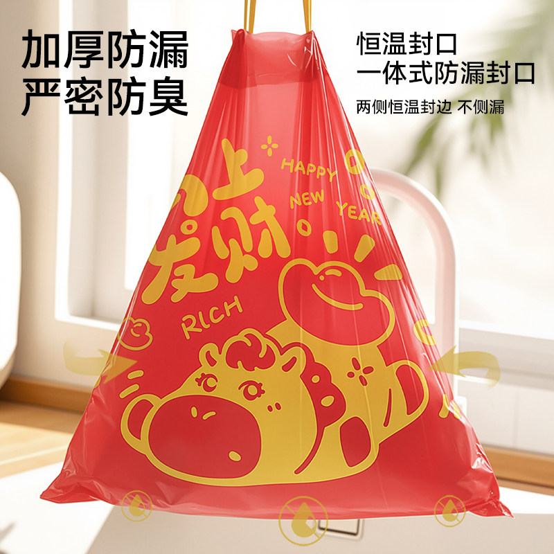 Новогодние утолщенные мешки для мусора с ручками, устойчивые к разрывам, большие мешки на завязках для хранения на кухне и в общежитии, специальные мешки для уборки.