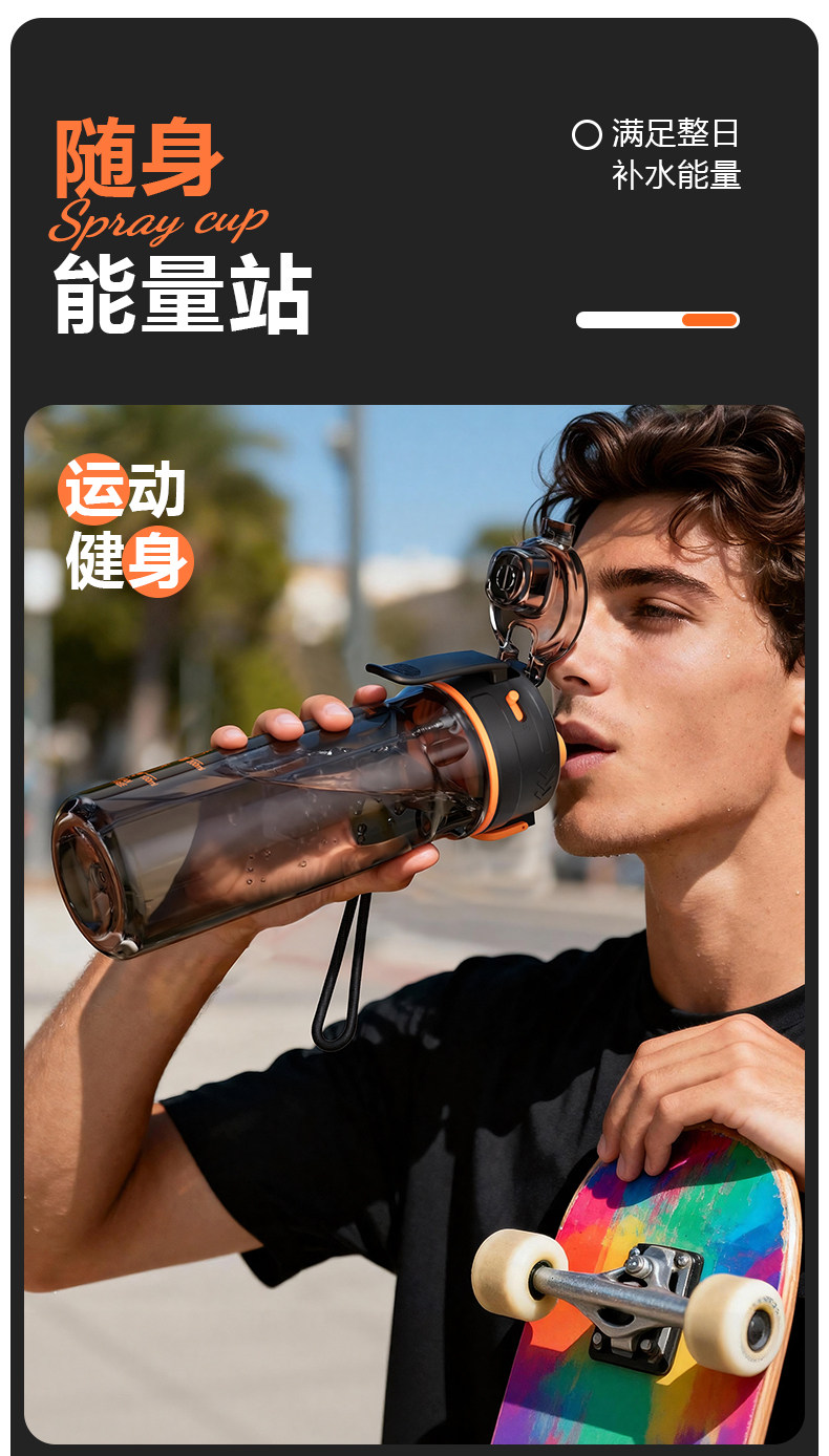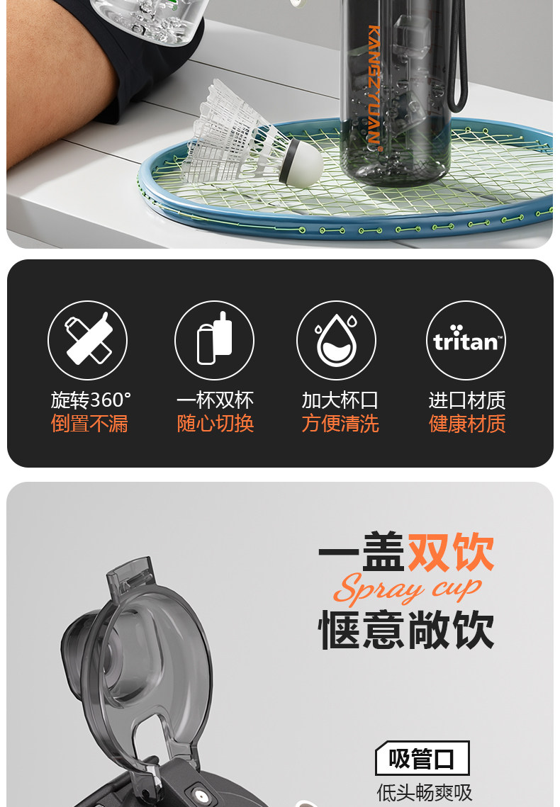 Large-Capacity Sports Water Cup with Spray, Hydrating Cup for Male and Female Students, Outdoor Fitness Portable Cup, Tritan
